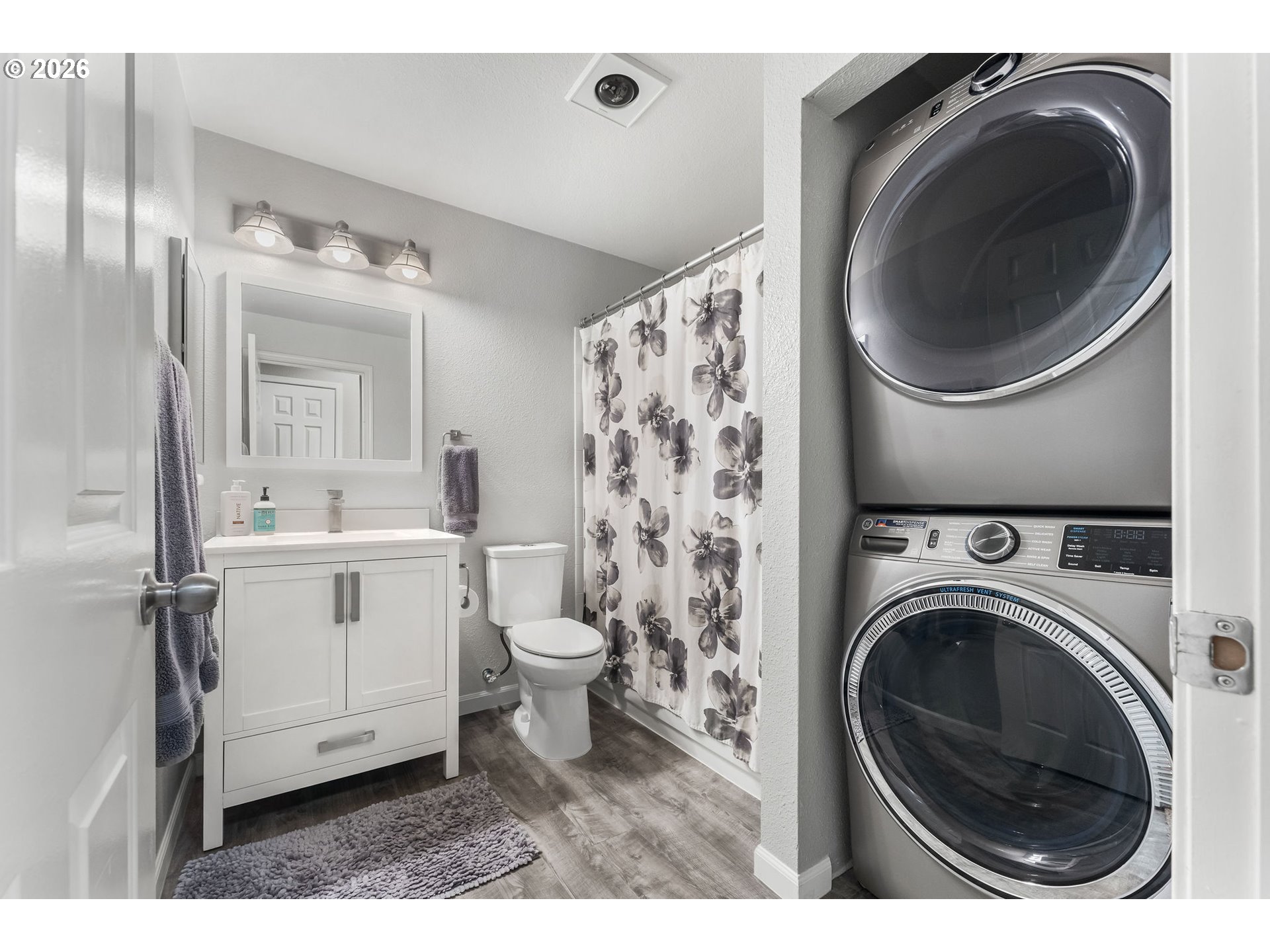 Beautifully maintained three-level townhouse-style unit that features 3 bedrooms & 2 REMODELED bathrooms. 1 car garage with cabinets for storage...light & bright floor plan! Upon entering, you are greeted with a bedroom/office and walk in closet. The staircase leads to open main level living with a balcony, wood burning fireplace, large kitchen with island and great storage including a generous pantry. The open-concept floor plan connects the living, dining, and kitchen areas with an island, perfect for entertaining. Enjoy the warm summer evenings on the balcony, ideal for relaxing. The primary suite offers a vaulted ceiling with ceiling fan, AC and ample closet space. The NEW washer and dryer are included in the hall bathroom. Located minutes from downtown Vancouver with the Columbia River Trail at your doorstep connecting you to the new waterfront as well as quick freeway/airport access. Community amenities include a pool, hot tub, fitness center, and clubhouse. Coffee shops, restaurants including the new Oswego Grill, shopping and bus line all within walking distance. Pet friendly walking trails! NEW MINI SPLITS ON MAIN LEVEL & UPPER LEVELS, NEW HOT WATER HEATER, NEW WASHER & DRYER and NEWER KEYLESS ENTRY! Partially furnished unit.