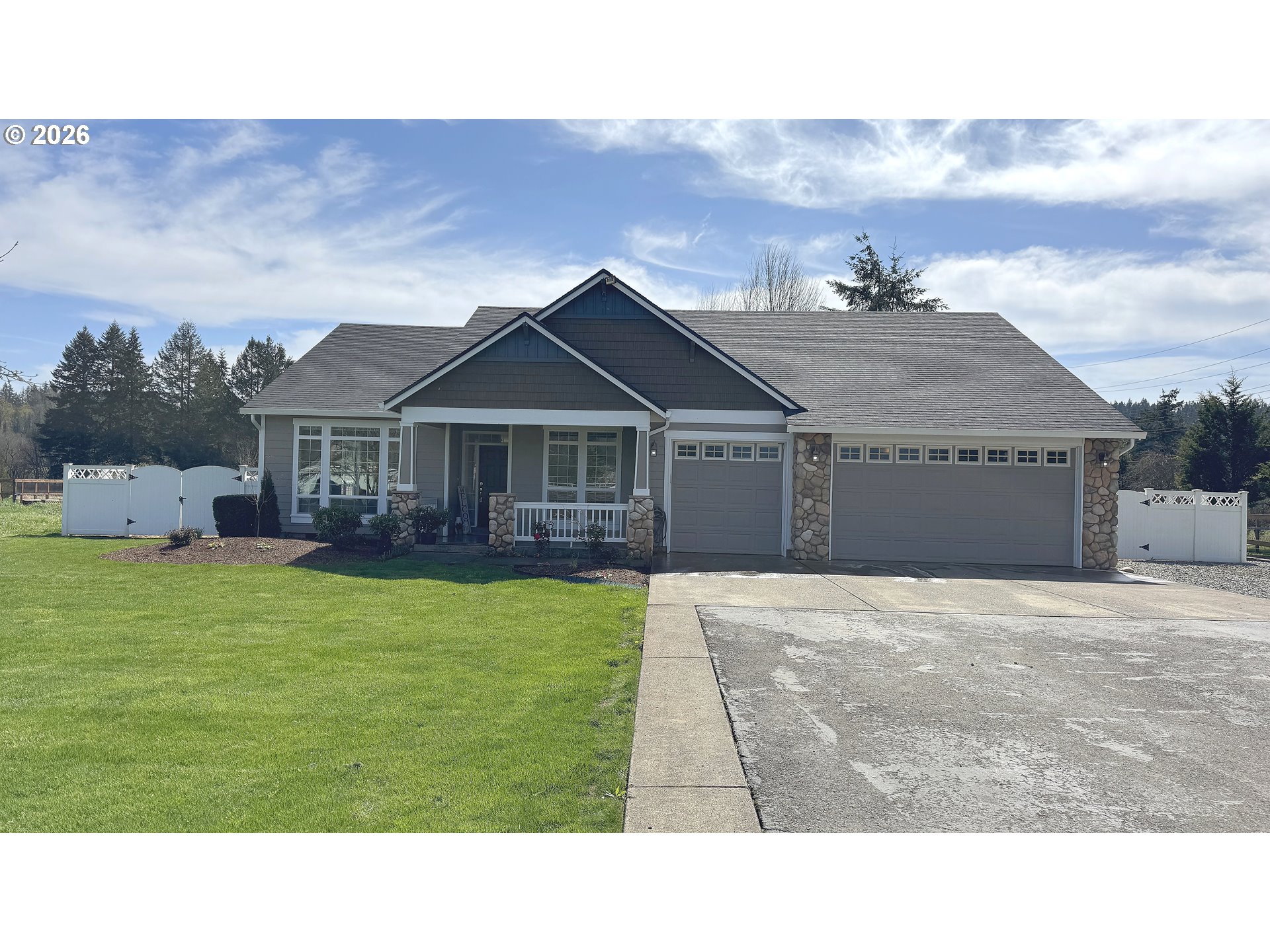 Charming one-level Mascord Craftsman featuring tall ceilings and expansive windows that fill the home with natural light. Thoughtfully updated throughout, this home offers new LVP flooring, fresh interior paint, stylish lighting, quartz countertops, and a brand-new architectural roof.The open-concept layout provides both comfort and functionality, with a formal living room, a spacious kitchen with dining area, and a welcoming family room complete with a cozy fireplace and sliding doors leading to the deck and backyard—perfect for indoor-outdoor living.The private en suite primary bedroom features a walk-in closet and a relaxing jetted tub, creating a true retreat.Set on over 5 flat, fully usable acres, the property is fully fenced and cross-fenced with attractive white vinyl fencing—ideal for animals or hobby farming. Enjoy the expansive deck, plus multiple outbuildings and a small barn for added versatility. Ample RV parking and a spacious 3-car garage provide plenty of room for vehicles, equipment, and storage.Experience the ease and comfort of one-level living in a peaceful, functional setting with room to grow.