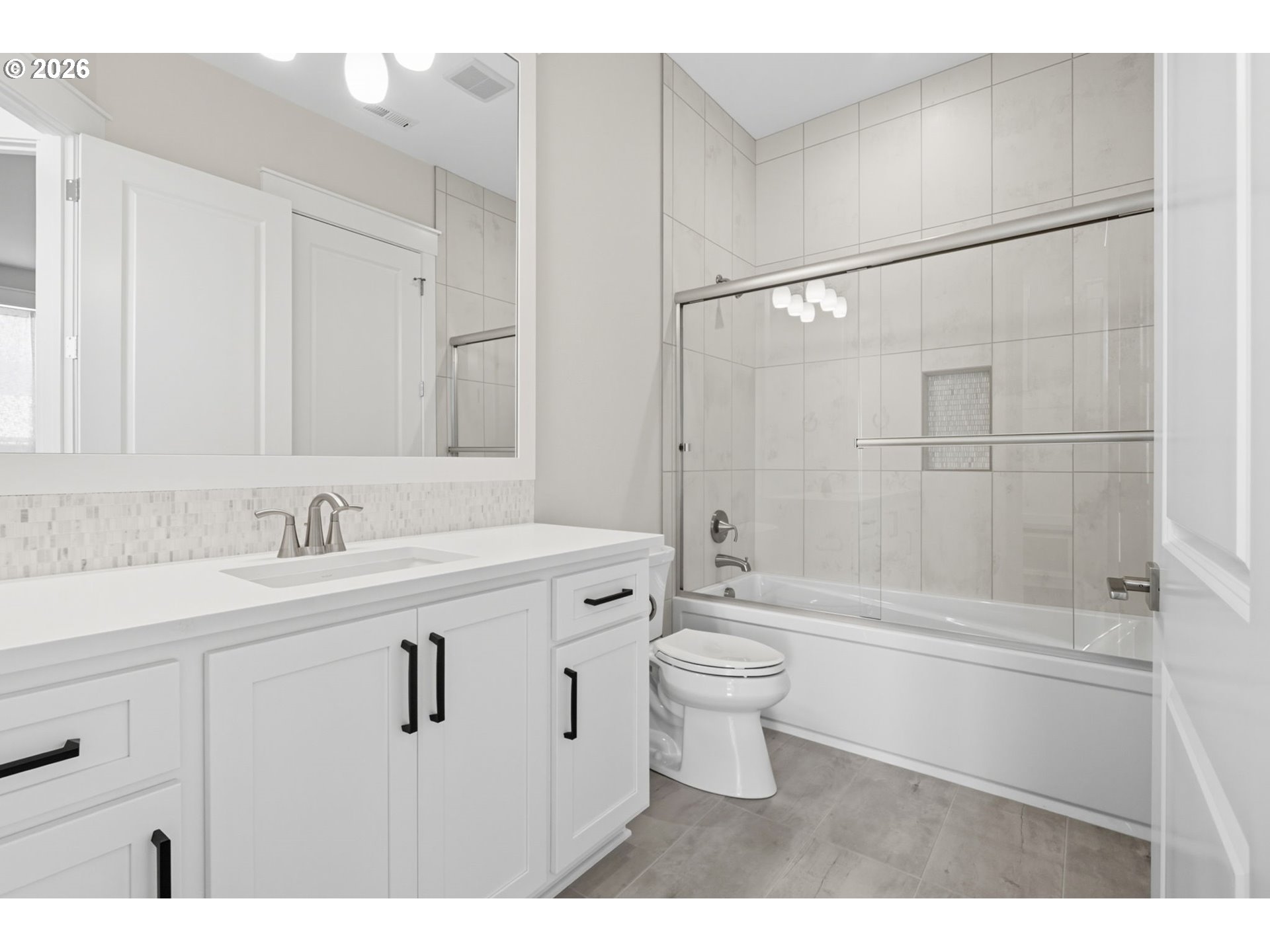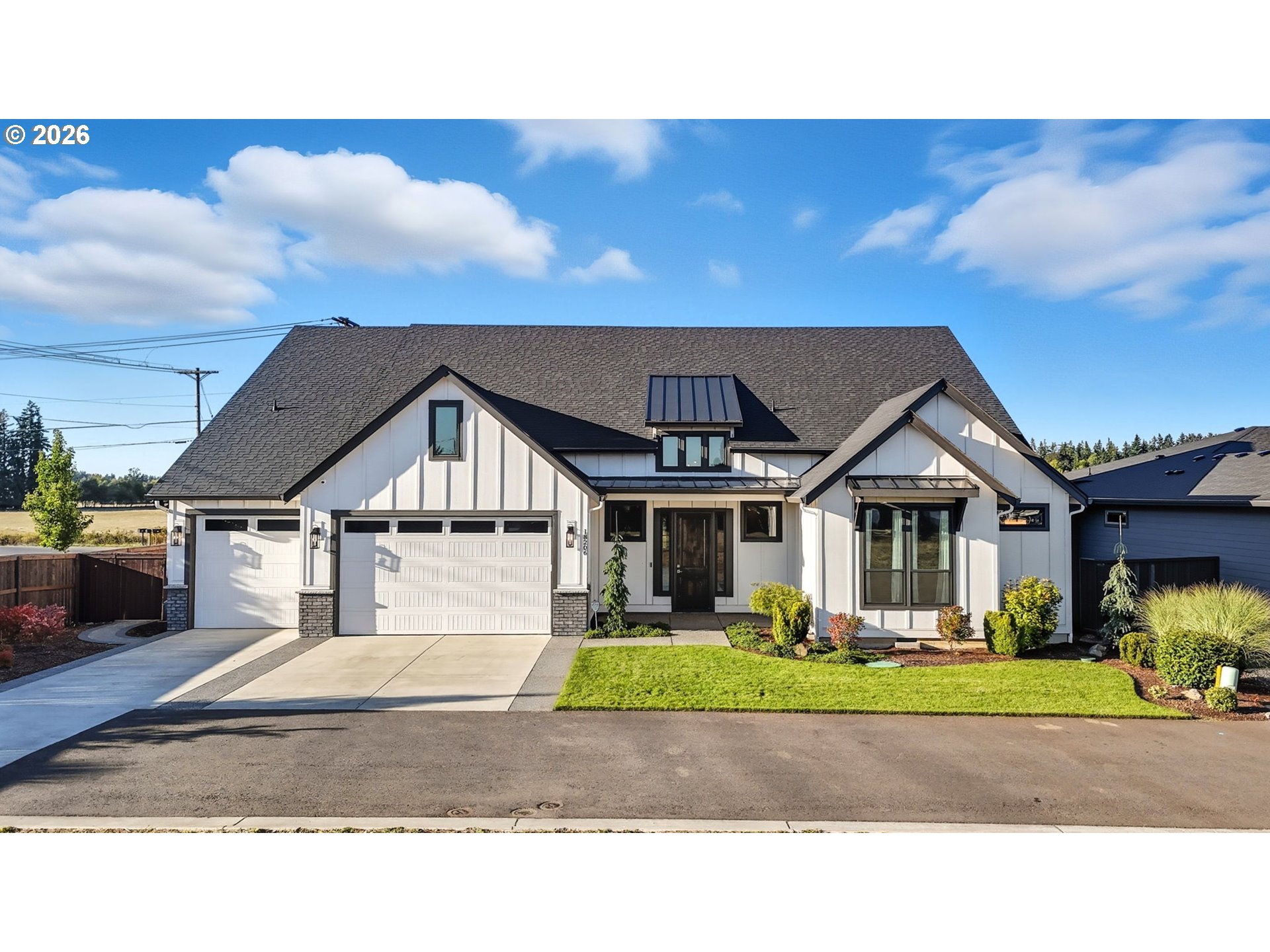 Gorgeous single-level home built in 2022 in a gated Northeast Vancouver community. This 3-bedroom, 3-bath property features ensuite bathrooms and walk-in closets in every bedroom, plus a spacious office and an oversized 3-car garage with deep workshop space. The gourmet kitchen boasts quartz counters, custom cabinetry, a large island, and gas cooktop. Vaulted ceilings with exposed beams, hardwood and tile floors, and a gas fireplace add warmth and style throughout. The primary suite is a true retreat with a soaking tub, walk-in shower, and generous closet. Enjoy outdoor living on the covered patio with a fully fenced and landscaped 0.30-acre lot. Conveniently located near shopping, dining, and top-rated schools with easy access to I-205/I-5. Enjoy the peaceful, mature trees and close proximity to parks and green spaces, offering both tranquility and outdoor recreation just minutes from home.