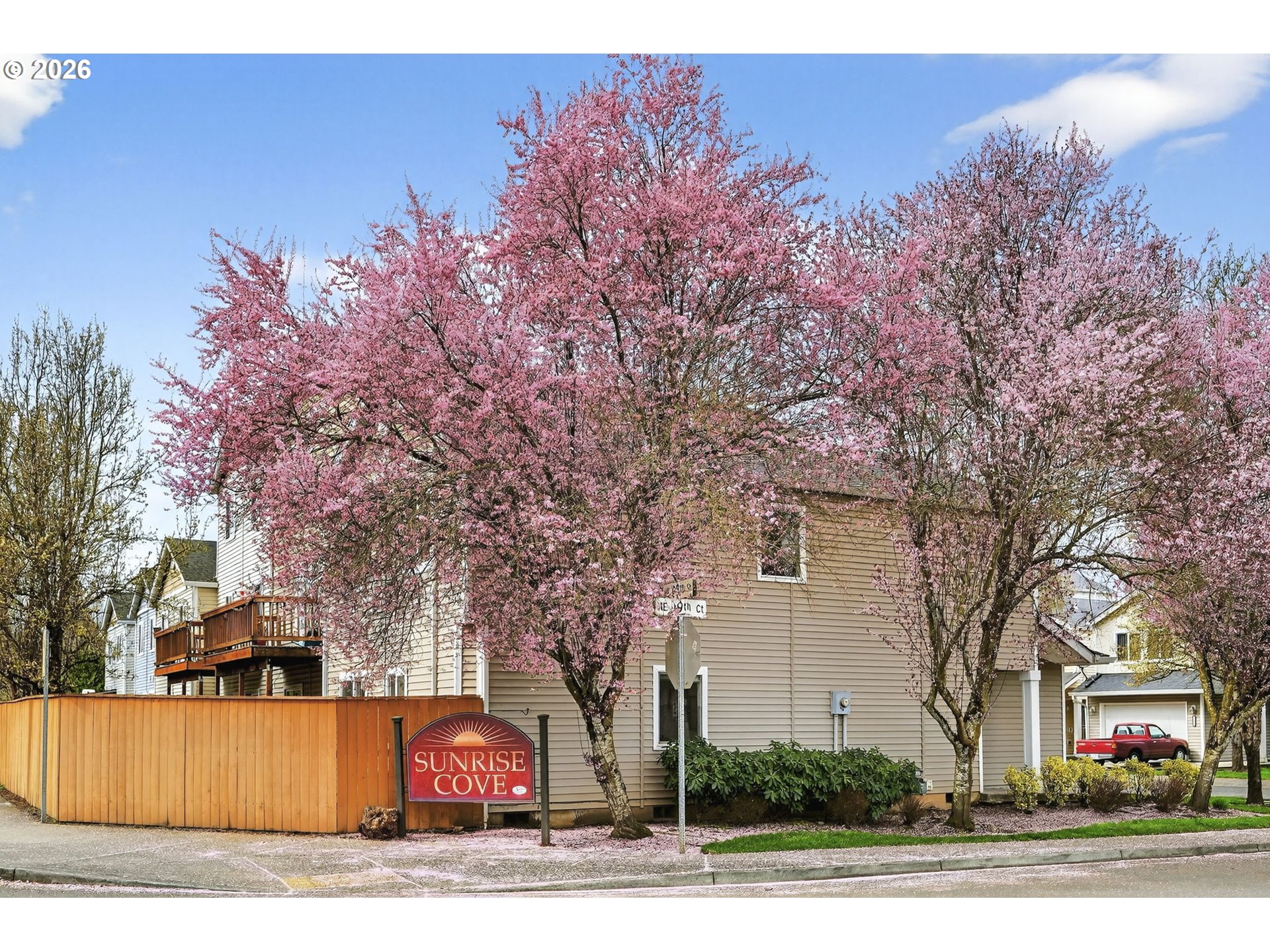 Your own little ray of sunshine in Sunrise Cove. This end-unit townhouse offers light-filled living with a thoughtful, easy layout. With 3 bedrooms and 2.5 baths across 1,536 square feet, the home lives comfortably with just the right amount of space in all the right places. Fresh interior paint and new LVP flooring on the main level and in the laundry room enhance the space, creating a clean, updated feel throughout. The main level is designed in a true great-room style, connecting the living room with a gas fireplace, dining area, and kitchen with a separate pantry for everyday ease. A sliding glass door leads to a fully fenced backyard with a patio, where seasonal cherry blossoms show off at just the right time…swoon. Upstairs, you’ll find all three bedrooms, two full baths, and a conveniently located laundry room. The primary bedroom offers a large walk-in closet and connecting bath, while the laundry room features built-in shelving for additional storage. The open, vaulted staircase adds volume and natural light, and a flexible alcove at the top is perfect for a reading nook, workspace, or your pandemic purchase, a Peloton. Complete with a two-car garage and central air conditioning, this end-unit townhouse offers both function and a sense of space, ready for its next chapter. Updates include: 2026 water heater, 2026 interior paint, 2025 LVP flooring, and a 2025 garage door spring replacement. The HOA fee is $116/month and covers front-yard landscaping and sprinkler system maintenance.