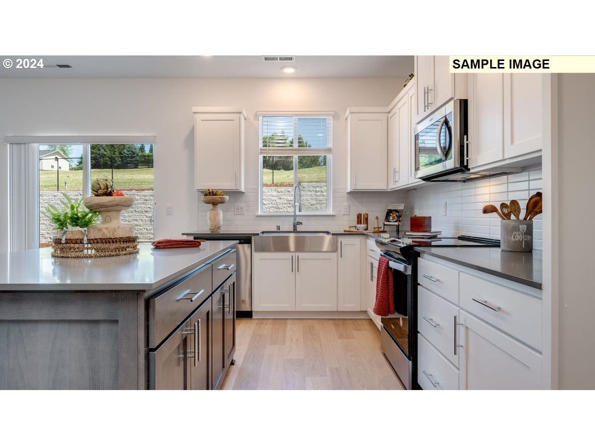 Special interest rate on a 30-year fixed loan as low as 3.99% for the first year and 4.99% for the remainder AND up to $13k closing cost credit with use of preferred lender DHI Mortgage! Restrictions apply. This modern move-in ready home is designed to provide you with the utmost comfort and space. It sports 5 bedrooms, 3 bathrooms, and a 2 car garage to store all your toys. Front-yard irrigated professional landscaping adds year-round curb appeal to your new home. Inside, enter the open-concept great room. A floor-to-ceiling shiplap hearth invites you to cozy up in the living area. On the opposite wall, the convivial kitchen has a full walk-in pantry, an island with a breakfast bar, and sleek full-height backsplash. Make your way upstairs to find 4 bedrooms surrounding a convenient upstairs laundry room. 2 of the bedrooms have walk-in cl
