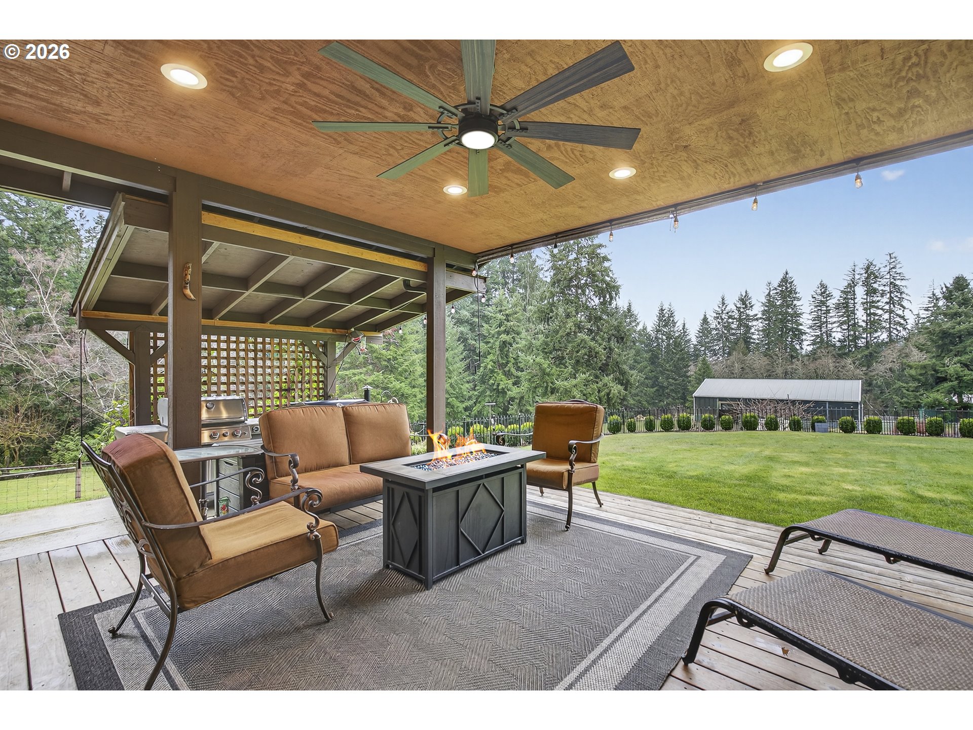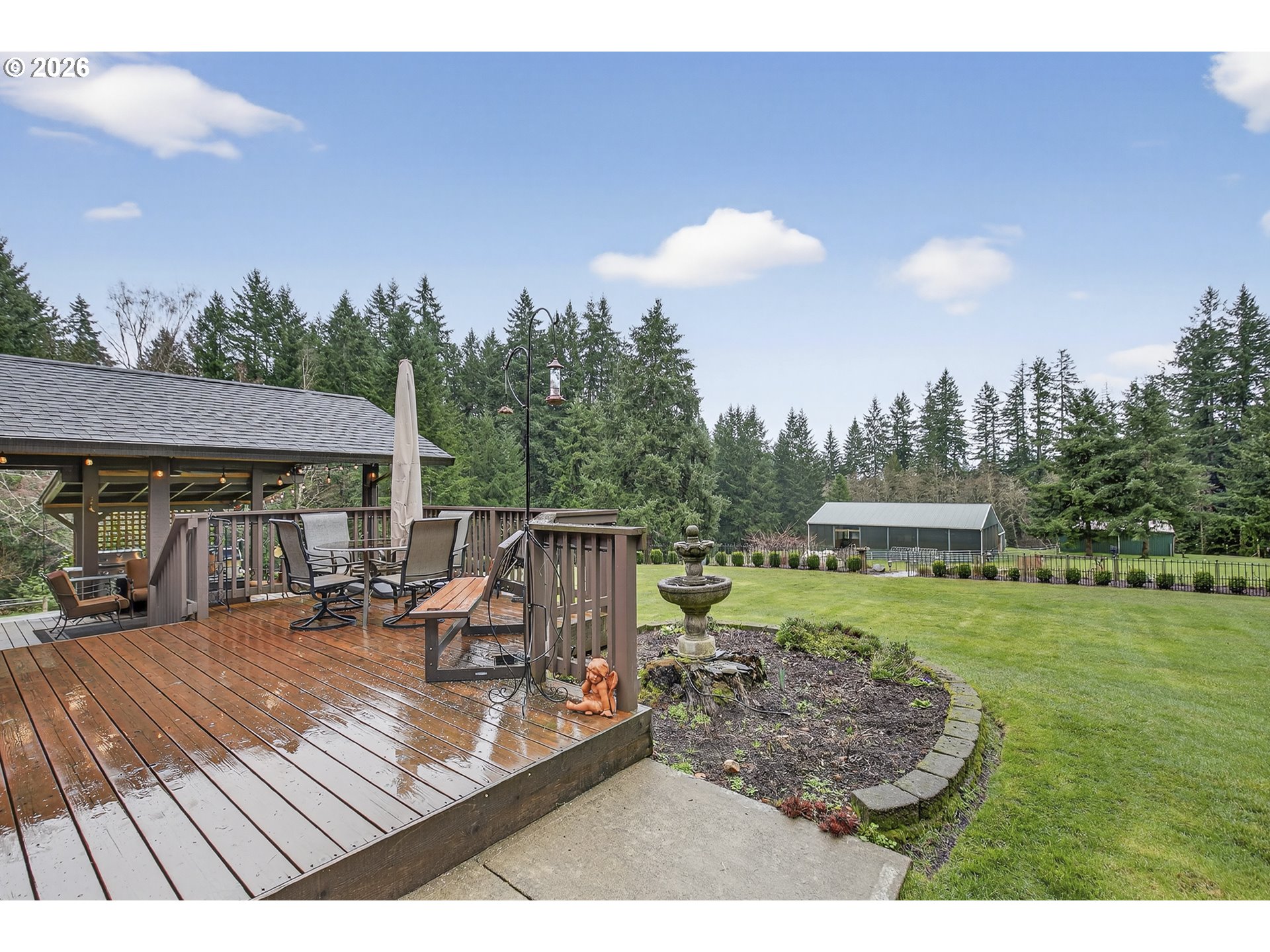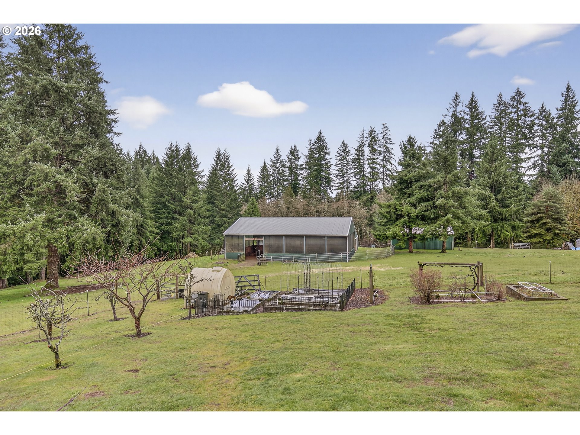 (503) 893-8874Five private acres. Covered arena. And downtown Battle Ground just five minutes away.Tucked at the end of a quiet approach and surrounded by mature evergreens, this fully usable 5-acre property offers the space, infrastructure, and flexibility so many buyers are searching for — without sacrificing convenience.Whether your vision includes horses, hobby farming, multigenerational living, or simply room to breathe, this property is already set up to support it.The covered, lighted arena (approx. 50x74) connects directly to the main barn, creating seamless year-round riding. Three 12x12 rubber-matted stalls, dedicated tack room, hay and tractor storage, and Eco Green Grid footing provide durability and thoughtful design. A second 24x36 barn with three additional stalls, hayloft, power, and ag flooring offers flexibility for training, boarding, or expanded livestock use. Cross-fenced pasture allows for easy separation into multiple paddocks.Beyond the equestrian facilities, the land continues to impress — open lawn, mature trees, fenced garden space, greenhouse, raised beds, orchard with Asian pears, apples, plum, berries, and grapes, plus a chicken coop for those wanting a true farm-to-table lifestyle.The home itself offers 2,182 square feet with 4 bedrooms and 3.5 baths. Vaulted ceilings and a wood-burning fireplace anchor the main living area, with large windows framing views of the surrounding greenery. The kitchen features heated tile floors, granite counters, induction cooktop, convection oven with air-fryer capability, and stainless appliances.Just five steps down, the lower level provides generous flex space with pellet stove and slider to the covered deck — ideal for media, hobbies, guests, or separate living quarters.Outdoor living is equally inviting, with a covered deck complete with ceiling fan, additional patio space for entertaining, expansive lawn, RV parking (approx. 28–30 ft covered), dog run, and abundant parking.Private. Functional. Flexible.