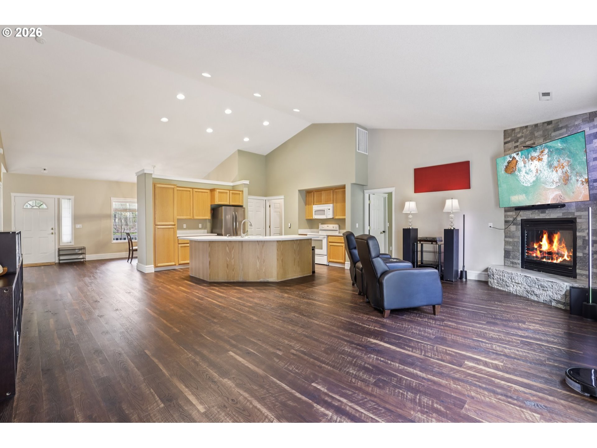 ****LENDER INCENTIVES AVAILABLE WHEN USING SELLER'S PREFERRED LENDER.***Beautifully maintained and full of natural light, this inviting one-level home sits on 5 private acres—perfect for anyone looking for quiet, space, and lots of privacy. The open layout features high, vaulted ceilings and tons of windows that bring in natural light and showcase the peaceful surroundings. The floor-to-ceiling custom rock fireplace is a standout feature and makes the living space feel warm and welcoming. The home also has new flooring and fresh paint, so it’s ready to move right in. The 40+ ft tandem drive-through garage is currently being used as a shop and offers incredible flexibility—perfect for projects, storage, or hobbies. There’s also plenty of room for RV parking and all your toys. Step outside onto the deck—an ideal spot to relax and take in the serene, private setting.