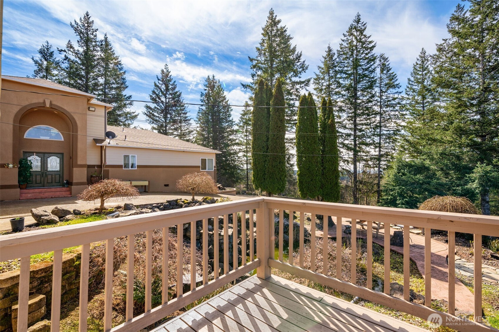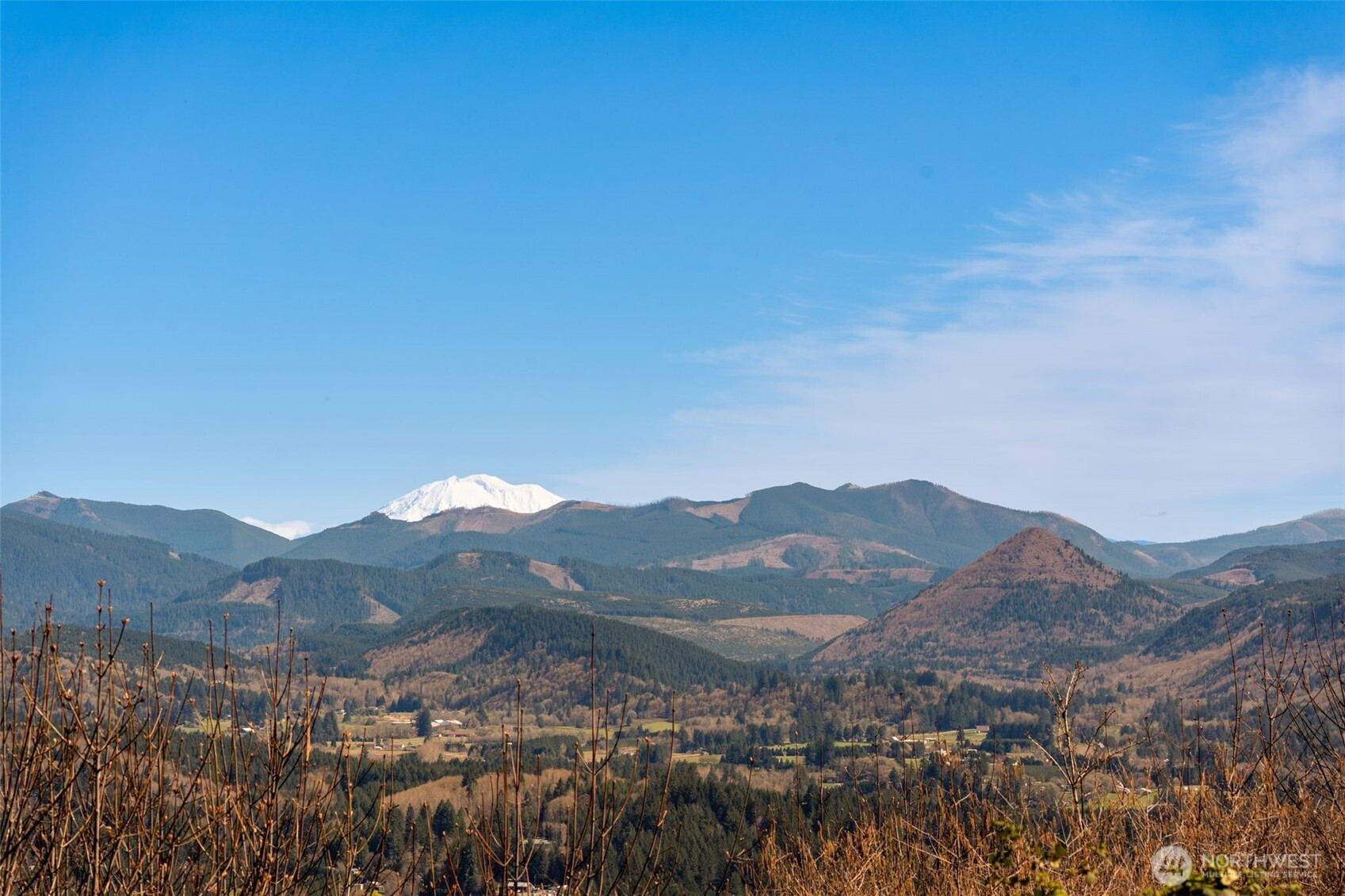 One-of-a-kind gated 5-acre view property with detached ADU/guest house and sweeping panoramic views of Mt. St. Helens, Mt. Adams, Silver Star, Mt. Tum Tum, Amboy/Chelatchie Valley, and Gifford Pinchot National Forest. Custom-built home offers 3,500 SF, 4 beds, 2.5 baths, and exceptional natural light throughout. Features include Brazilian cherry hardwood floors, vaulted ceilings, office/library, and Bose surround sound. Chef’s kitchen with large island, granite counters, pantry, stainless appliances, and stunning views. Koi ponds, landscaped grounds, and expansive decks create ideal outdoor living. ADU includes 1 bed, 1 bath, kitchen, and laundry. Starlink internet included. Private setting with easy access to Battle Ground and Portland