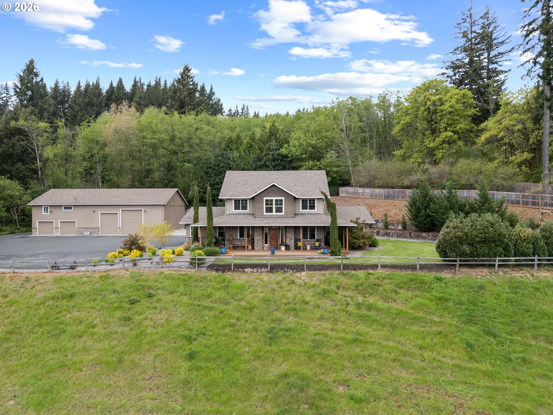 (503) 893-887410 private acres, a pond, year round creek, and a home designed to connect with its surroundings, this Amboy property is the definition of rural living done right.As you step inside, you’re welcomed into a warm, moody interior where natural light pours through large windows and sliding glass doors, creating a seamless connection to the outdoors. The main living space centers around a natural stone wood burning fireplace, adding texture and character while anchoring the room.The layout flows easily into the dining area and kitchen, where brand new stainless steel appliances, generous counter space, and bar seating make it ideal for everyday living and gathering. Expansive windows continue to frame the surrounding landscape, bringing the outside in.The primary suite is located on the main level, offering comfort and convenience with peaceful views of the property. The ensuite features double vanities, a soaking tub, and a separate shower, creating a private retreat within the home.Additional bedrooms and flexible spaces provide room for guests, work from home needs, or creative use. Downstairs, a spacious second living area with its own fireplace expands the home’s functionality, with direct access to the outdoors and strong potential for multi generational living or ADU use.Recent updates include fresh exterior paint, new interior paint, new carpet, a newer deck, and an updated main water line, making the home feel move in ready.Step outside to an expansive deck that captures territorial views and overlooks the surrounding landscape, offering space to relax and entertain. The land is truly special, featuring a year round creek, two peaceful ponds, and three fenced horse pastures, along with a shed and chicken coop. A large 36x40 shop with RV sized roll up doors and a carport provide excellent space for storage, projects, or recreational use. Usable acreage, privacy, and natural beauty come together to create a setting that is both functional and peaceful.
