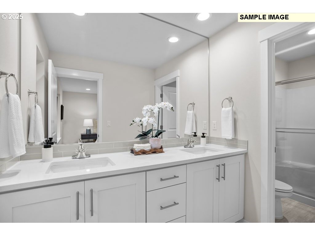 Estimated completion April 2026, still time to select your finishes and upgrades at our design center. Welcome home to Ramble Creek, a brand-new community in a pristine wooded setting with walking trails, parks, three playgrounds, a dog park, creek and tall trees, all within easy access to I-5 and I-205. This home sits on a 4500SF lot and features a large kitchen, 3 bedrooms, 2.5 bathrooms, a loft, upstairs laundry, and a 2-car garage. Standard features include A/C, forced air heating, gas range cooking, beautiful trim work, 9 ft ceilings on main floor with 8 ft doors, 8 foot ceilings upstairs, a fully fenced yard, and front yard landscaping and irrigation. Upgrades included: covered back patio, quartz counters in kitchen and bathrooms, full tile backsplash, and laminate flooring throughout the first floor. Photos are examples from model homes. Open daily 10-5! Model Home located at 4519 NE 183rd Street Vancouver WA 98686