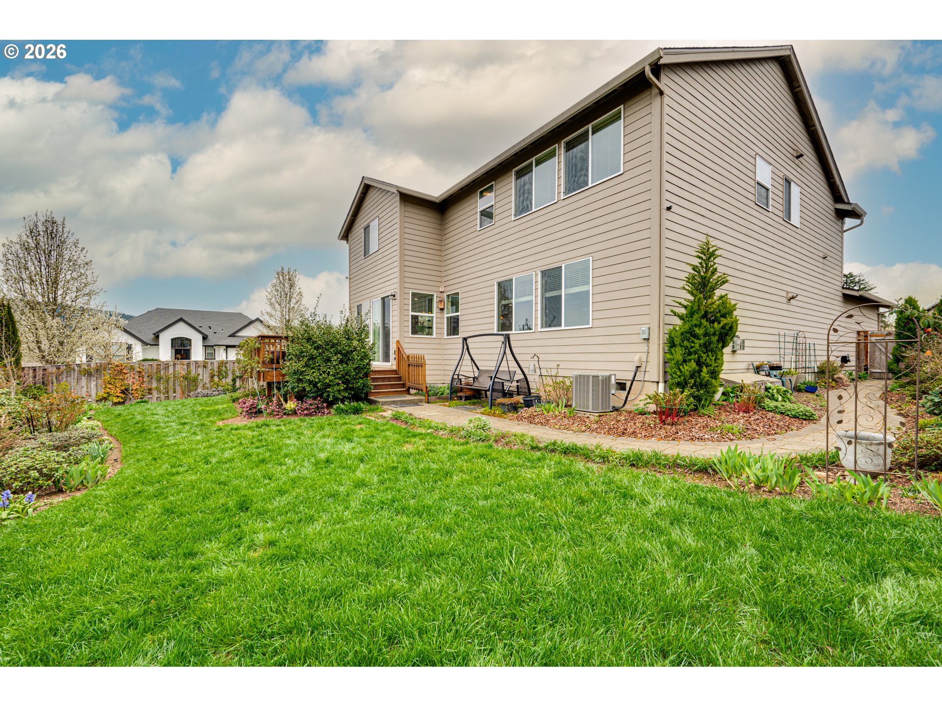 Charming Craftsman on a .18-acre corner lot in desirable Lacamas Prairie Estates featuring a rare attached ADU with separate entrance, private yard, kitchen, laundry, and 1 bedroom and 1 bathroom—offering excellent flexibility. The main home features high ceilings, large windows, and luxury vinyl plank flooring throughout the main level. The kitchen includes a large granite island with storage, eat bar seating, stainless steel appliances, gas range with range hood, and a walk-in pantry. The living room offers a comfortable gathering space with high ceilings and a gas fireplace. Upstairs are two versatile loft areas, along with a spacious primary suite featuring a large walk-in closet and an expansive walk-in shower with multiple shower heads and built-in features. Two additional bedrooms and a laundry room with washer, dryer, and built-in storage complete the upper level. The attached ADU includes its own entrance, garden area, living space, kitchen with built-in microwave and refrigerator, bedroom, full bathroom with walk-in shower, and in-unit washer and dryer. Enjoy both privacy and views of Mount St. Helens and Lacamas Lake, a 12x15 deck, mature landscaping, garden boxes and an extra-deep two-car garage with EV chargers. Conveniently located near parks, shopping, dining, and everyday amenities.