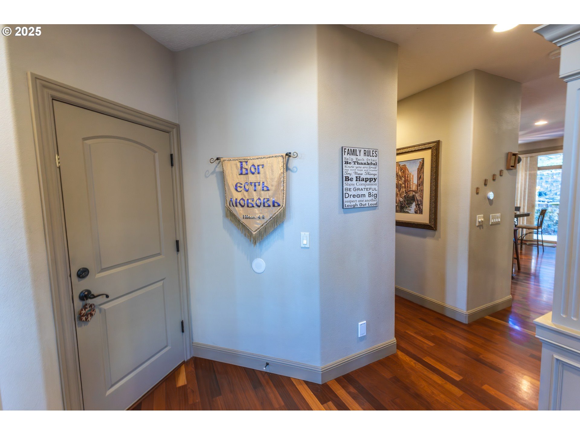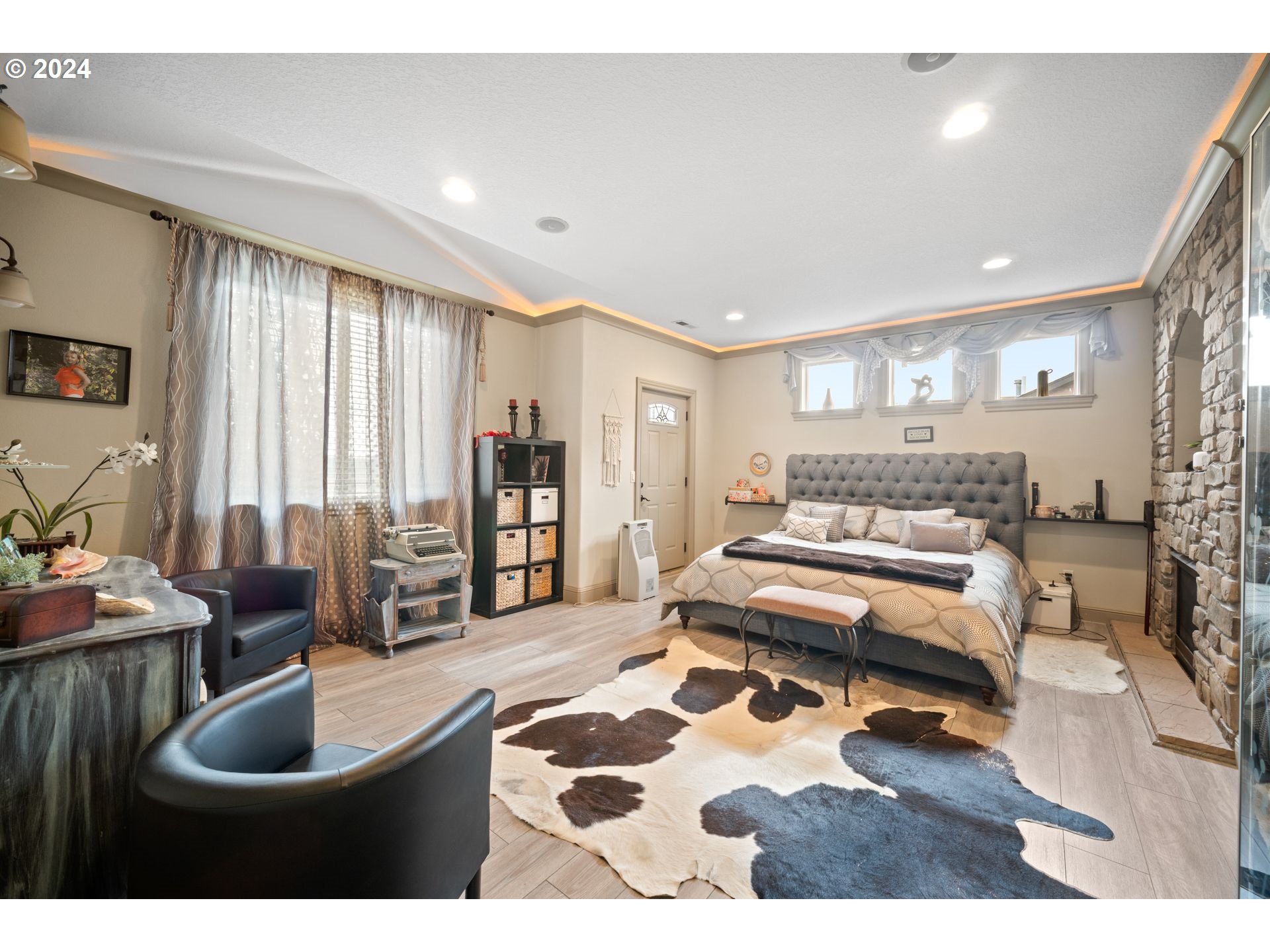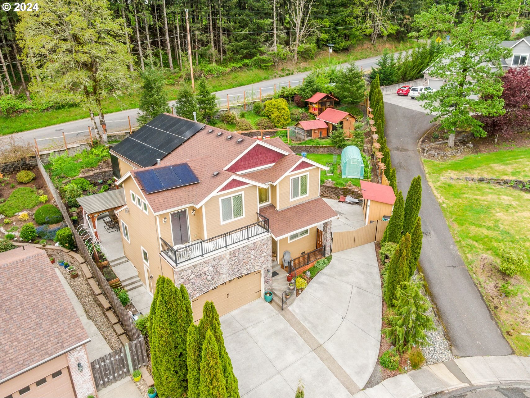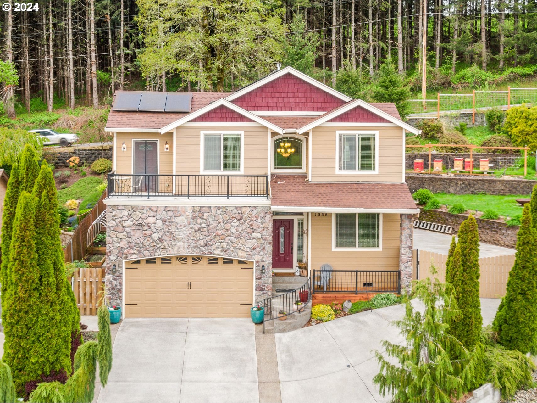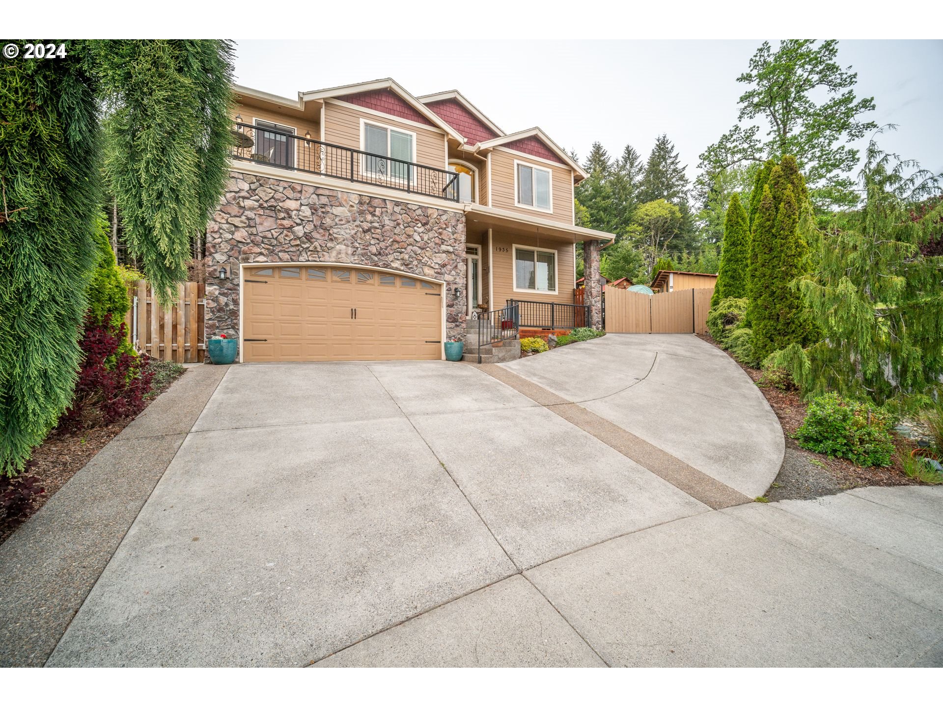View of Mount hood .This Custom-Built home is located in peaceful town of La Center. The neighborhood has a park/walking trails wit h including skate park . Home with 5 bedrooms and numerous upgrades, including: central vacuum system /built-in, surround sound system, A/C, jet tub, custom woodwork. Open kitchen with gorgeous Cherry Wood - Stained Cabinets, with granite, cook island stainless appliances, formal living with fireplace, 9-10' ceiling- coffered light, new faucets new toilets, recent complete interior and exterior paint. New carpet with new pads, new flooring throughout the home. The primary room offers comfort with the fireplace, has double sinks jet tub, Balcony and View. New Solar panels for low - safe electricity. Curtains, Fridge, Washer, Dryer, Greenhouse can stay