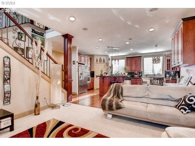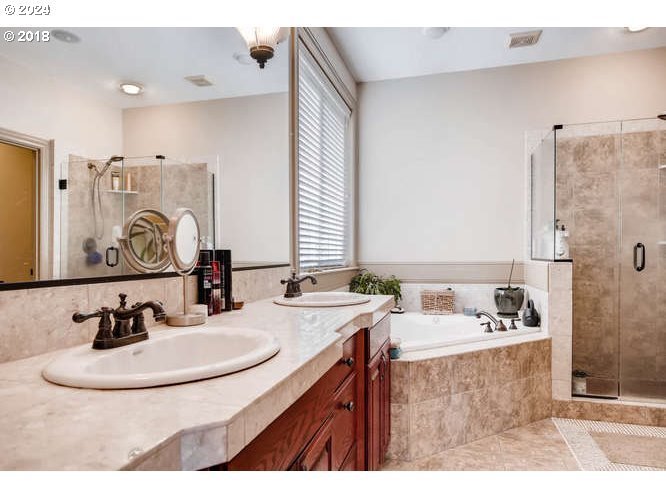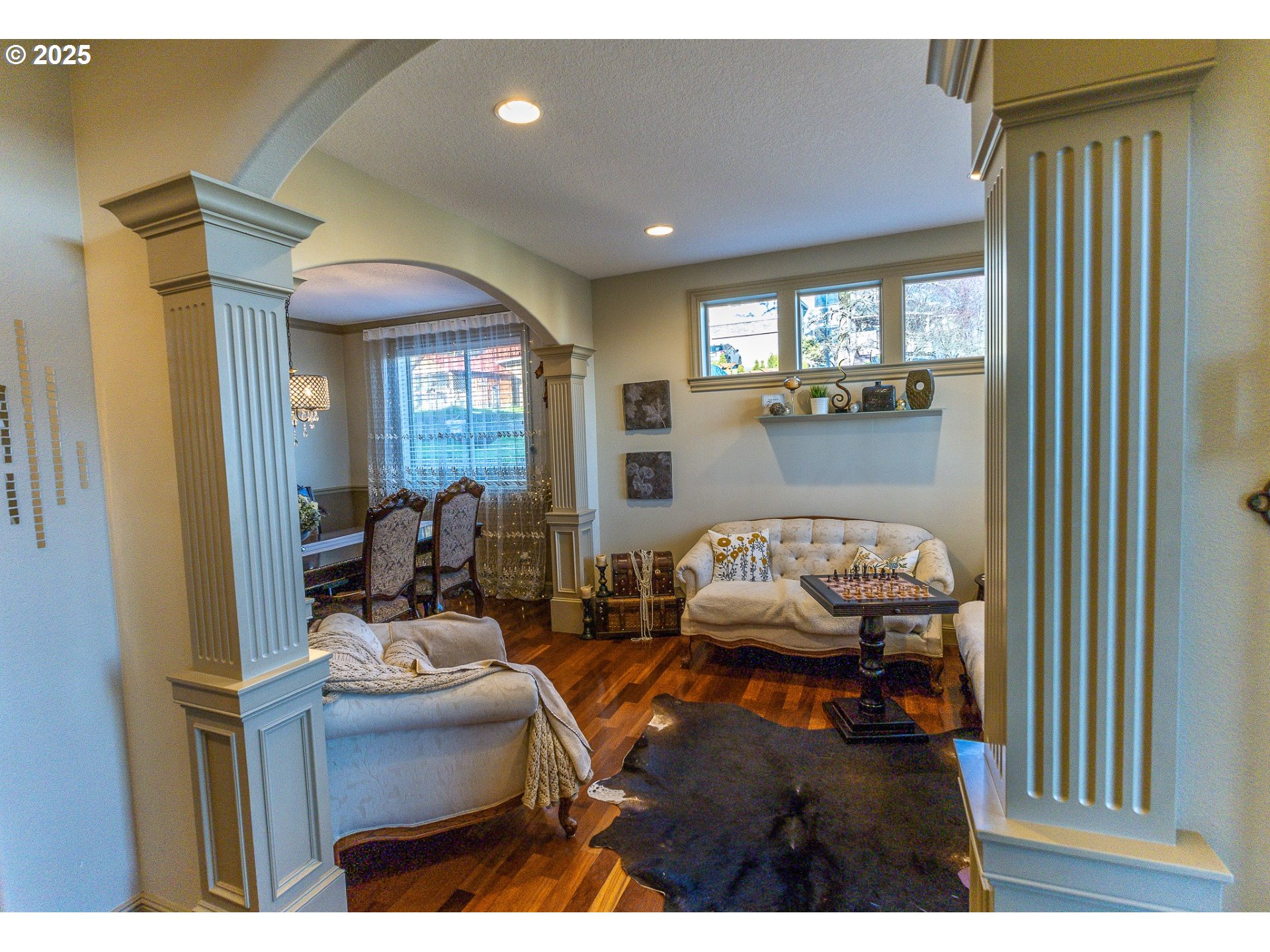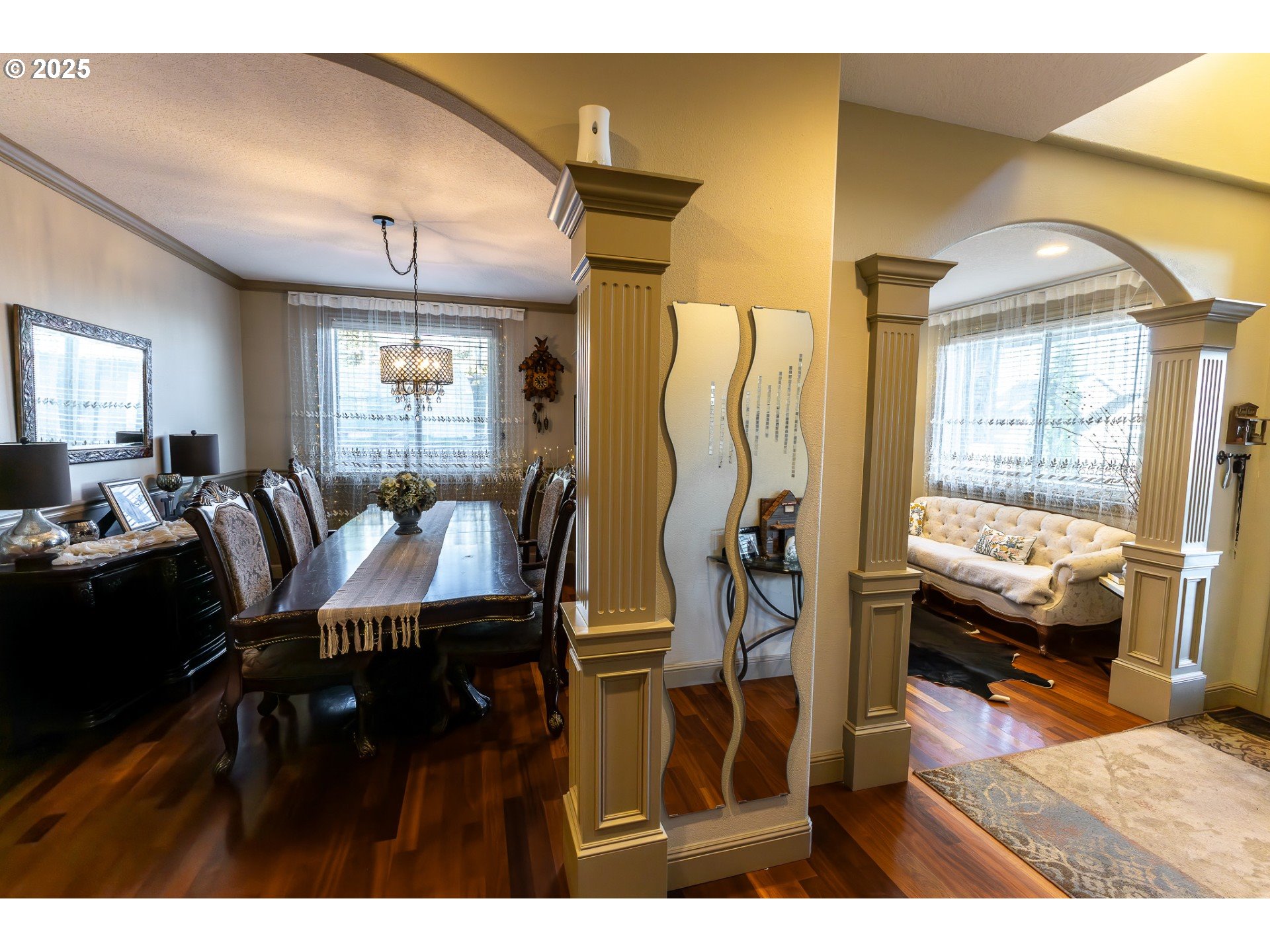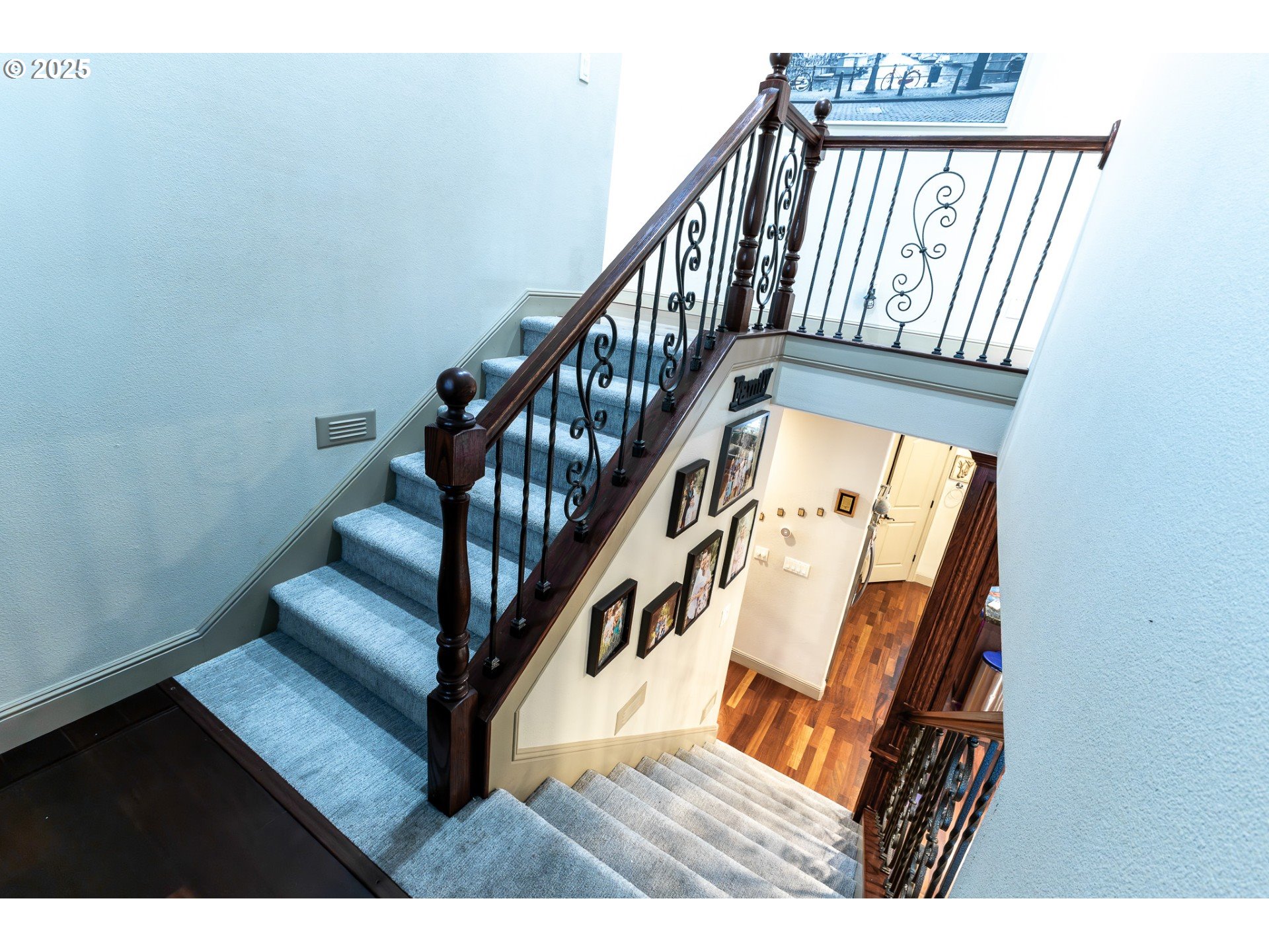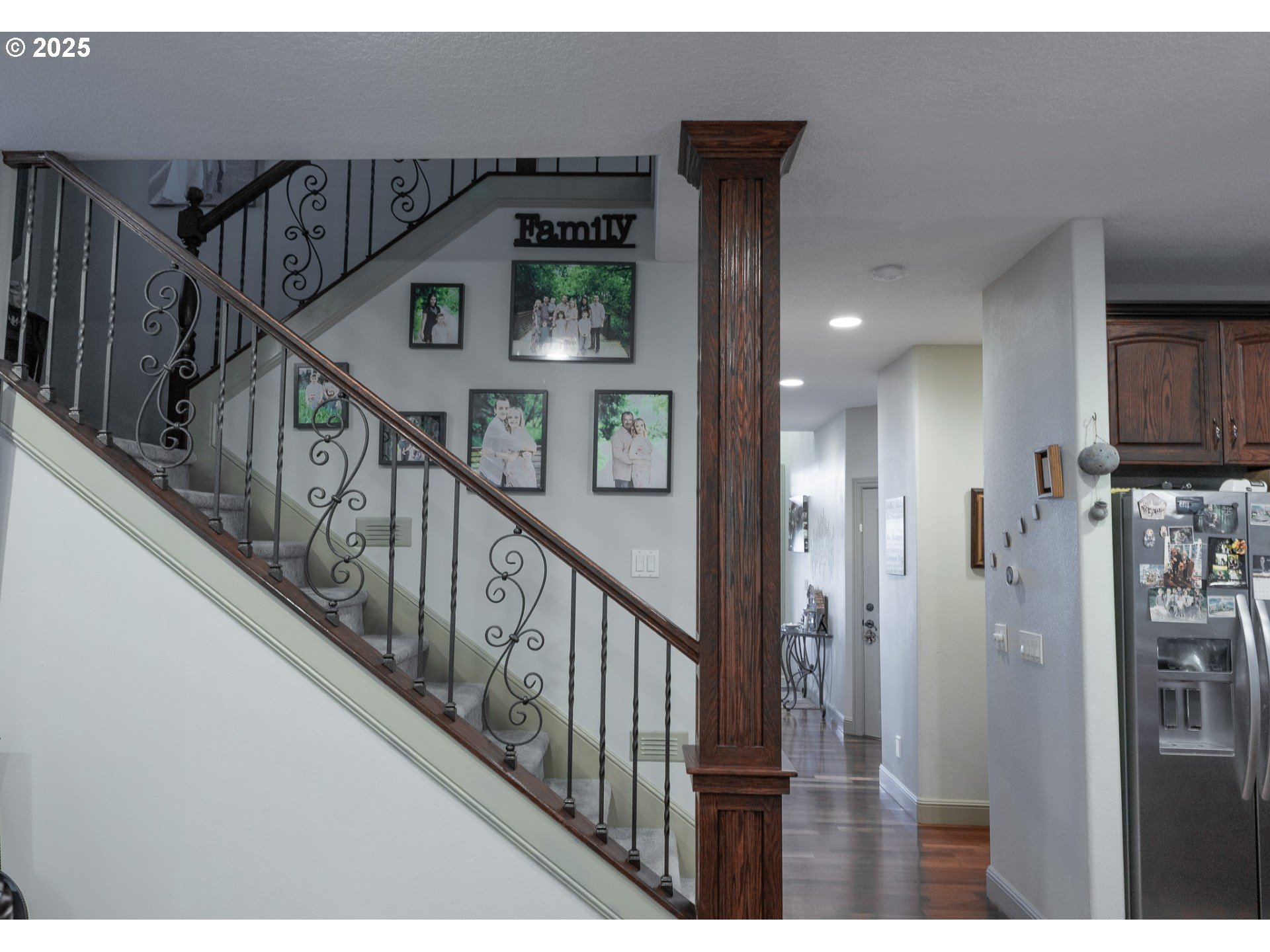 View of Mount hood .This Custom-Built home is located in peaceful town of La Center. The neighborhood has a park/walking trails wit h including skate park . Home with 5 bedrooms and numerous upgrades, including: central vacuum system /built-in, surround sound system, A/C, jet tub, custom woodwork. Open kitchen with gorgeous Cherry Wood - Stained Cabinets, with granite, cook island stainless appliances, formal living with fireplace, 9-10' ceiling- coffered light, new faucets new toilets, recent complete interior and exterior paint. New carpet with new pads, new flooring throughout the home. The primary room offers comfort with the fireplace, has double sinks jet tub, Balcony and View. New Solar panels for low - safe electricity. Curtains, Fridge, Washer, Dryer, Greenhouse can stay