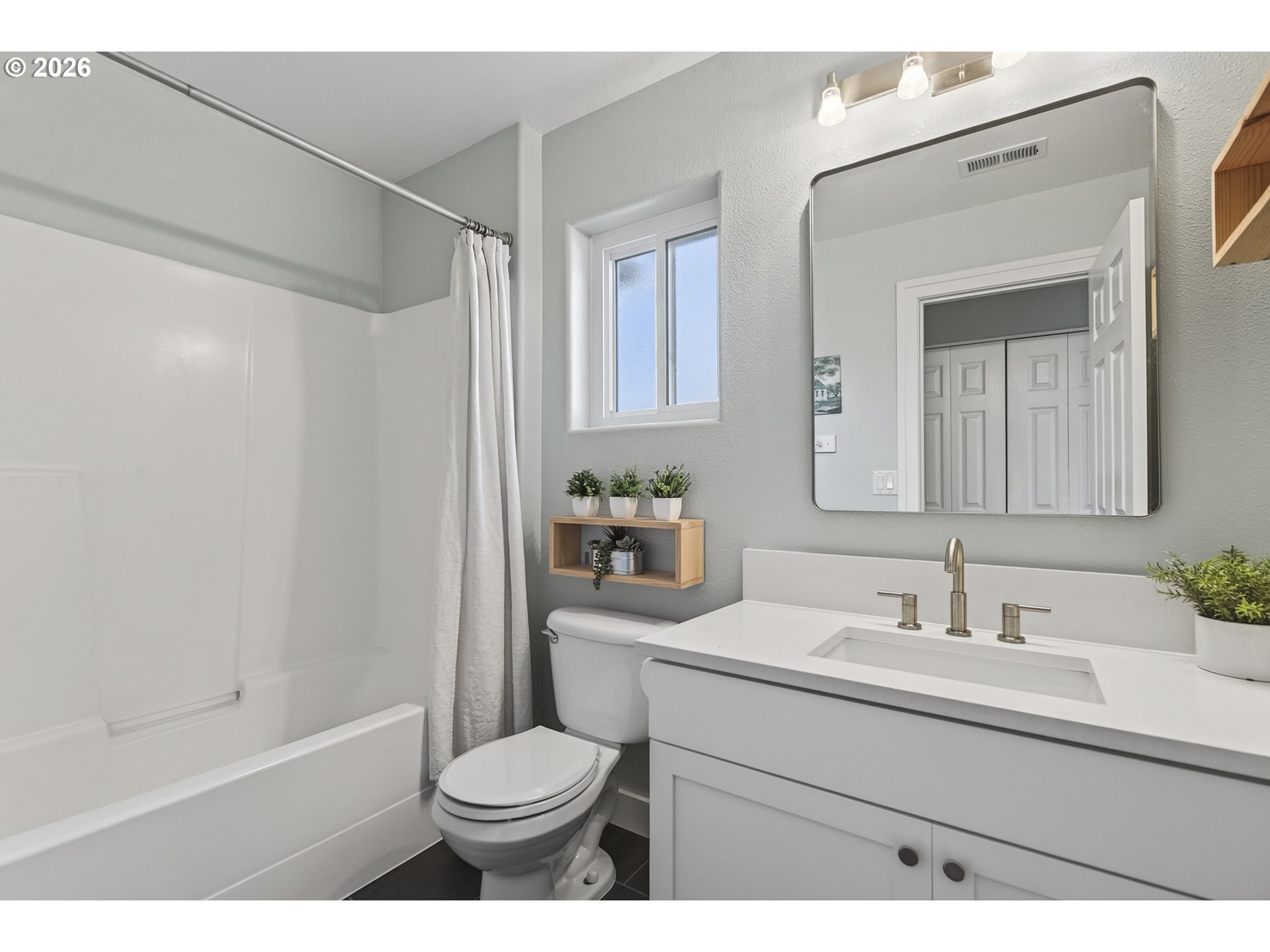 This wonderfully maintained Camas home with 3 bedrooms + bonus/flex room is in the prime neighborhood of Terrace at Fishers Landing! Formal living room with 18ft ceilings that display your floor to ceiling windows bringing in ample natural lighting. Updated kitchen area connects to your family & dining space perfect for hosting meals & gathering in front of the fireplace. Your additional flex space off of the family room is great for an office, craft room or sleeping space for guests. Upstairs primary features vaulted ceilings, a tastefully updated en suite bathroom with double vanities, soaking tub & tile walk-in shower. 2 additional spacious bedrooms with great natural light share the 2nd updated bathroom that is adjacent to your laundry room w/ utility sink & washer/dryer. Your covered patio space can be used year round for gathering & entertaining with beautiful views of your manicured yard & extra privacy with no direct rear neighbors! Recent updates include full bathroom remodels, new roof & all new windows for peace of mind for years to come. The HOA maintained park & walking trails are just steps away in this small quiet neighborhood. Outstanding Camas schools, favorable location near shopping, restaurants & freeway access. Come take a look & fall in love!