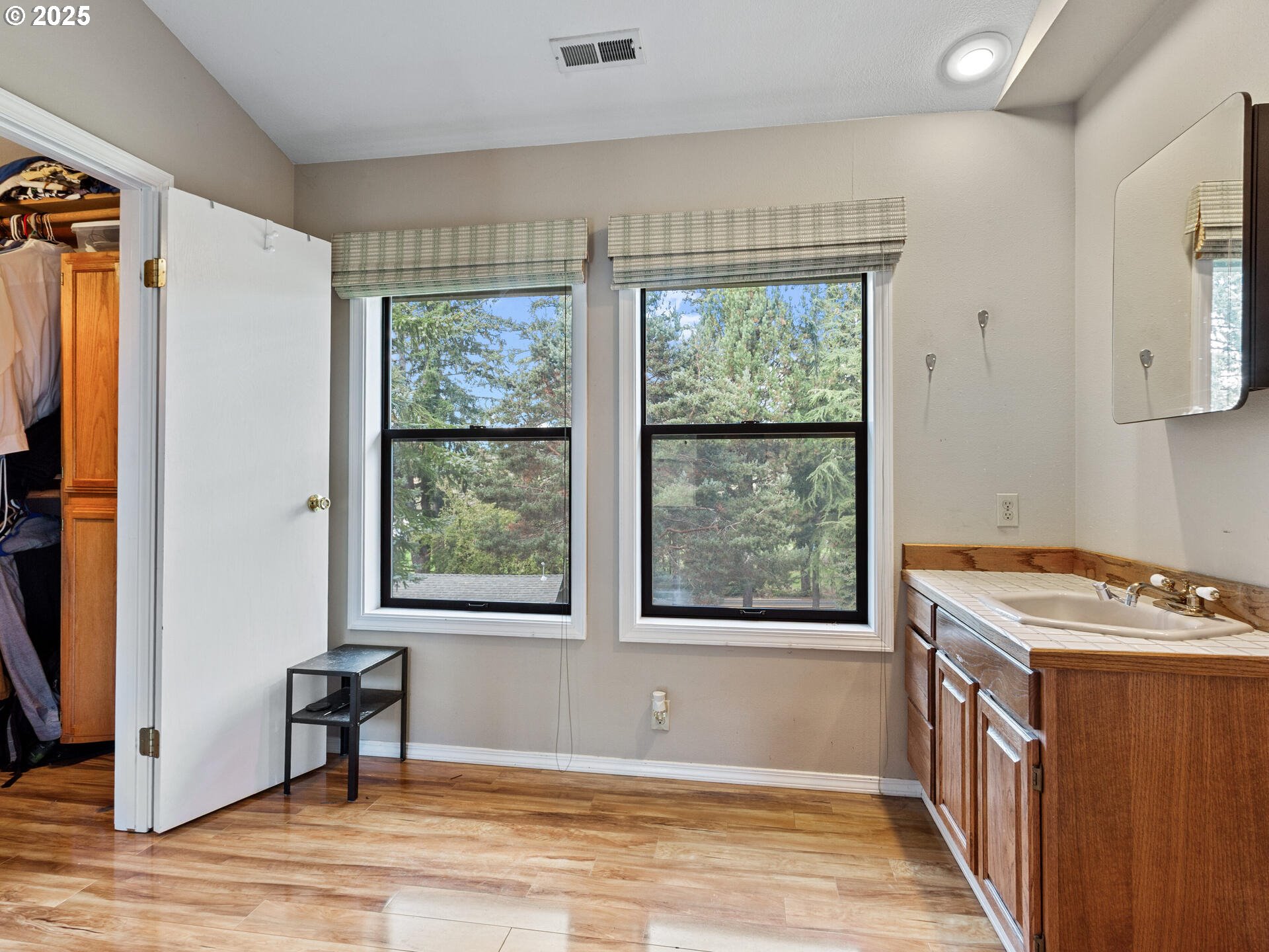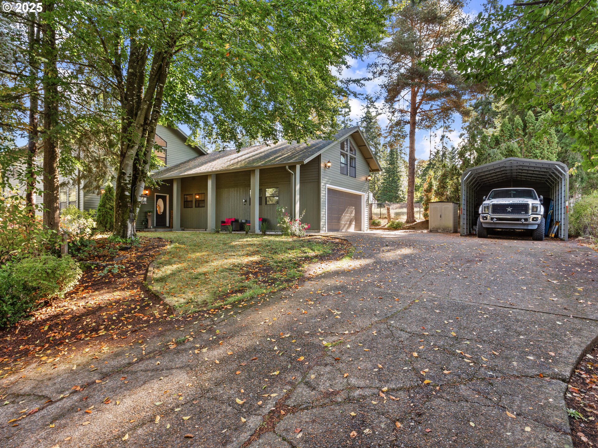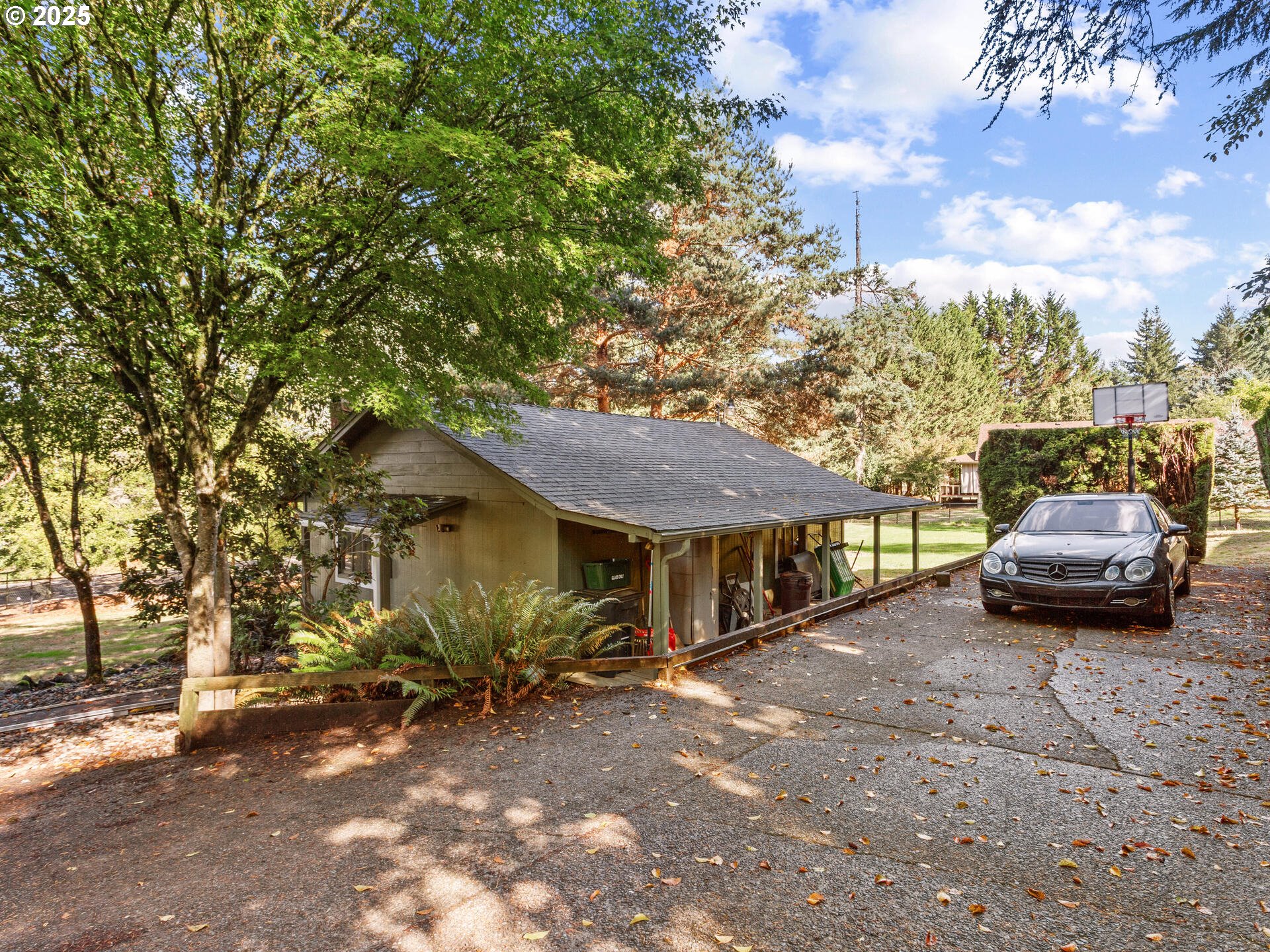 Nestled in the serene Battle Ground countryside, this meticulously maintained three-bedroom, 2.5-bathroom home is ready for you to move in and make it your own. Situated on a fully fenced and gated .79-acre parcel with a gentle slope, this property provides space and amenities. On entry, you'll be greeted by the charm of a vintage 28x22 workshop equipped with electricity, plenty of off-street parking, a galvanized steel carport and a green house. The spacious eat-in kitchen blends functionality with style. Adorned with oak hardwood floors & cabinets, quartz countertops and stainless-steel appliances, including a newer range. Entertain guests in the elegant 16x13 formal dining room, where French doors lead out to a delightful patio area, perfect for enjoying a sunny day. Curl up in the cozy living or family rooms, both featuring tile floors and warmed by a wood stove in the family room, promising comfort and security on chilly winter evenings. Retire to the spacious 18x16 vaulted primary bedroom, complete with a walk-in closet and laminate flooring. The sprawling 36x16 bonus room offers endless possibilities. With 288 square feet at full height and an additional 250 square feet cantilevered, this space is ideal for a playroom, home office, game room, man cave or hobby area. Stay comfortable year-round with an energy-efficient heat pump, providing both heat and cool for optimal indoor climate control. Don't miss your opportunity to experience country living at its finest in this stunning home that blends modern amenities with timeless charm.