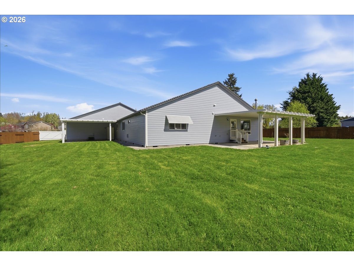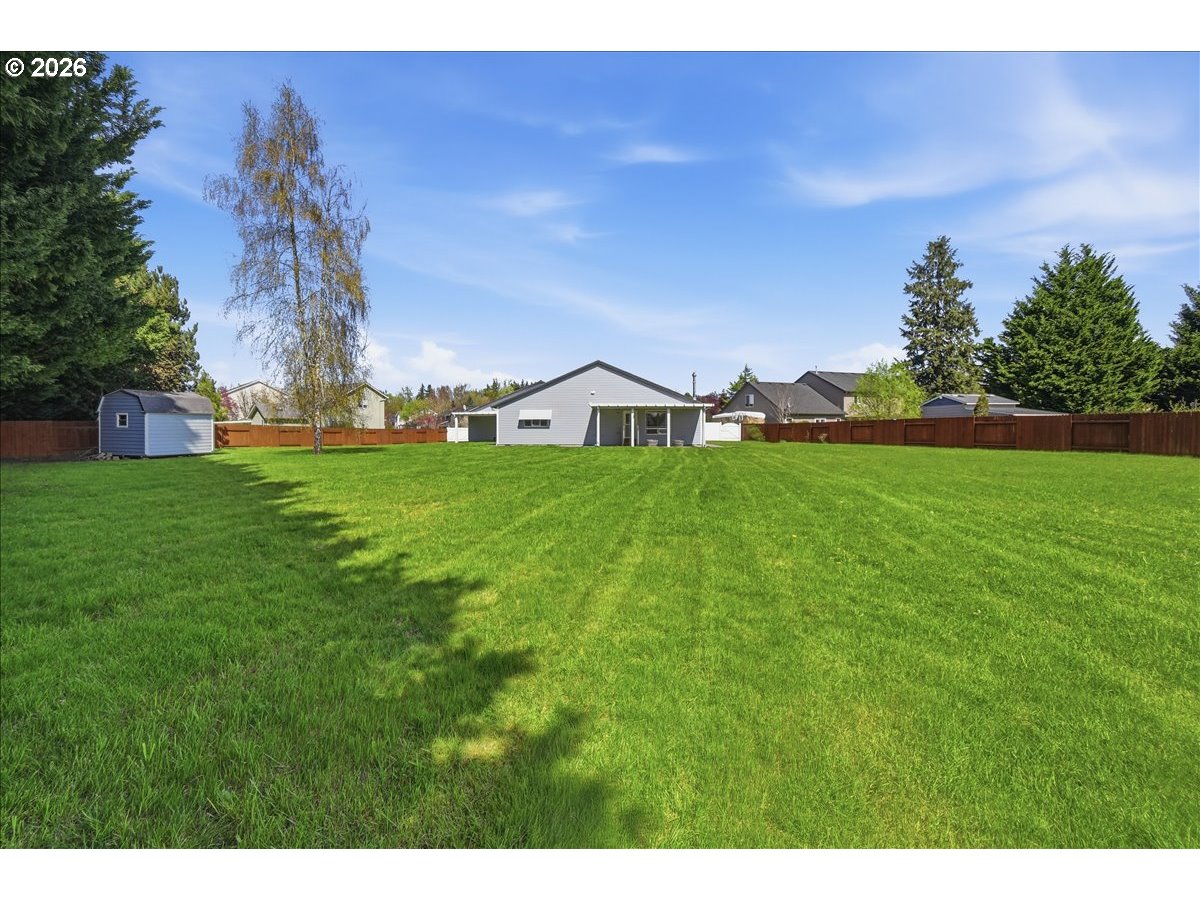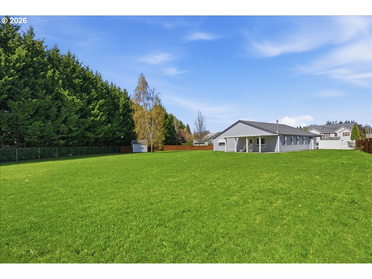 Pride of ownership shines throughout this beautifully maintained, single-level home offered by the original owner, ideally situated on nearly an acre in the highly sought-after Tudor Glen neighborhood. Boasting 2,678 sq ft, this versatile 4-bedroom layout includes a potential office/4th bedroom and offers the perfect blend of comfort and functionality. Recently painted inside and out, the home feels fresh, clean, and move-in ready. Vaulted ceilings and abundant natural light create an inviting atmosphere, while the spacious living and dining rooms with a cozy fireplace provide ideal spaces for gathering and entertaining. The well-appointed kitchen features convenient pullouts, a large walk-in pantry, and a generous eating nook, all opening to a warm and inviting family room complete with a wood stove. The private primary suite is thoughtfully separated from the other bedrooms and serves as a true retreat with ample space, a large walk-in closet with built-in shelving, and an ensuite bath featuring a jetted tub, separate shower, and abundant cabinetry. The additional bedrooms are impressively sized with great closet space, and the home offers excellent storage throughout, including a laundry room with utility sink and extra cabinets. Outside, enjoy two expansive covered patios, a peaceful backyard with custom landscape curbing, a garden area with mature pear, apple, and cherry trees, a sprinkler system, and a storage shed. There is ample room for a shop/ADU, plus an impressive 1,356 sq ft garage accommodating up to 6 vehicles along with RV parking. Designed with accessibility in mind, the home includes wide hallways and doorways for wheelchair access. All of this just minutes from downtown Battle Ground, where you can enjoy charming local shops and fantastic dining—making this close-in acreage property a rare and exceptional find.