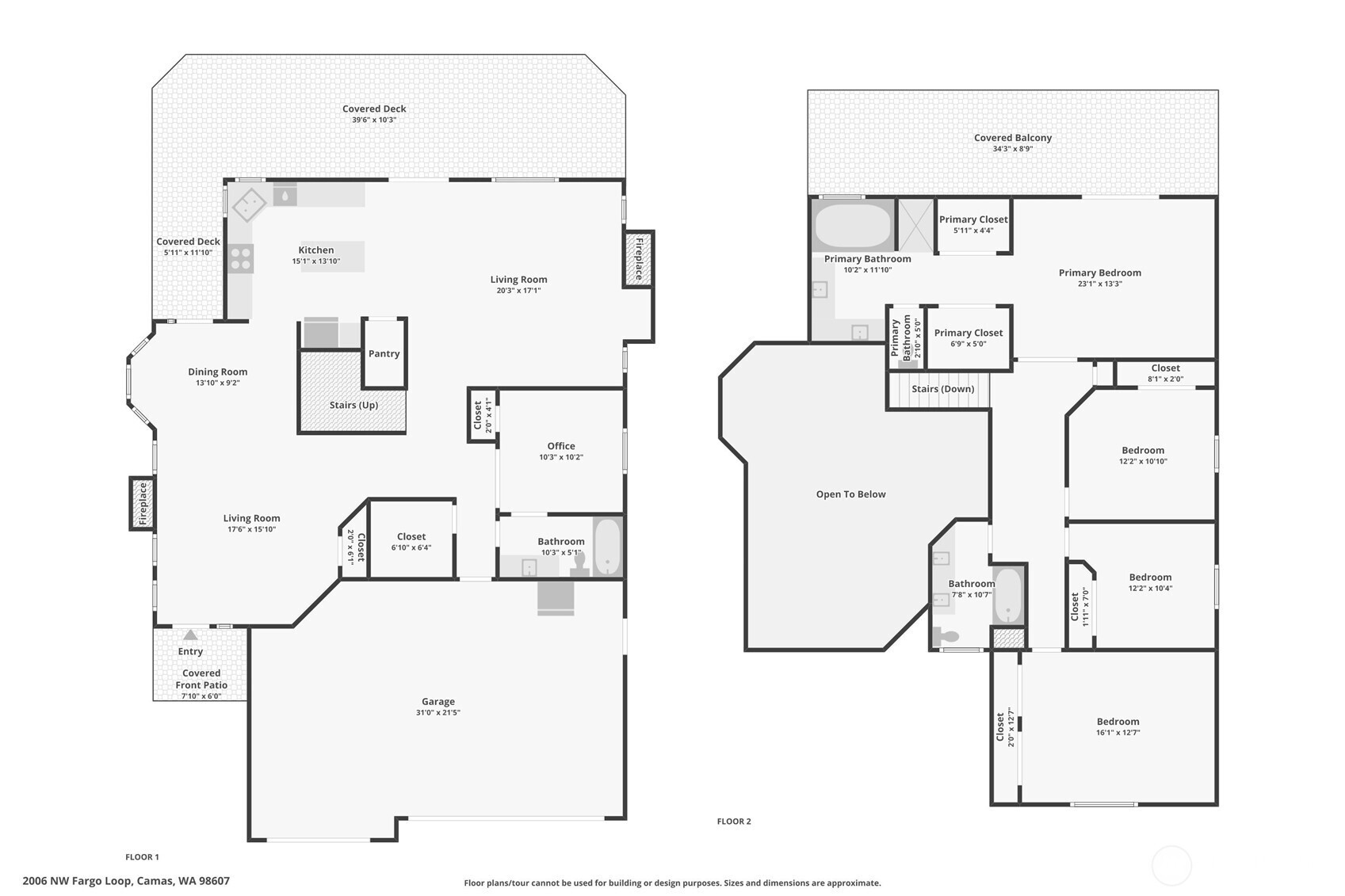 Incredible mountain and river views await in this spacious Camas gem! Nestled in a premier, established neighborhood known for top-tier schools, this home is perfectly positioned to capture magical moments from the double decks. The light and airy floor plan features soaring vaulted ceilings and a multitude of windows that fill the home with natural light. The flexible layout offers 5 bedrooms and 3 full baths, including a bedroom and full bath on the main level—ideal for guests or a home office. Designed for comfort, the home features TWO cozy gas fireplaces: one in the inviting great room and another to add warmth to the living space. The primary suite is a true retreat with vaulted ceilings and a private deck to soak in the scenery. Enjoy the low-maintenance backyard and year-round outdoor living on the expansive covered deck. Includes updated 2021 kitchen appliances and LVP flooring. Minutes to DT Camas, Lacamas Lake, Round Lake, and access to PDX. A perfect blend of view, space, and location! OFFER DEADLINE SET FOR WEDNESDAY, APRIL 22ND @ 3PM.
