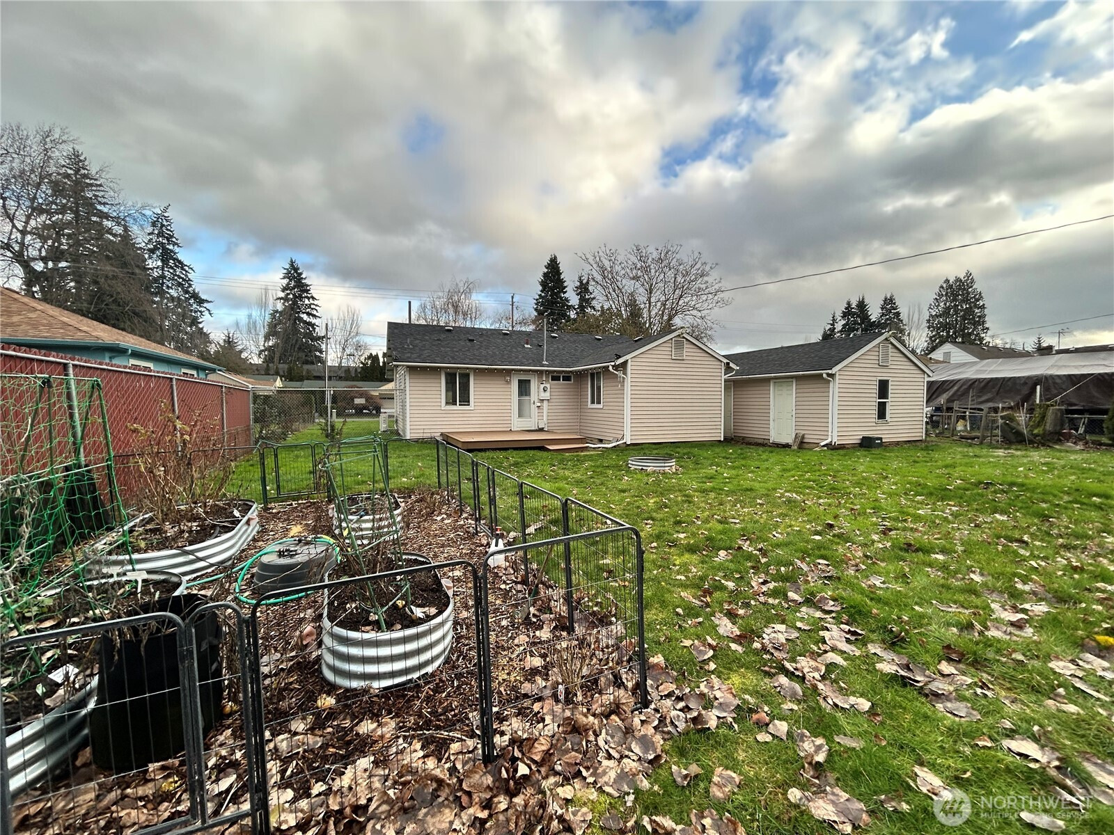 This delightful 2-bedroom, 1-bath home sits on an impressive .22-acre lot, offering endless outdoor potential. Inside, you'll find a cozy layout with stainless steel appliances in the kitchen and a comfortable flow throughout the home. The fully fenced backyard is perfect for pets with a back gate for additional access and for gardening enthusiasts with its raised beds. The backyard firepit creates a perfect ambiance for memorable gatherings outdoors. Enjoy summer evenings on the back deck and take advantage of plentiful RV parking. A detached garage with a bonus workshop area provides excellent hobby space. A rare find with room to grow!
