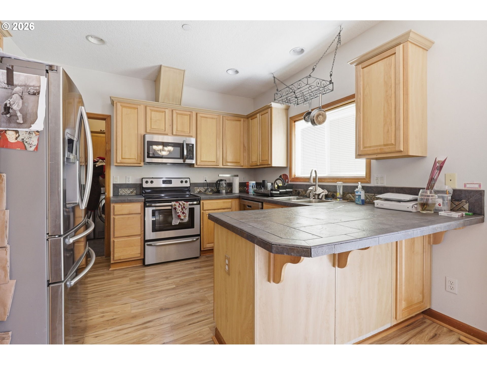 This beautifully updated 4-bedroom, 2.5-bath home is located in one of Camas’s most desirable neighborhoods. Offering 1,855 square feet of comfortable living space, this 2005-built two-story home sits in the award-winning Camas School District.Inside, you’ll find fresh paint throughout and new waterproof wood laminate flooring on the main level. The kitchen features upgraded tile countertops, stainless steel appliances, and newer cabinets. A cozy gas fireplace adds warmth to the living area. Upstairs, all four bedrooms are private, including a spacious primary suite. Recent upgrades include a new furnace and air conditioning unit, plus a recently expanded driveway for added convenience. Outside, enjoy a large, fully fenced backyard that provides excellent privacy. Perfectly situated with quick access to downtown Camas and Highway 14, this home combines modern updates with an unbeatable location.