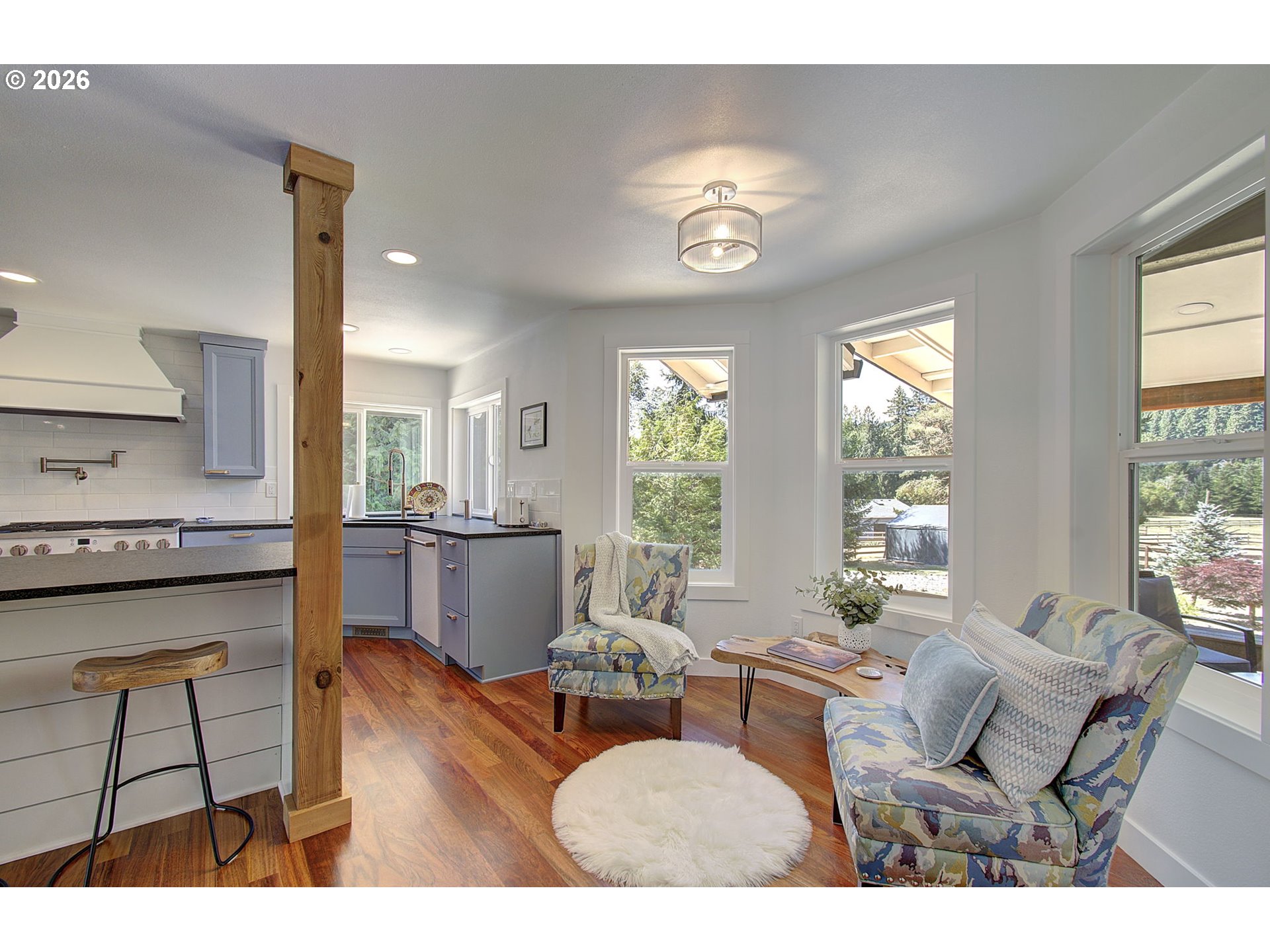 (503) 893-8874This stunning residence has been completely remodeled. The living room boasts high ceilings and an abundance of natural light. The family room offers a cozy atmosphere with a propane fireplace, perfect for chilly evenings. You'll cherish the views from the family room and kitchen nook daily. The gorgeous, fully remodeled kitchen features: GE Cafe, Smart Appliances, and Kohler fixtures. An impressive 70 sq. ft. walk-in pantry. Throughout the home, Brazilian Teak hardwood floors add a warm touch. The primary bedroom is spacious, with a bay window that presents a delightful view to wake up to. The master bathroom will surely be a favorite, featuring a luxurious double-sized, double-head walk-in shower. Set on three usable acres. The property includes a fenced back pasture for animals. Beyond the property line, enjoy access to a common area featuring a covered bridge, horse trails, and two fishing ponds. Relax on the back patio and soak it all in.
