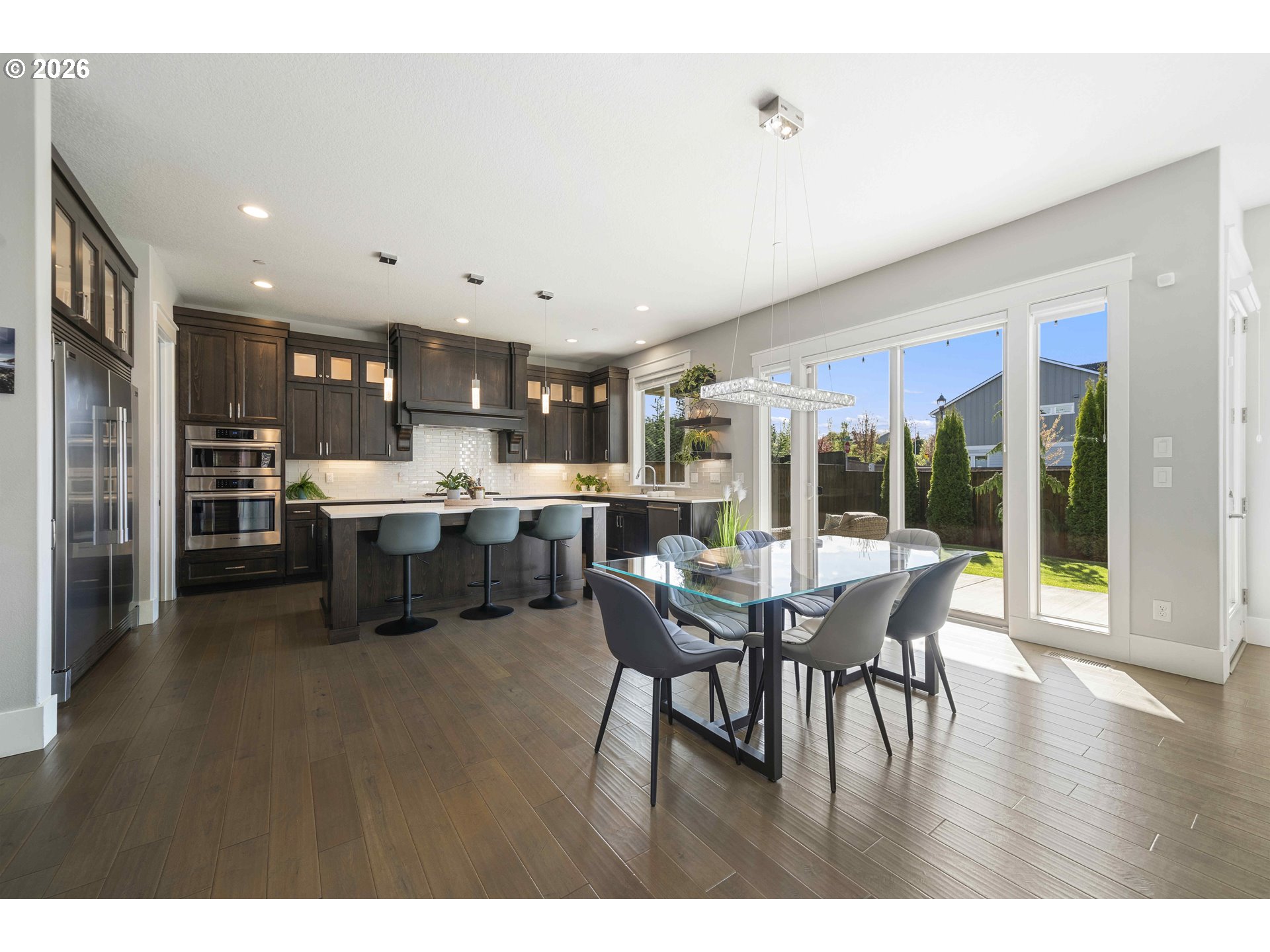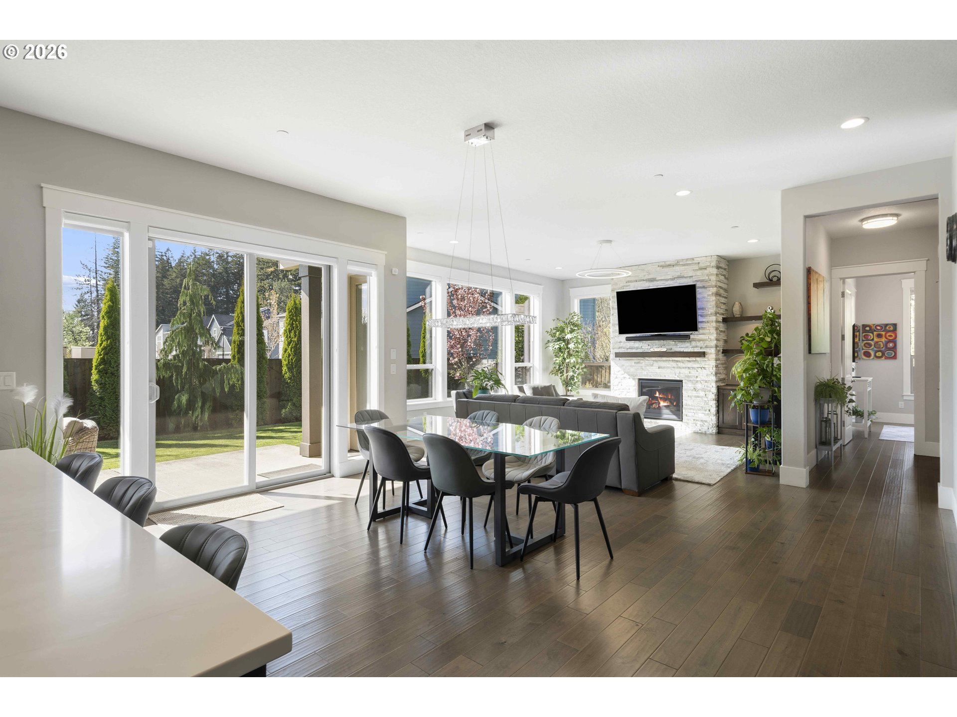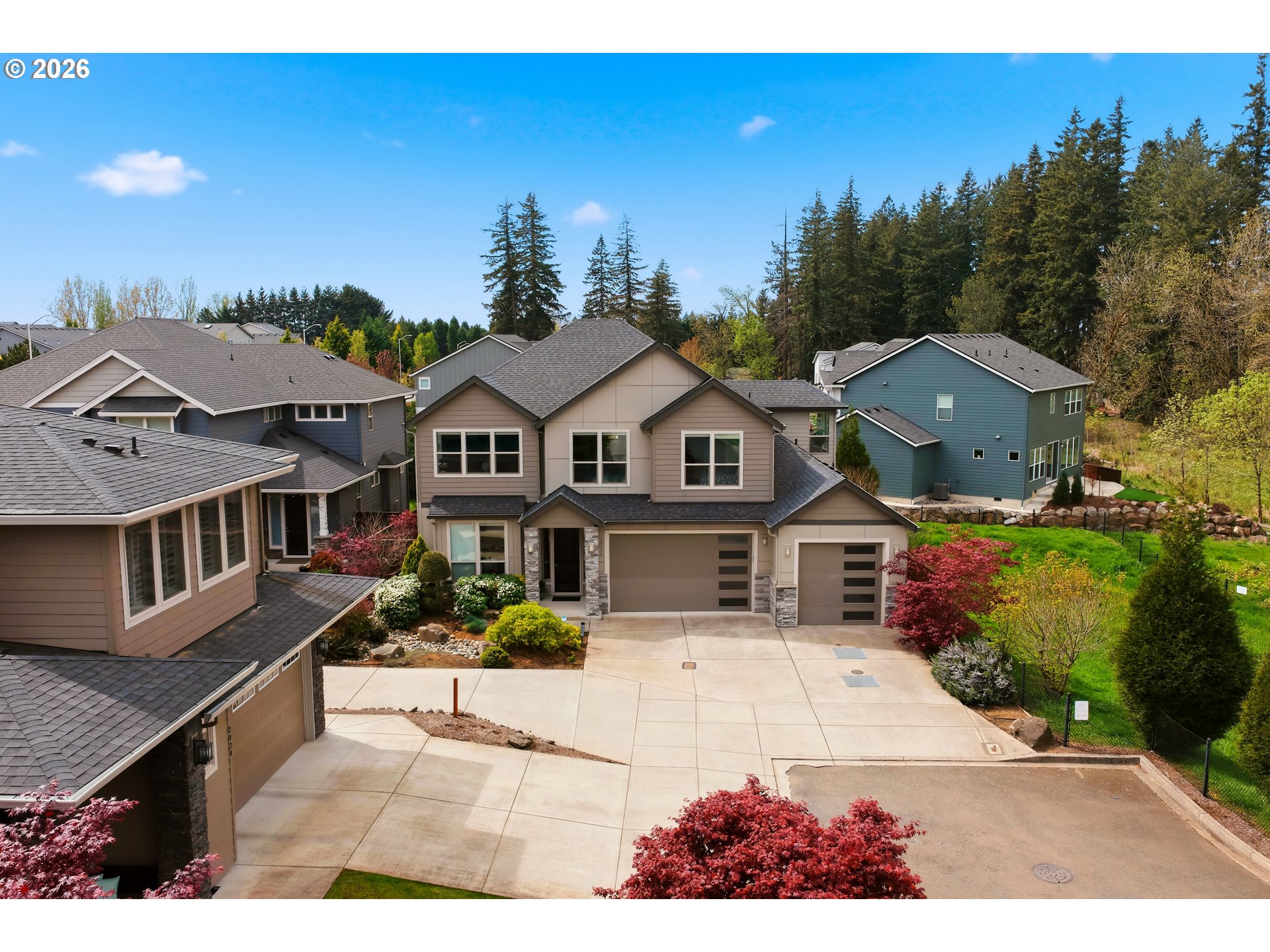 (503) 893-8874Built by Cascade West and positioned at the end of a cul-de-sac in Sierra Meadows, just blocks from Lacamas Lake, this home backs to green space in one of Camas’ most sought-after areas, served by top-rated Camas schools. A west-facing orientation and expansive windows bring in consistent natural light, highlighting high ceilings and a clean, modern design. The layout is both functional and comfortable, with a seamless flow from the entry into the kitchen and great room, ideal for everyday living and hosting. Offering 3,730 sq ft plus a 23’ x 10’ covered outdoor living area and adjacent patio ready for a firepit, the home extends naturally to the outdoors, where deer are often seen passing through the greenspace. The main level includes two office spaces, a guest suite with ensuite bath, and a well-appointed kitchen featuring Bosch appliances, double oven with steam, column fridge/freezer, quartz counters, butler’s pantry, and soft-close cabinetry, all connected to the great room with fireplace. Upstairs, the primary suite features coffered ceilings with integrated lighting, a sitting area, spa bath, walk-in closet, direct laundry access, and electric blinds. Two additional bedrooms, a double vanity bath, and a flexible media room with wet bar and wine cooler, ideal as a fifth bedroom, complete the upper level. Additional features include 10’ ceilings on the main, 9’ upstairs, 8’ doors, Type 2 EV Charger, Hunter Douglas blinds, high-efficiency HVAC, and a tankless water heater. Schedule your private tour today, this won’t last long!