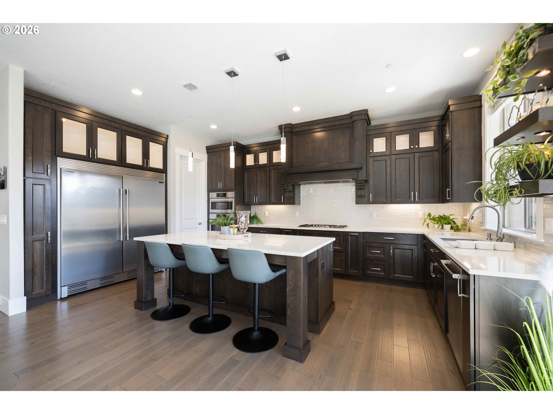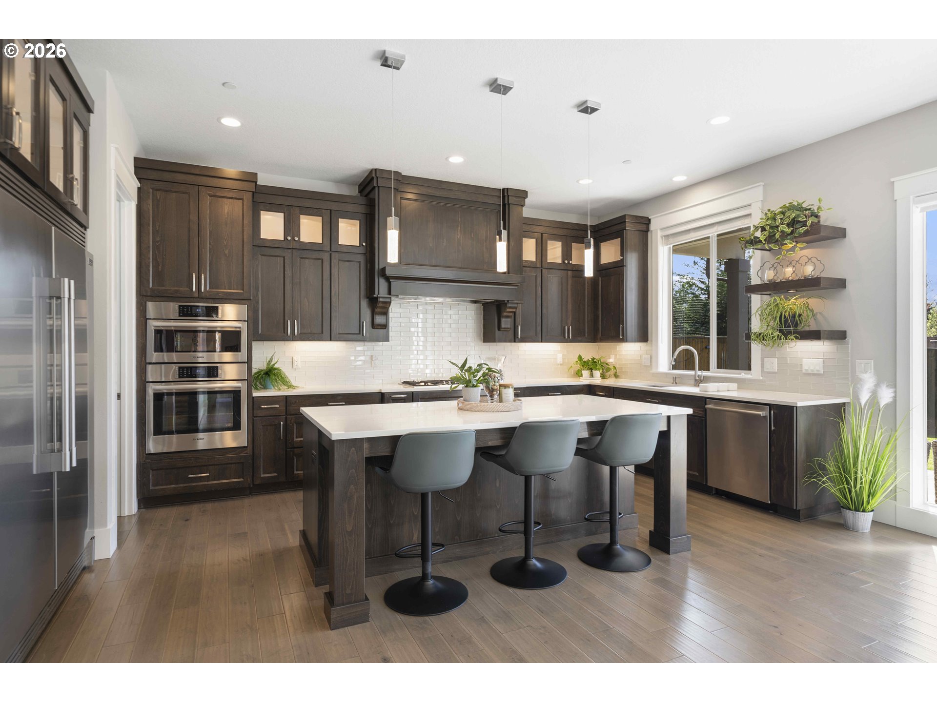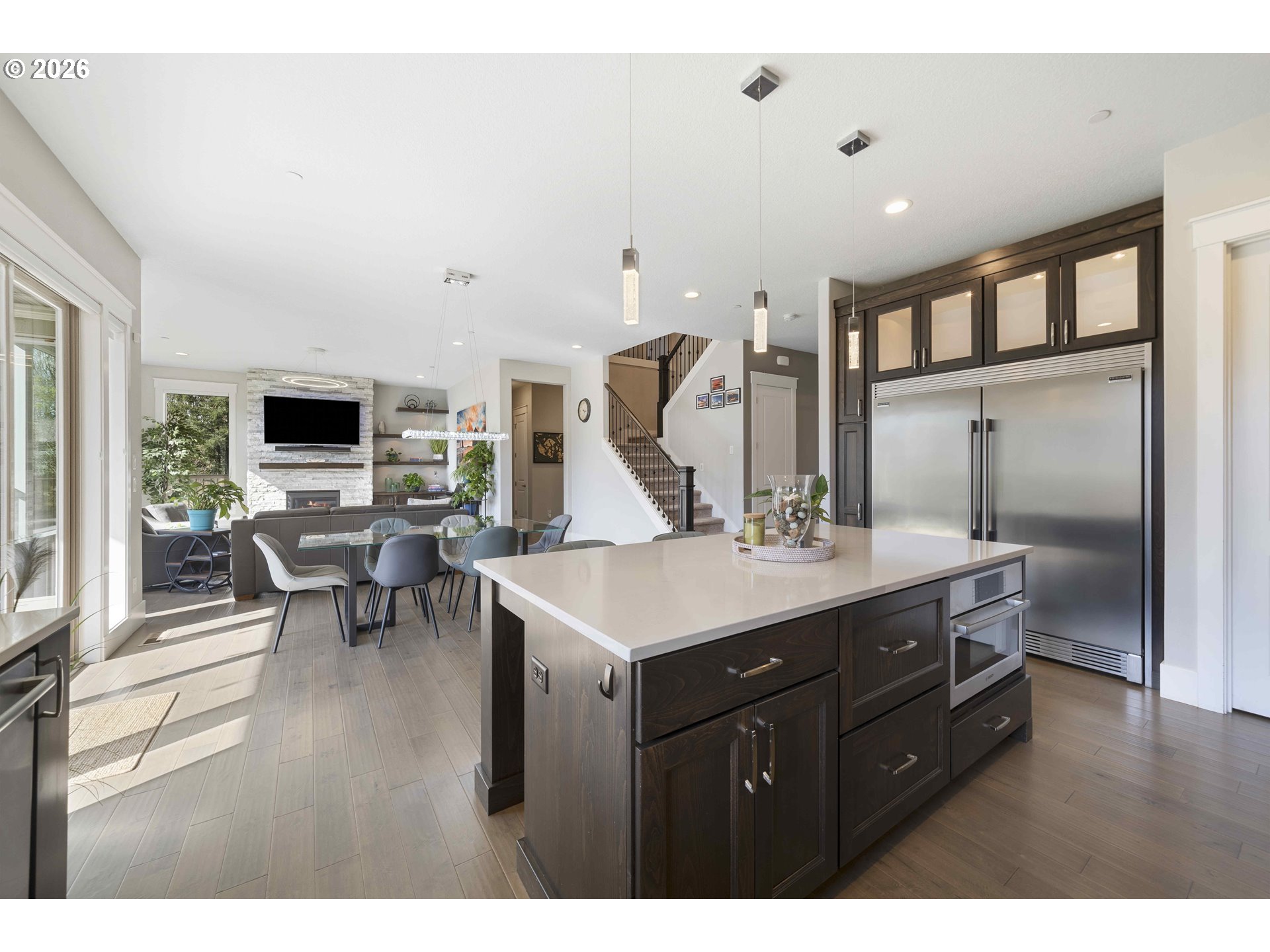 (503) 893-8874Built by Cascade West and positioned at the end of a cul-de-sac in Sierra Meadows, just blocks from Lacamas Lake, this home backs to green space in one of Camas’ most sought-after areas, served by top-rated Camas schools. A west-facing orientation and expansive windows bring in consistent natural light, highlighting high ceilings and a clean, modern design. The layout is both functional and comfortable, with a seamless flow from the entry into the kitchen and great room, ideal for everyday living and hosting. Offering 3,730 sq ft plus a 23’ x 10’ covered outdoor living area and adjacent patio ready for a firepit, the home extends naturally to the outdoors, where deer are often seen passing through the greenspace. The main level includes two office spaces, a guest suite with ensuite bath, and a well-appointed kitchen featuring Bosch appliances, double oven with steam, column fridge/freezer, quartz counters, butler’s pantry, and soft-close cabinetry, all connected to the great room with fireplace. Upstairs, the primary suite features coffered ceilings with integrated lighting, a sitting area, spa bath, walk-in closet, direct laundry access, and electric blinds. Two additional bedrooms, a double vanity bath, and a flexible media room with wet bar and wine cooler, ideal as a fifth bedroom, complete the upper level. Additional features include 10’ ceilings on the main, 9’ upstairs, 8’ doors, Type 2 EV Charger, Hunter Douglas blinds, high-efficiency HVAC, and a tankless water heater. Schedule your private tour today, this won’t last long!