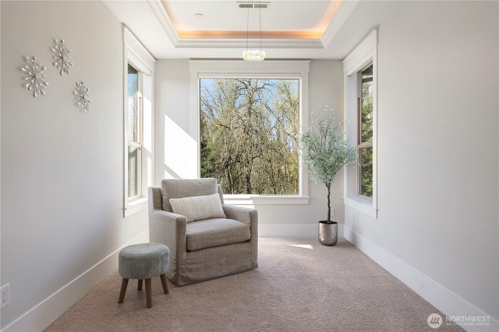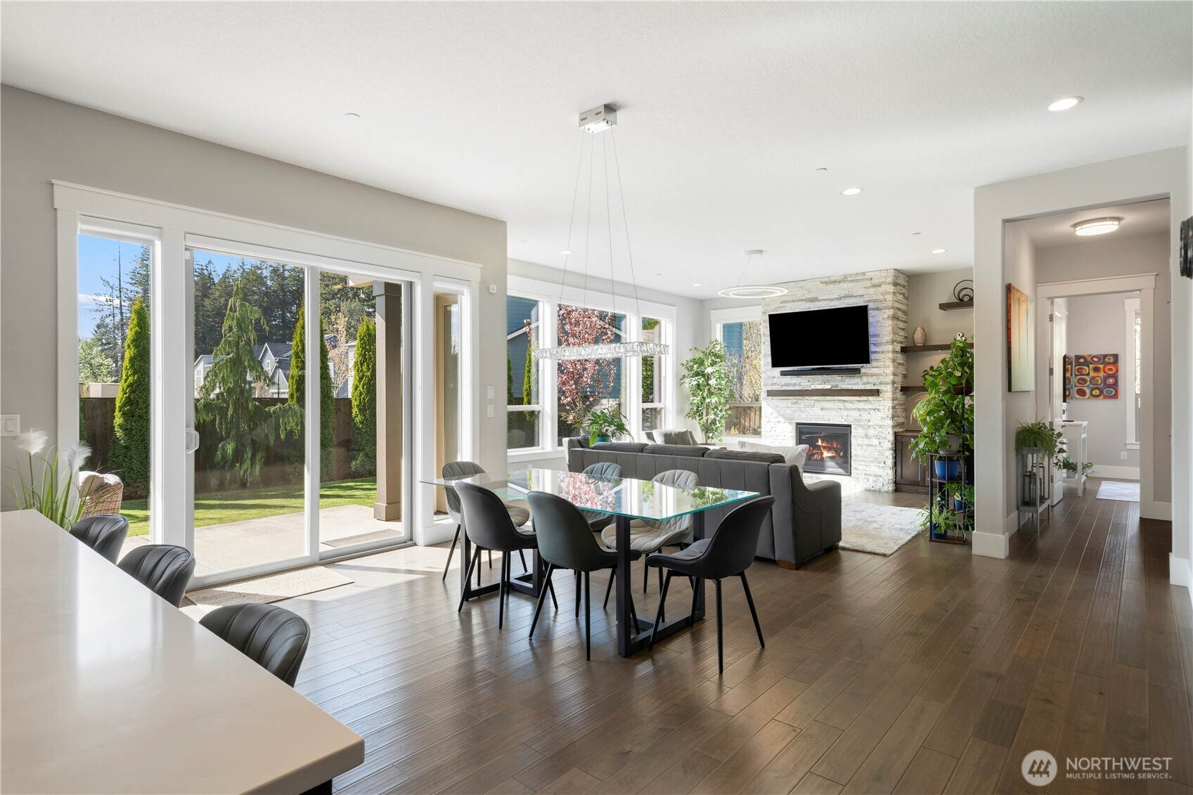 Luxury build uniquely positioned at the end of a cul-de-sac in Sierra Meadows, just blocks from Lacamas Lake, this home backs to green space in one of Camas’ most sought-after areas, served by top-rated Camas schools. A west-facing orientation and expansive windows bring in natural light, highlighting high ceilings and a clean, modern design. The layout is functional and comfortable, with a seamless flow from the entry into the kitchen and great room, ideal for everyday living and hosting. Offering 3,730 sq ft plus a 23’ x 10’ covered outdoor living area and adjacent patio ready for a firepit, the home extends naturally outdoors, where deer are often seen passing through the greenspace. The main level includes two office spaces, a guest suite with ensuite bath, and a well-appointed kitchen featuring Bosch appliances, double oven with steam, column fridge/freezer, quartz counters, butler’s pantry, and soft-close cabinetry, all connected to the great room with fireplace. Upstairs, the primary suite features coffered ceilings with integrated lighting, a sitting area, spa bath, walk-in closet, direct laundry access, and electric blinds. Two additional bedrooms, a double vanity bath, and a flexible media room with wet bar and wine cooler, ideal as a fifth bedroom, complete the upper level. Other features include 10’ ceilings on the main, 9’ upstairs, 8’ doors, Type 2 EV Charger, Hunter Douglas blinds, high-efficiency HVAC, and tankless water heater. Schedule your tour today!