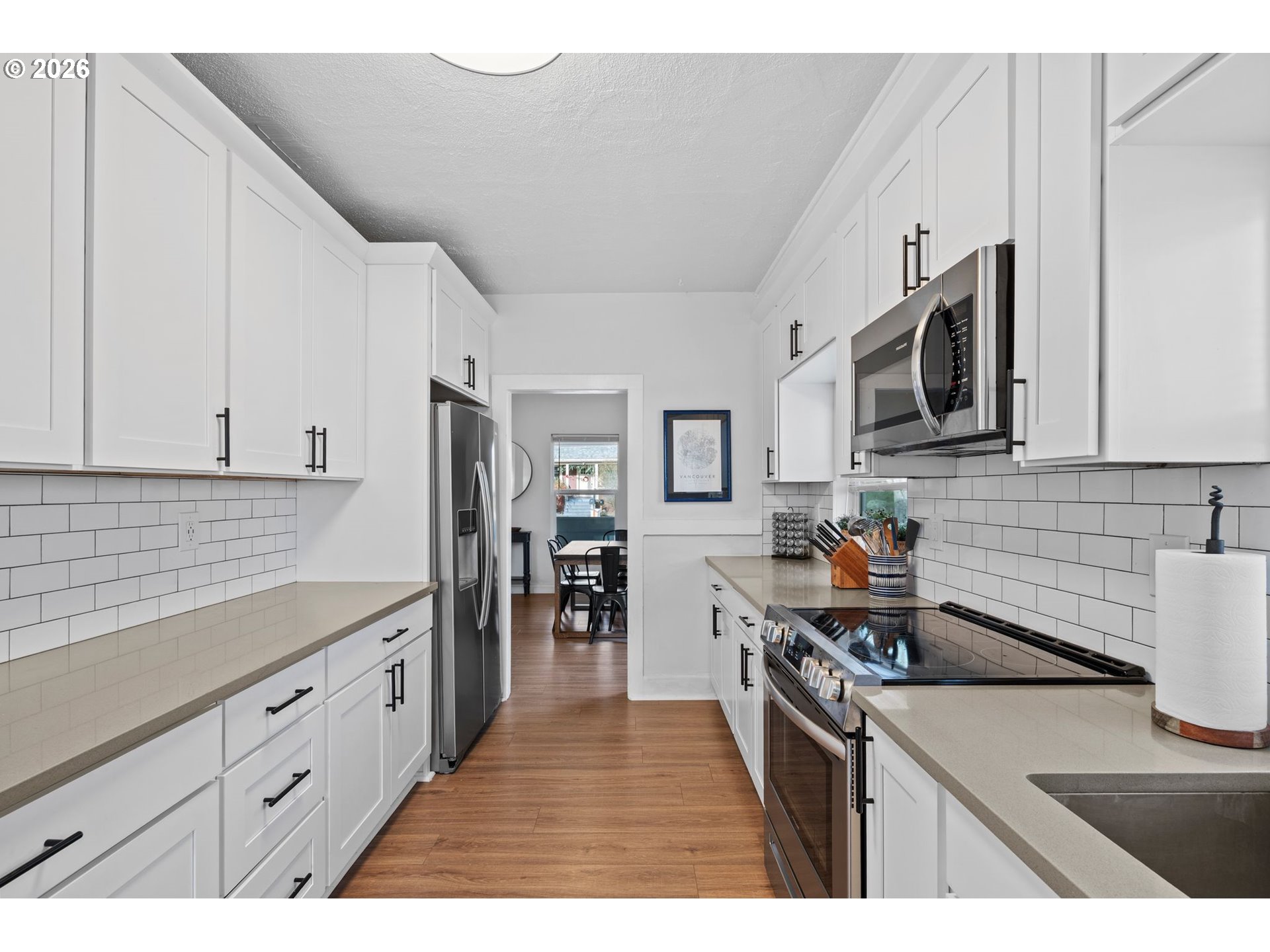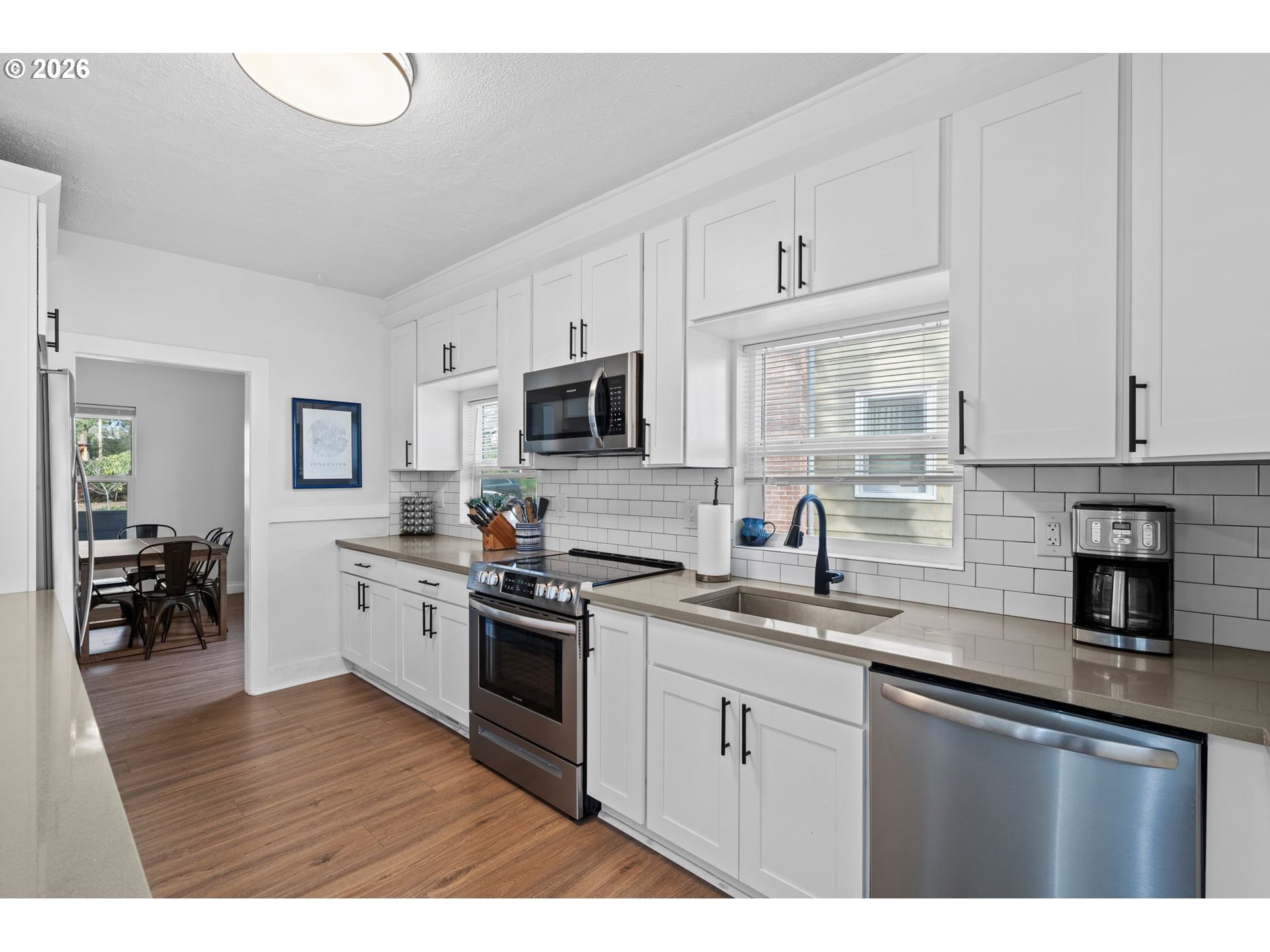 This home feels easy, warm, and thoughtfully designed in all the right ways, set in the prime Carter Park neighborhood just minutes from Uptown Village, shopping, restaurants, and everyday conveniences. The main level offers two bedrooms and two bathrooms, including a true primary suite, while the lower level adds a private third bedroom, full bath, and laundry area that is perfect for guests, work-from-home life, or extra space to spread out. Laminate floors flow throughout, leading into a stylish galley kitchen with stainless steel appliances and beautiful finishes, and the recently serviced HVAC adds peace of mind. Start your mornings on the covered front porch, enjoy sunny afternoons on the back deck overlooking the fully fenced yard with a firepit and garden space, and appreciate the bonus of an oversized detached garage with alley access plus space to park an RV. Comfortable, charming, and incredibly well located, this one truly feels like home.