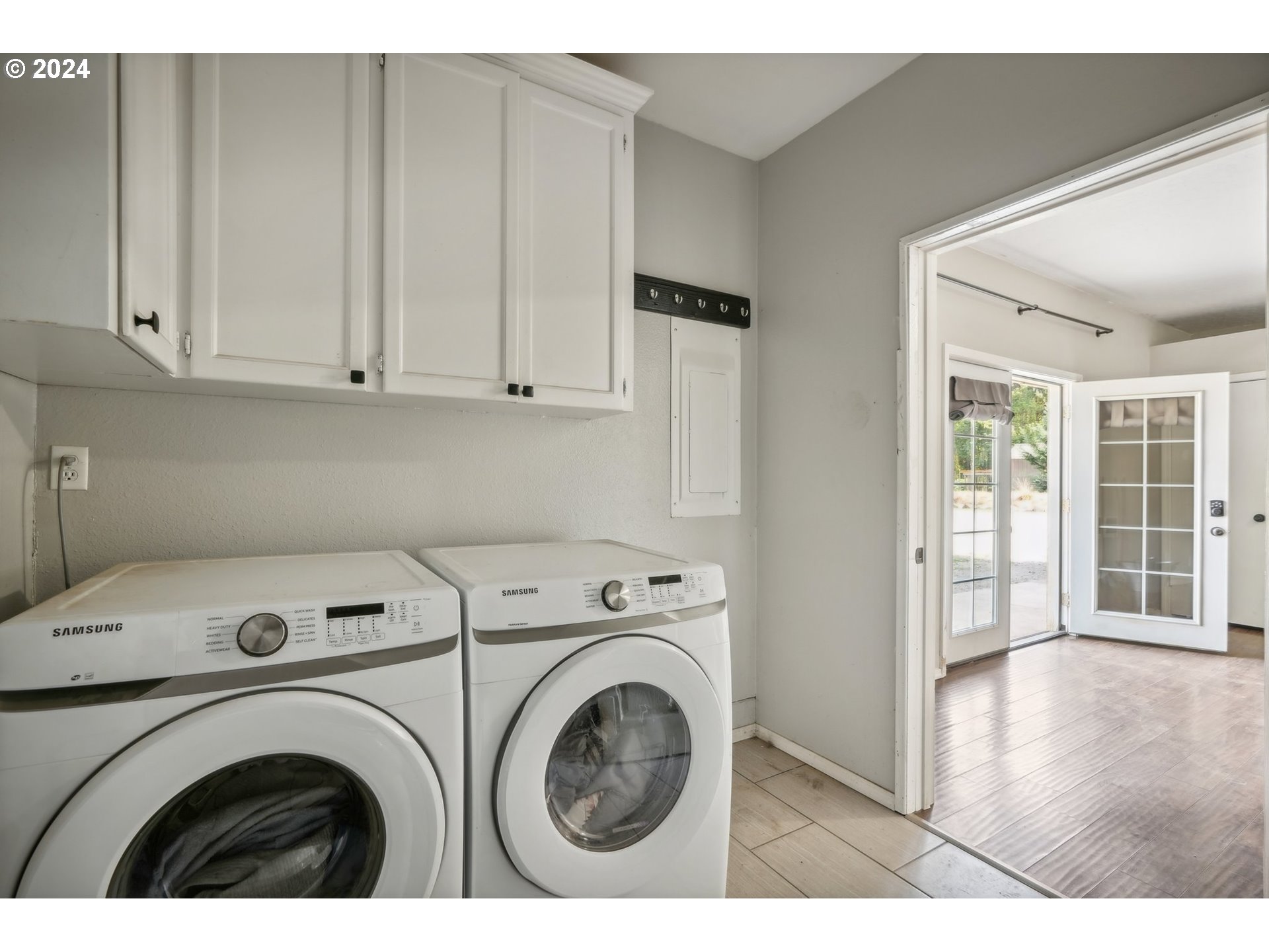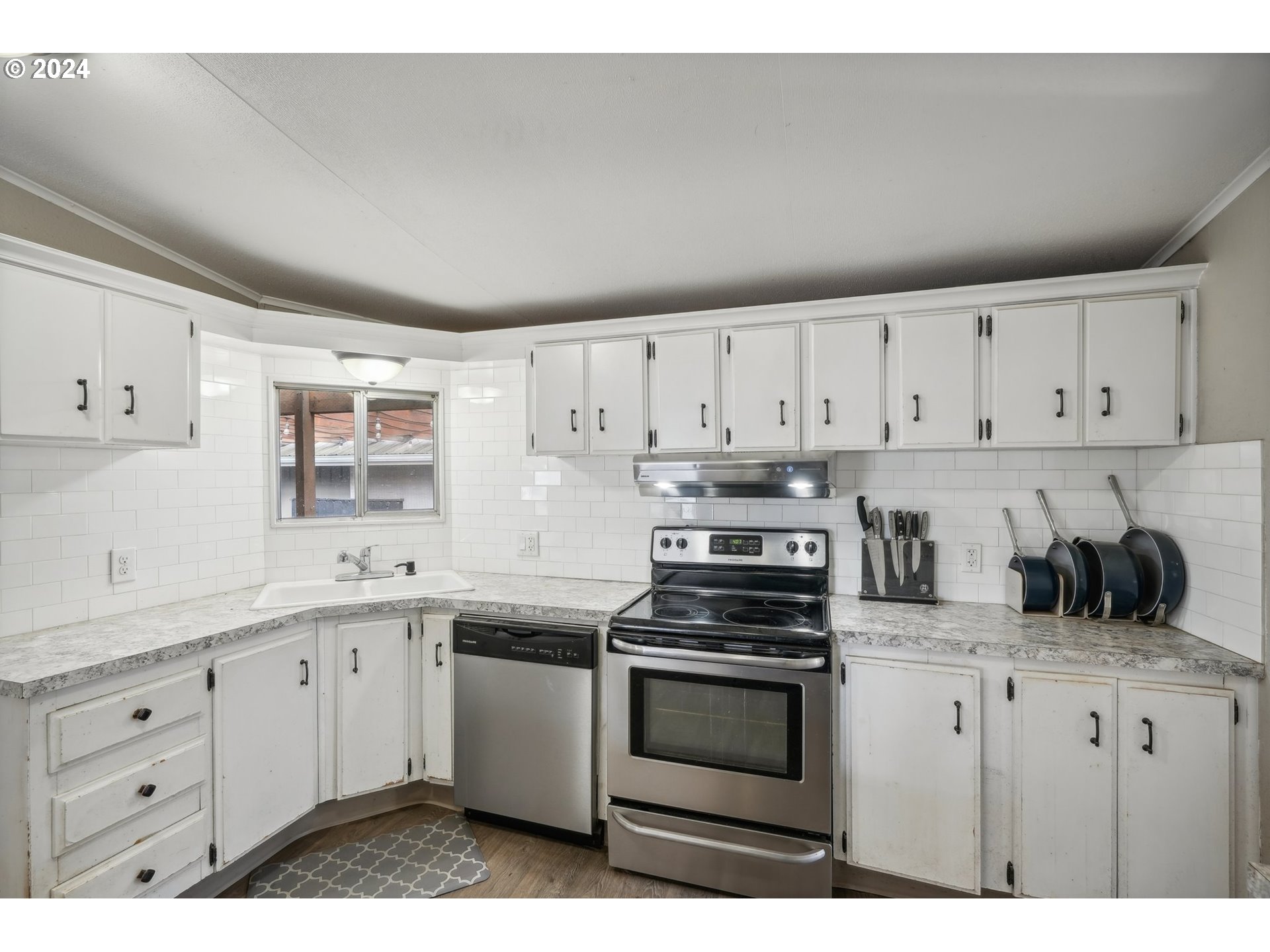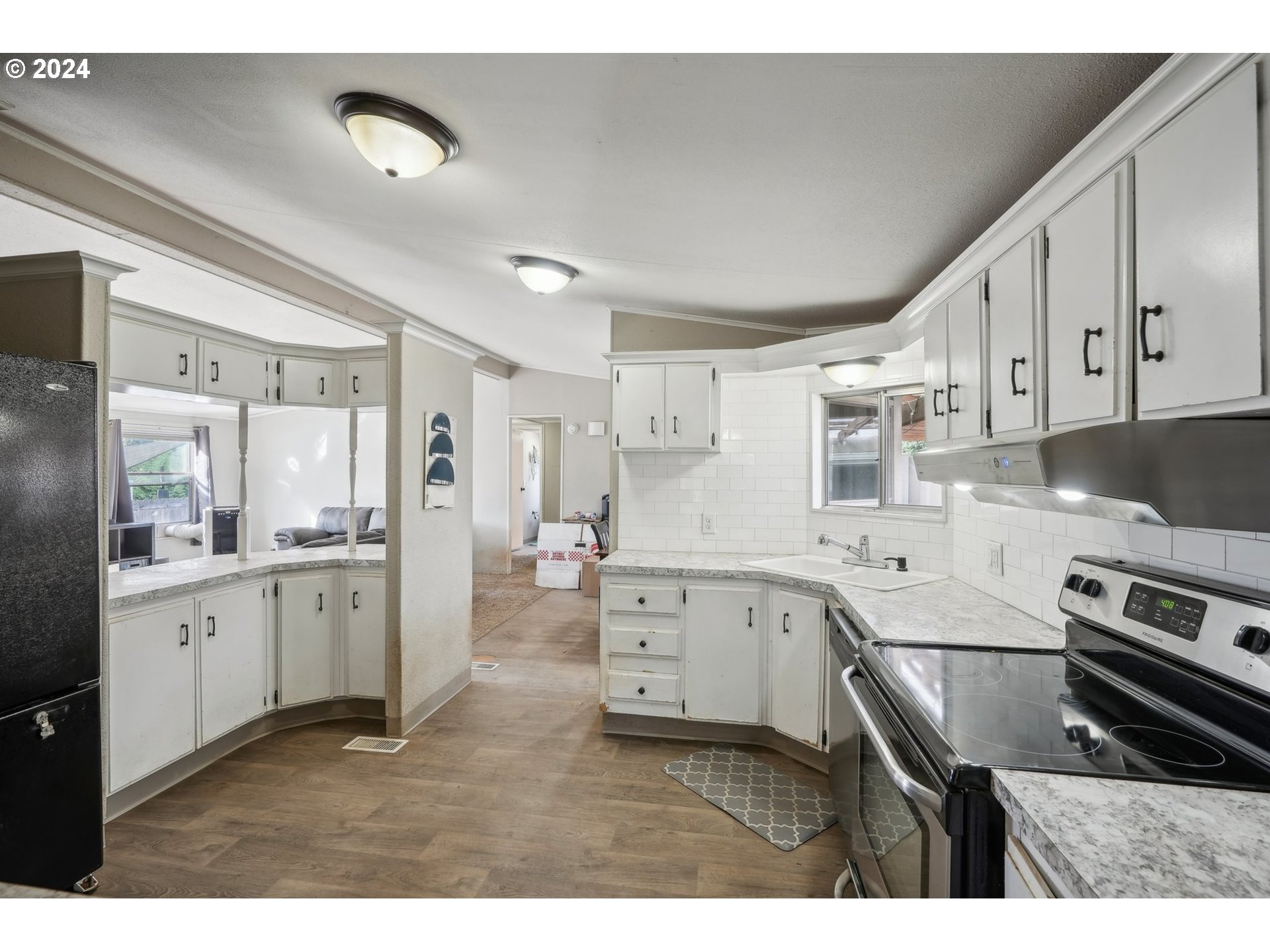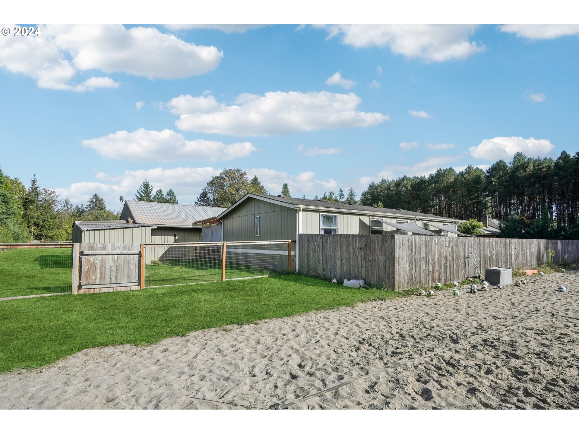 This expansive 1.17-acre property offers versatility with a 1,232 SF manufactured mobile home and an additional 1,120 SF stick built guest home. The manufactured home offers; 3 bedrooms, 2 full baths, a spacious living room and the home has a newer roof placed in 2021. The guest home offers a comfortable second living option with a sleek, updated kitchen, 3 bedrooms, a full bath, and a bonus office space. Outdoor amenities for these homes are a standout! The property features a sanded area, approximately 1/4 acre, with an underground water drainage system—ideal for a horse arena currently being used as a sand volleyball court. The large, level lot includes detached 1,120 SF garage, a detached shed (which could easily be converted into a pole barn), covered RV/boat parking, and a cozy covered sitting area. You’ll also enjoy an above-ground
