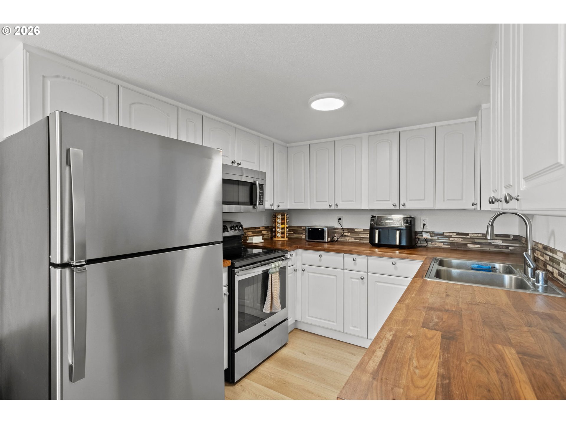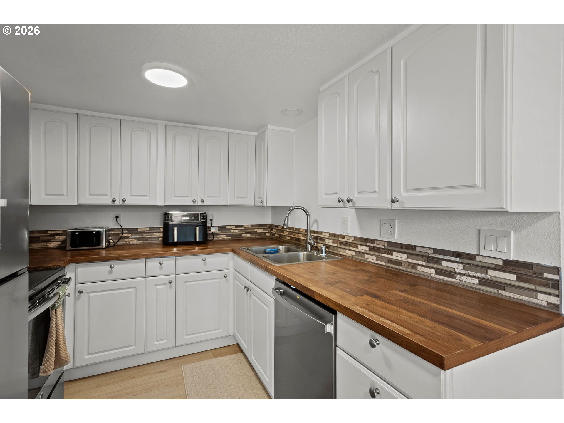 Modern, fully remodeled and move-in ready, this beautifully updated home offers style, function, and convenience. Enjoy all new LVP flooring seamlessly throughout, new trim, new interior paint, new outlets throughout, new closet shelves, and a completely renovated bathroom with a new vanity, lighting, and toilet. The kitchen features stainless steel appliances, butcher block counters, and a sleek tile glass backsplash. Additional upgrades include a new water heater, recently repainted exterior, and newer roof for peace of mind. Take in views of Vancouver Lake and enjoy being just minutes to Vancouver Lake and Frenchman’s Bar for outdoor recreation. Conveniently located near schools, shopping, dining, and transit. One deeded carport conveys with ample guest parking available. A turn-key opportunity in a prime location you don’t want to miss. All appliances convey.