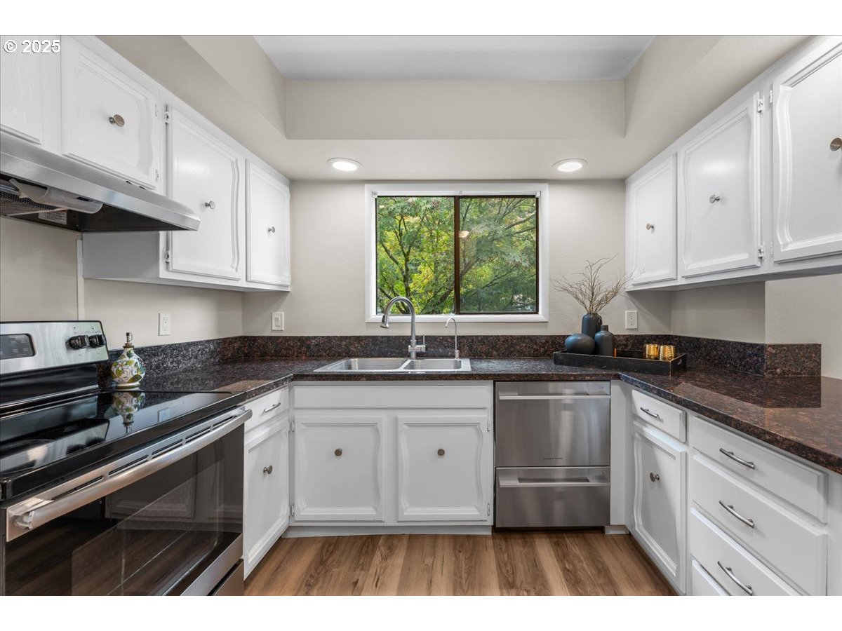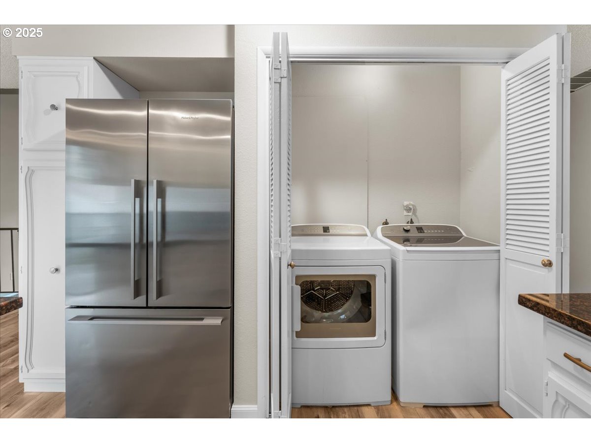 Welcome home to comfort, convenience, and thoughtful updates in this beautiful and spacious 2-bedroom, 2-bathroom condominium located in the heart of Vancouver. Step into fresh style with new waterproof luxury vinyl flooring installed throughout the entry, kitchen, dining, front bedroom, hallway and both bathrooms (Spring 2025), complemented by a full interior paint refresh in July 2025. The primary suite features double sinks, a large mirrored closet, linen storage AND a completely rebuilt water closet (Jan 2023), with new shower surround, fixtures and toilet. Bonus private balcony just outside primary suite bathroom.The kitchen is outfitted with premium stainless steel Fisher & Paykel appliances, including a bottom-freezer refrigerator and an innovative dual-drawer dishwasher that lets you run separate loads simultaneously — ideal for everyday ease or entertaining. The matching washer and dryer (also Fisher & Paykel) are included and thoughtfully located for convenience. With TWO large decks and multiple sliding glass doors throughout, you can easily invite the outdoors in. Enjoy year-round comfort with a high-efficiency heat pump HVAC system installed in 2021, and cozy wood burning fireplace. The oversized detached 2 car garage boasts a new epoxy floor (July 2024), freshly painted walls (Aug 2024), and a fully updated storage closet — painted and floored to match for a seamless finish. Low-maintenance living, stylish updates, and top-tier appliances all come together to offer an easy lifestyle in a well-located community with old growth trees at a fantastic price. Whether you’re looking to downsize, simplify, or make a smart first purchase, this condo makes it an easy choice to say “yes.” Visit today, before it's gone.