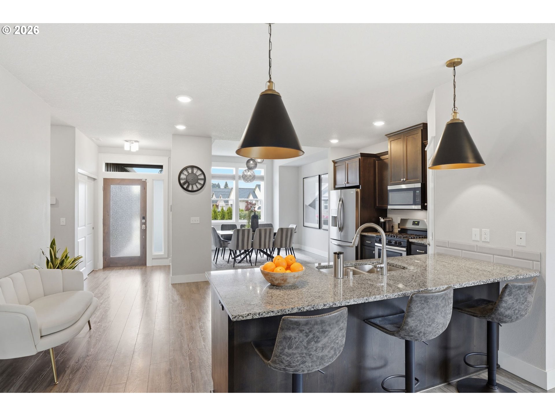 OPEN HOUSE SAT 4/25 & SUN 4/26 1-3!Stunning single level home tucked away in a private, gated community! This thoughtfully designed home offers an open and inviting great room featuring a cozy gas fireplace and seamless flow into the kitchen, complete with granite countertops, a spacious island, and both casual and formal dining areas. Perfect for everyday living and entertaining. Custom Hunter Douglas window coverings and durable easy to care for laminate flooring run throughout.Step outside to a fully fenced, professionally landscaped backyard with front and back sprinklers, offering a low maintenance outdoor space ideal for relaxing and entertaining. This home is truly move-in ready! Located just steps from Vancouver Lake with private lake access. You’ll love having access to the private community green space, nearby trails and water activities offering an elevated lifestyle in a truly desirable setting! Close to downtown waterfront restaurants and shopping! Schedule your tour today with your favorite realtor!
