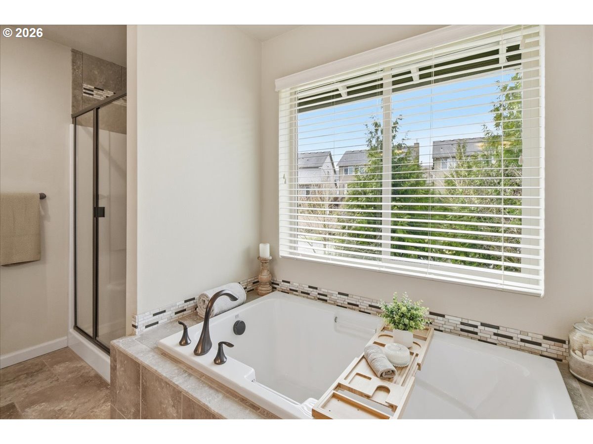 Turn-key, like-new home in the desirable Hills at Round Lake. Soaring and bright vaulted entry meeting gorgeous hardwood floors entering a gourmet kitchen with huge granite island, newer stainless appliances, a pantry and ample storage. The cozy open living room features a mantled gas fireplace. Slider leading to fully fenced backyard with sprinklers and a cute patio creating a super low-maintenance landscape. Spacious Primary Suite with a sitting area, walk-in closet, double sinks, nice walk-in shower, and big soaking tub. High-efficiency 95% gas heat and A/C, tankless hot water and an oversized upstairs laundry room. (Energy bills here are low.) Multiple high-speed internet options. Location, location with walking trails, blocks to Woodburn Elementary top-rated Camas Schools. Lacamas Lake and Downtown Camas become your new hangouts. This one is ready to love.