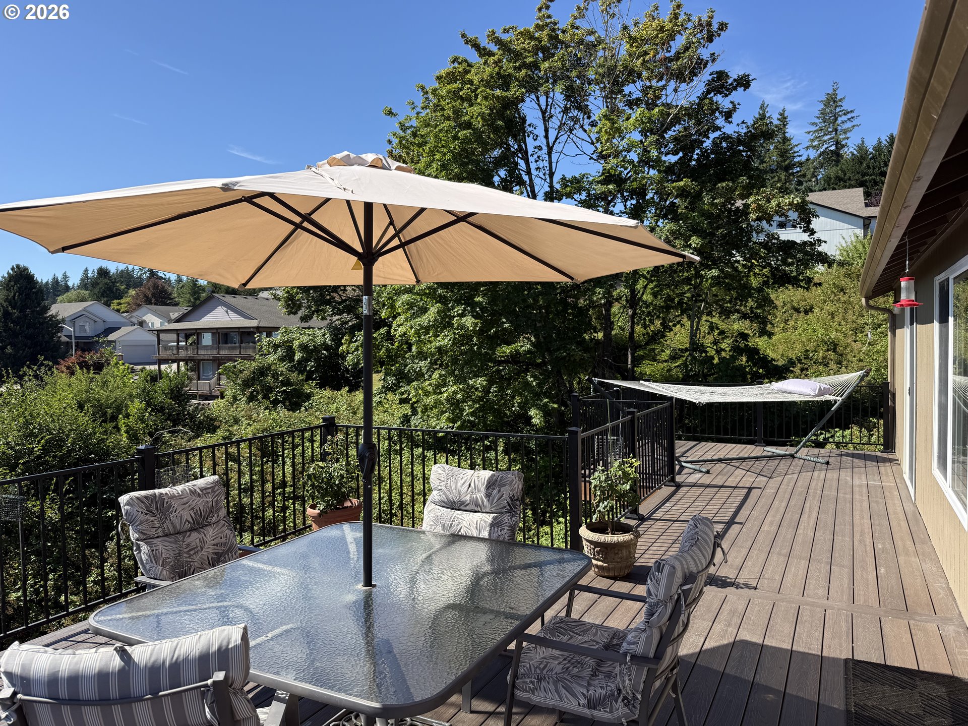 .49 acres, 5 bedrooms total, and 3 Full Bathrooms! Kitchen has an Island and Granite Countertops, Pendant Lighting, and Stainless Steel Appliances. High Ceilings, Spacious Lot, Two Spacious Decks, Sauna. Lots of possibilities on the lower level, which has Two Bedrooms, a full Bathroom, and is plumbed for a future Sink. New Carpeting Downstairs. Extra Parking Space next to the Garage. Fenced Yard. Seasonal Creek. Gorgeous Westerly Views!