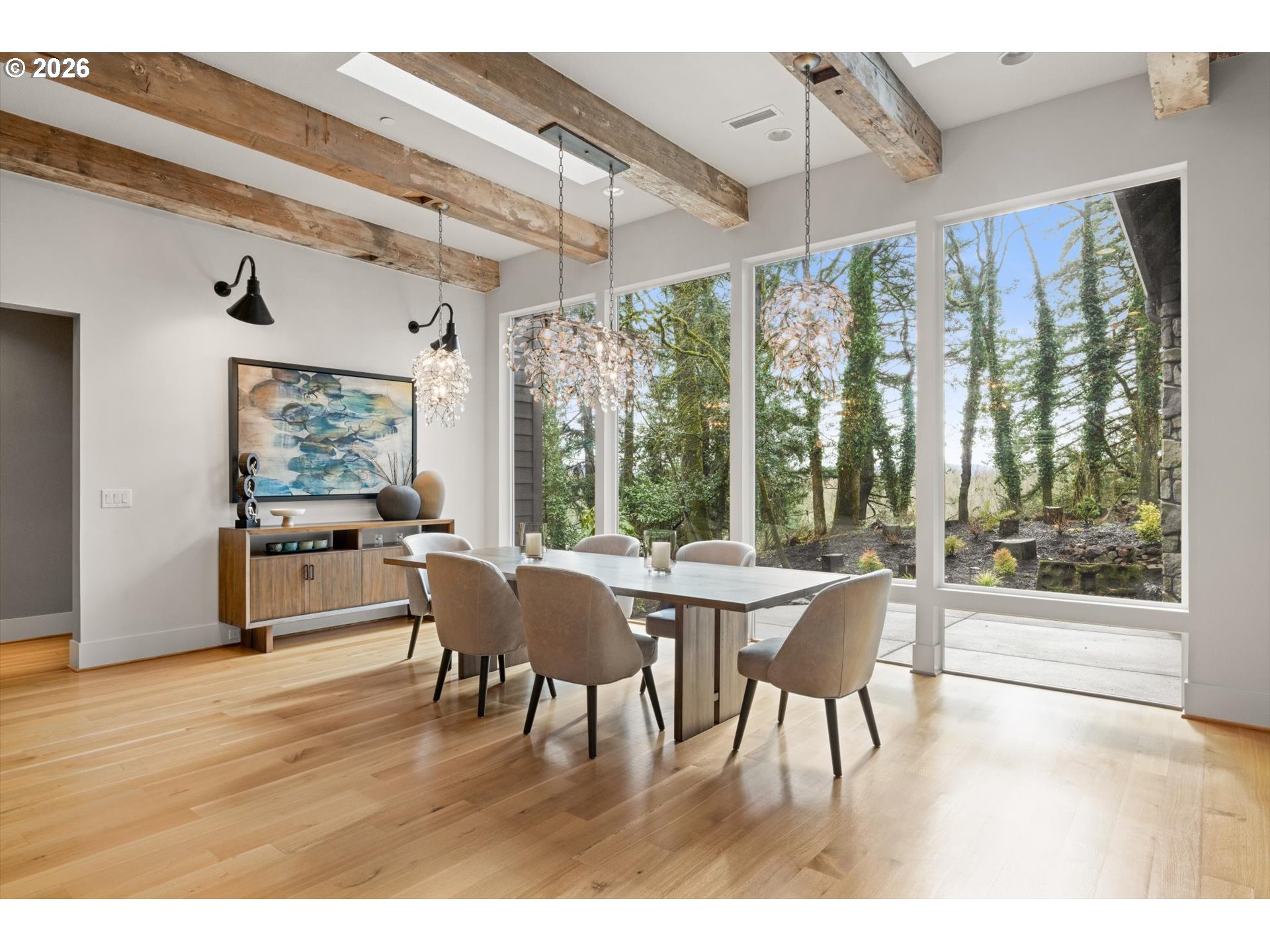 Discover timeless craftsmanship and luxurious living in this impressive 5-bedroom, 4-bath residence—5,461 sq ft on 2.06 private acres in sought-after Camas. Minutes from downtown, scenic trails, and the Steigerwald Wildlife Refuge, the home blends peaceful seclusion with everyday convenience.Interior highlights include vaulted ceilings with exposed beams, rich hardwood floors, and floor-to-ceiling windows that fill the home with light. The gourmet kitchen features designer appliances, marble counters, a walk-in pantry, and refined finishes. Three gas fireplaces provide warmth and ambiance, while the main-level primary suite offers comfort and privacy.Practical and thoughtful touches include a central vacuum system, generous bedroom sizes, and versatile living areas ideal for entertaining or multigenerational living. Outdoors, enjoy naturally landscaped grounds with a gas fire pit, a large driveway with ample parking, and a heated detached workshop with a half bath—perfect for hobbies or a home business.Situated in the top-rated Camas School District, this exceptional property combines style, space, and comfort in one of Southwest Washington’s most desirable communities.
