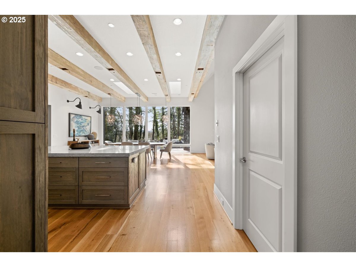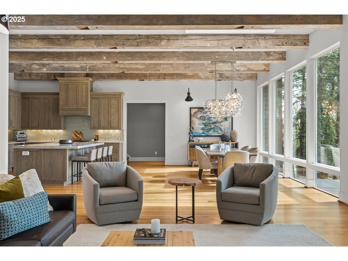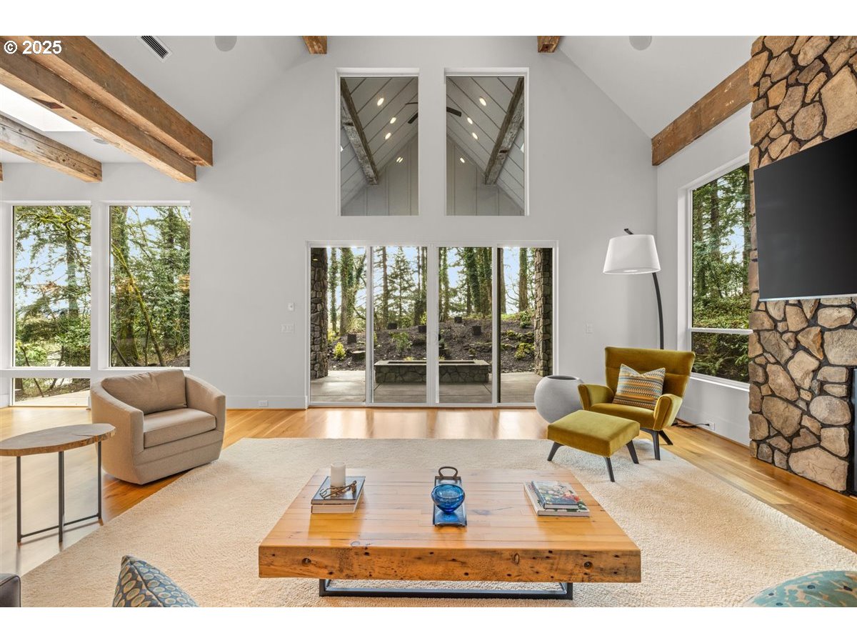 Experience timeless craftsmanship and luxury living in this stunning 5-bedroom, 4-bath, 5,461 sq ft home nestled on 2.06 private acres in highly desirable Camas. Located just minutes from downtown, scenic walking trails, and the Steigerwald Wildlife Refuge, this exceptional property offers the perfect balance of seclusion and convenience.Inside, you’ll find soaring vaulted ceilings with exposed beams, rich hardwood floors, and floor-to-ceiling windows that flood the space with natural light. The gourmet kitchen is a chef’s dream, featuring designer appliances, marble countertops, a walk-in pantry, and elegant finishes throughout. Three gas fireplaces add warmth and charm, while the main-level primary suite provides luxury and ease of living.Additional highlights include a central vacuum system, spacious bedrooms, and thoughtfully designed living spaces ideal for entertaining or multi-generational living.Step outside to a naturally landscaped setting with a gas fire pit, expansive driveway with room for multiple vehicles, and a heated detached workshop with its own half bath—perfect for hobbies or home business needs.Located in the top-ranked Camas School District, this extraordinary property offers style, space, and comfort in one of Southwest Washington’s most coveted communities.