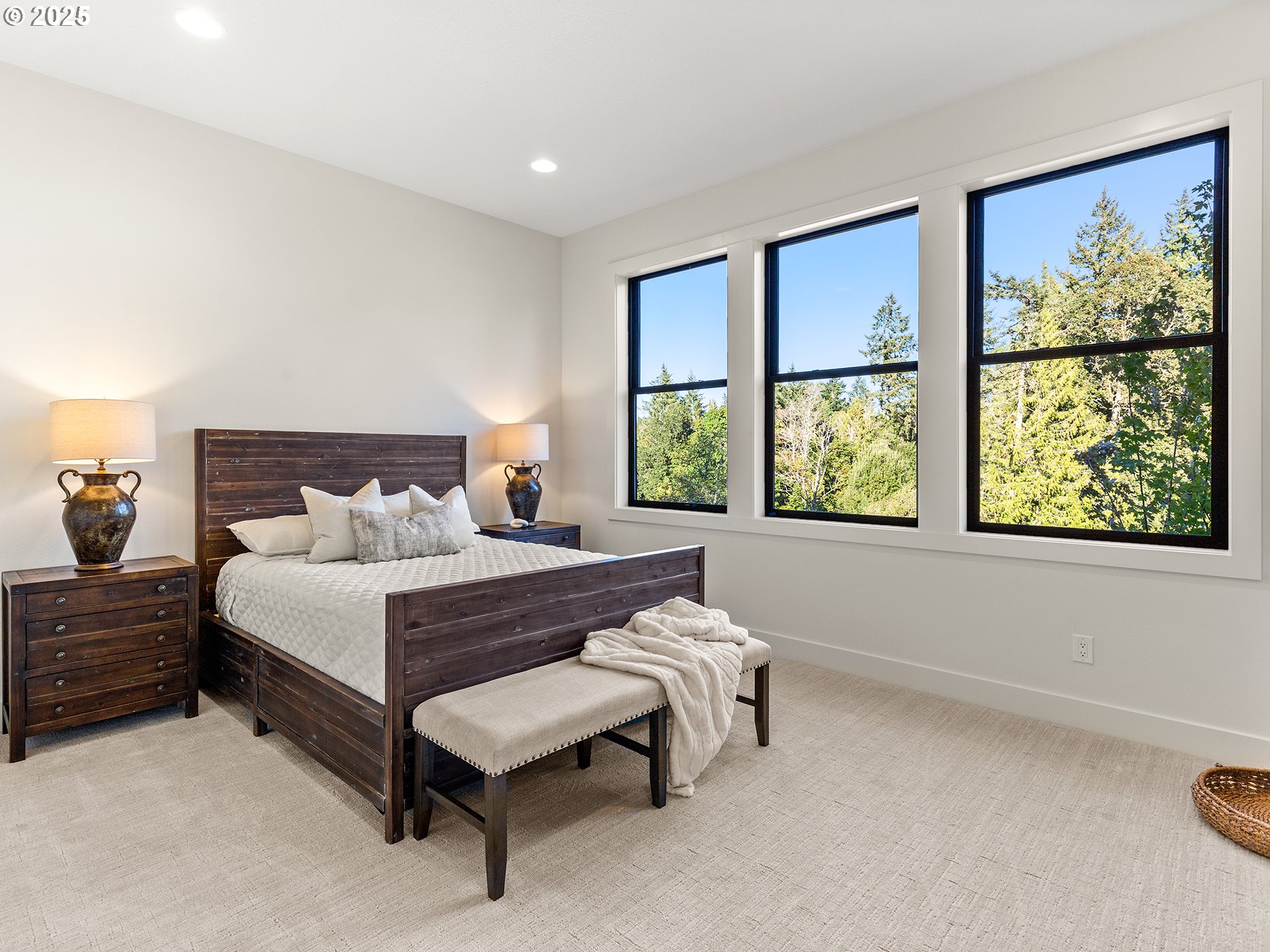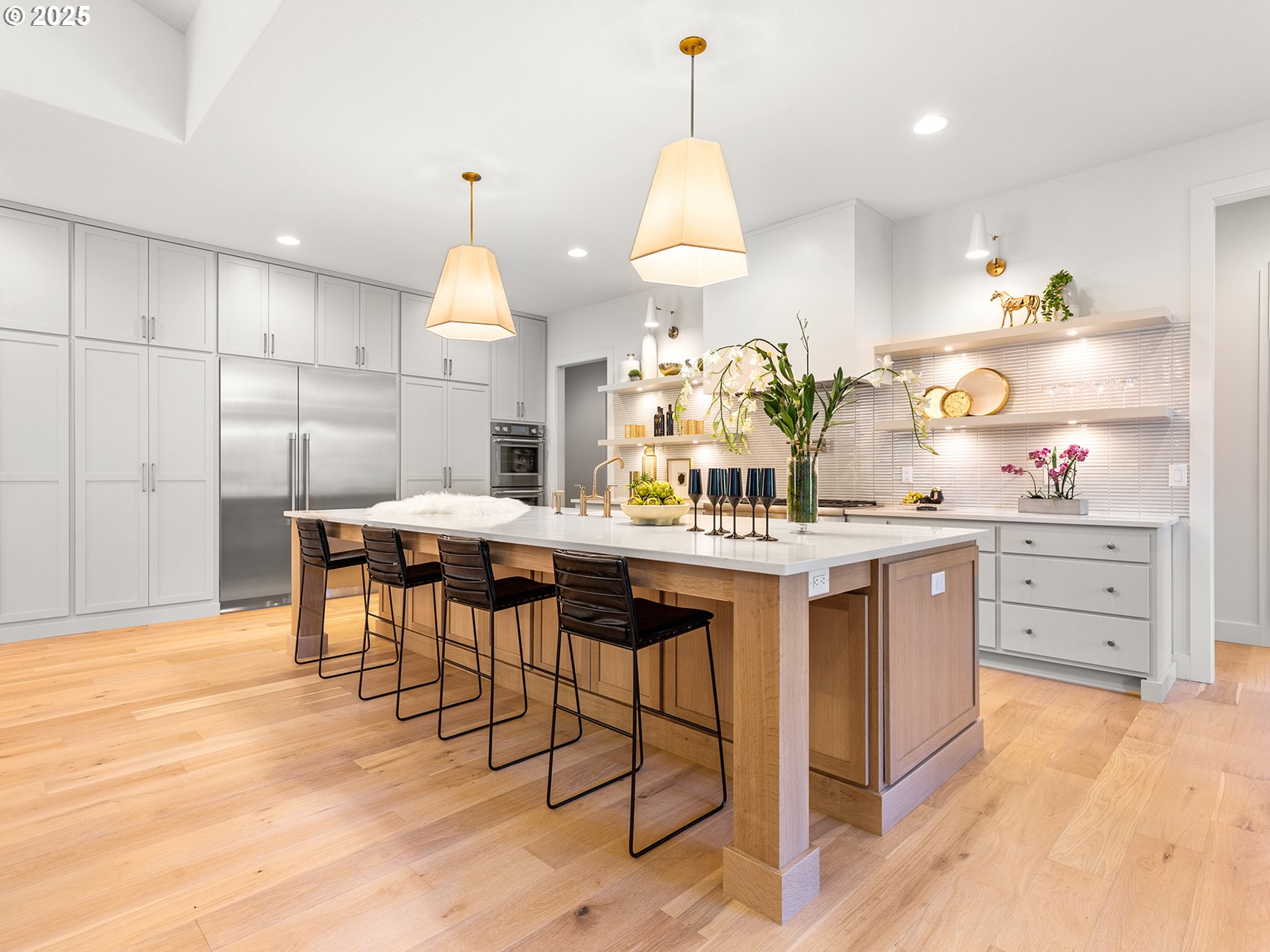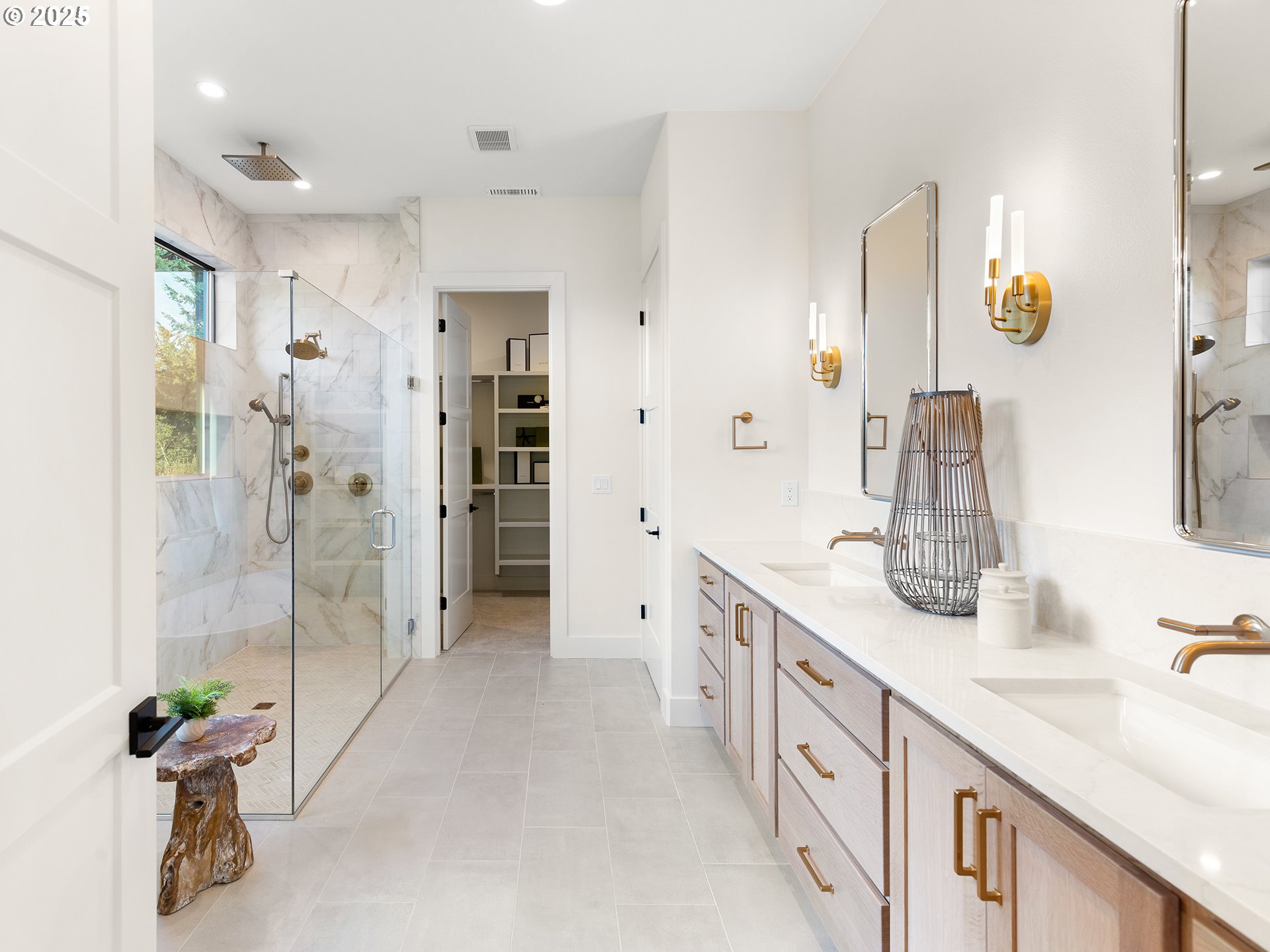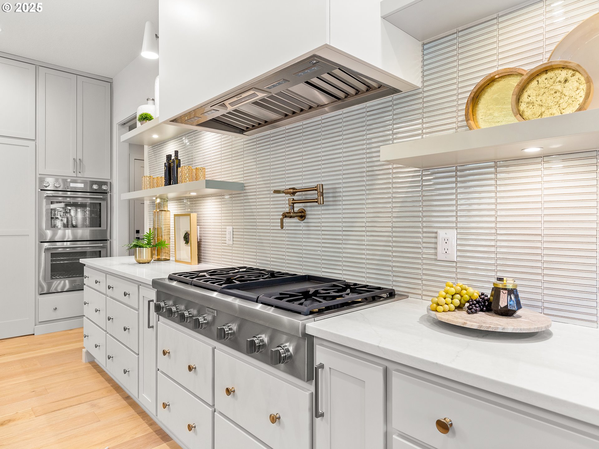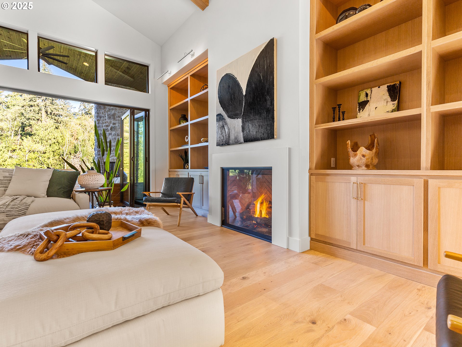 Welcome to this stunning, modern French country home in one of Ridgefield's former Parade of Homes neighborhoods. This one-level, three-bedroom home feels brand new and was originally built by a local custom builder, showcasing a level of quality and detail rarely seen. Experience seamless indoor-outdoor living with a vaulted great room that opens completely to a covered patio via accordion doors. The great room's cozy fireplace and the patio's own fireplace and built-in BBQ make it the perfect space for entertaining or relaxing year-round. Inside, the home is designed for both function and beauty. A dedicated office features impressive 12-foot ceilings, and a separate bonus room offers flexible space for your needs. The kitchen is a chef's dream with extensive storage, a large hidden walk-in pantry, and a convenient wet bar with built-in bottle and wine storage. Throughout the home, you'll find elegant designer touches, including chic lighting and plumbing fixtures. The property's low-maintenance landscaping is designed to complement its natural surroundings, offering a serene canyon view. This is a home that truly blends luxury, comfort, and sophisticated style.