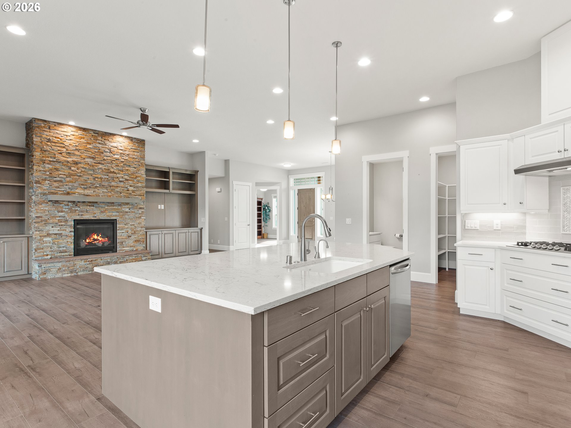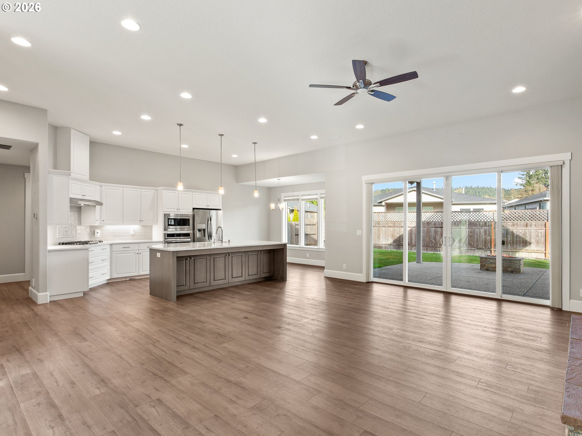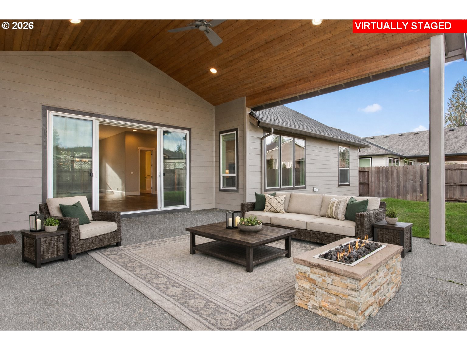 ** OPEN HOUSE SAT 1/3 FROM 1-4PM AND SUN 1/4 FROM 12-3PM ** Built in 2020, this beautifully maintained one-level home offers 4 bedrooms and 2.5 bathrooms with an open floor plan designed for modern living. High ceilings enhance the spacious feel, while the kitchen features quartz countertops, stainless steel appliances, and seamless flow into the main living area. The primary suite is a standout with a spa-inspired bathroom, complete with a roll-in shower and soaking tub. A Jack-and-Jill bathroom connects two of the secondary bedrooms, adding convenience and functionality. Enjoy year-round entertaining on the covered patio with a cedar-lined ceiling, gas fire pit, and completely fenced yard. The three-car garage and thoughtful design details make this home both functional and comfortable. Don't miss the 3D virtual tour to walk through this home online now!