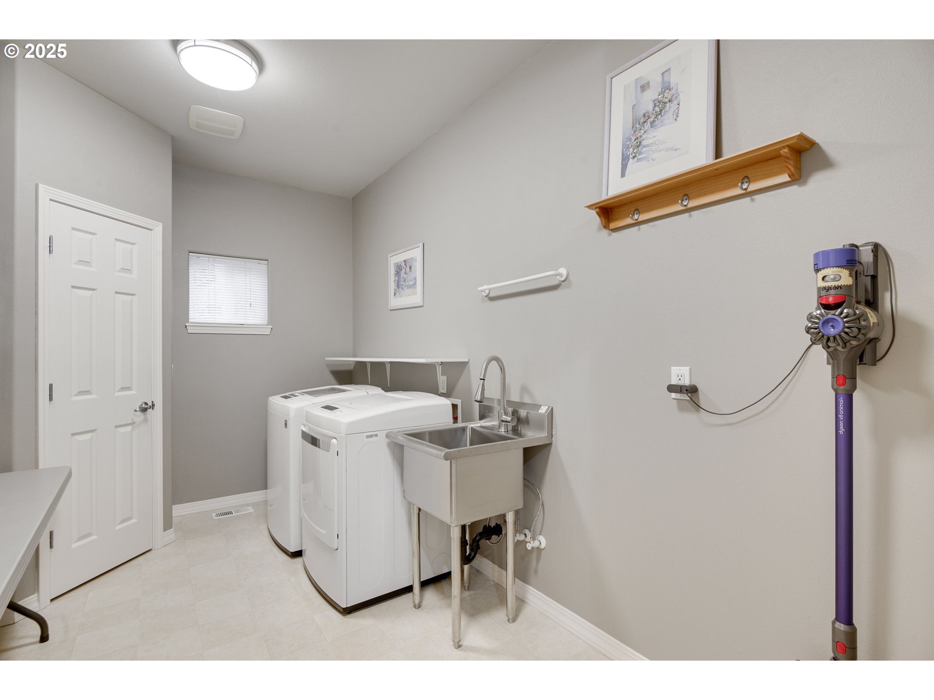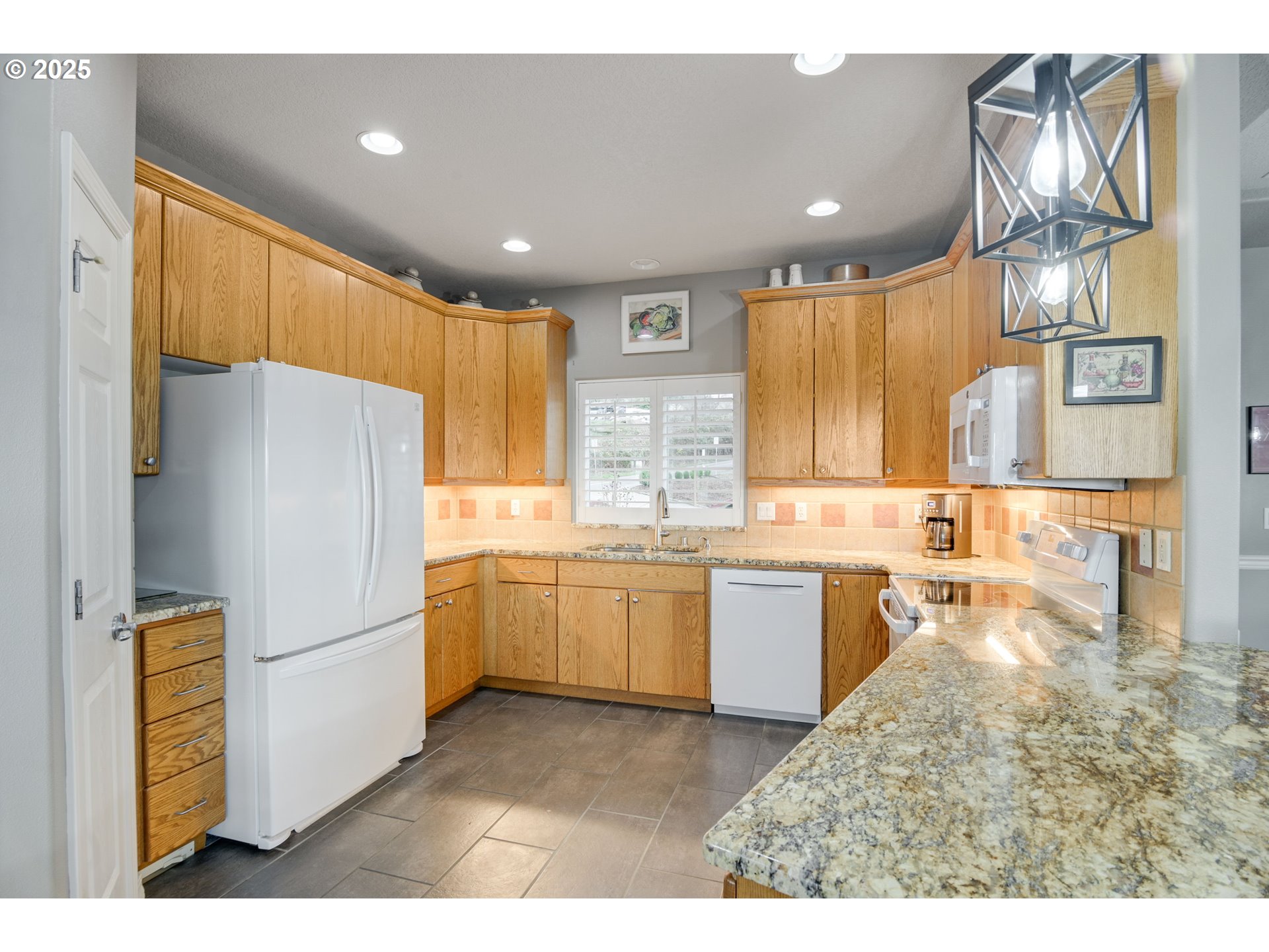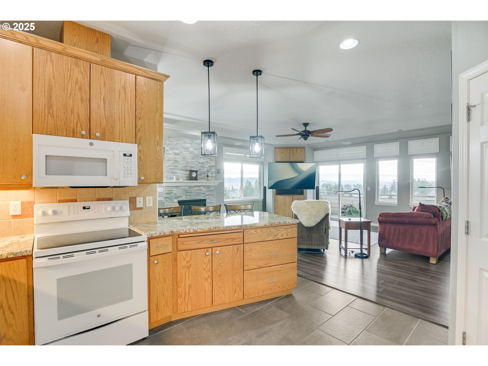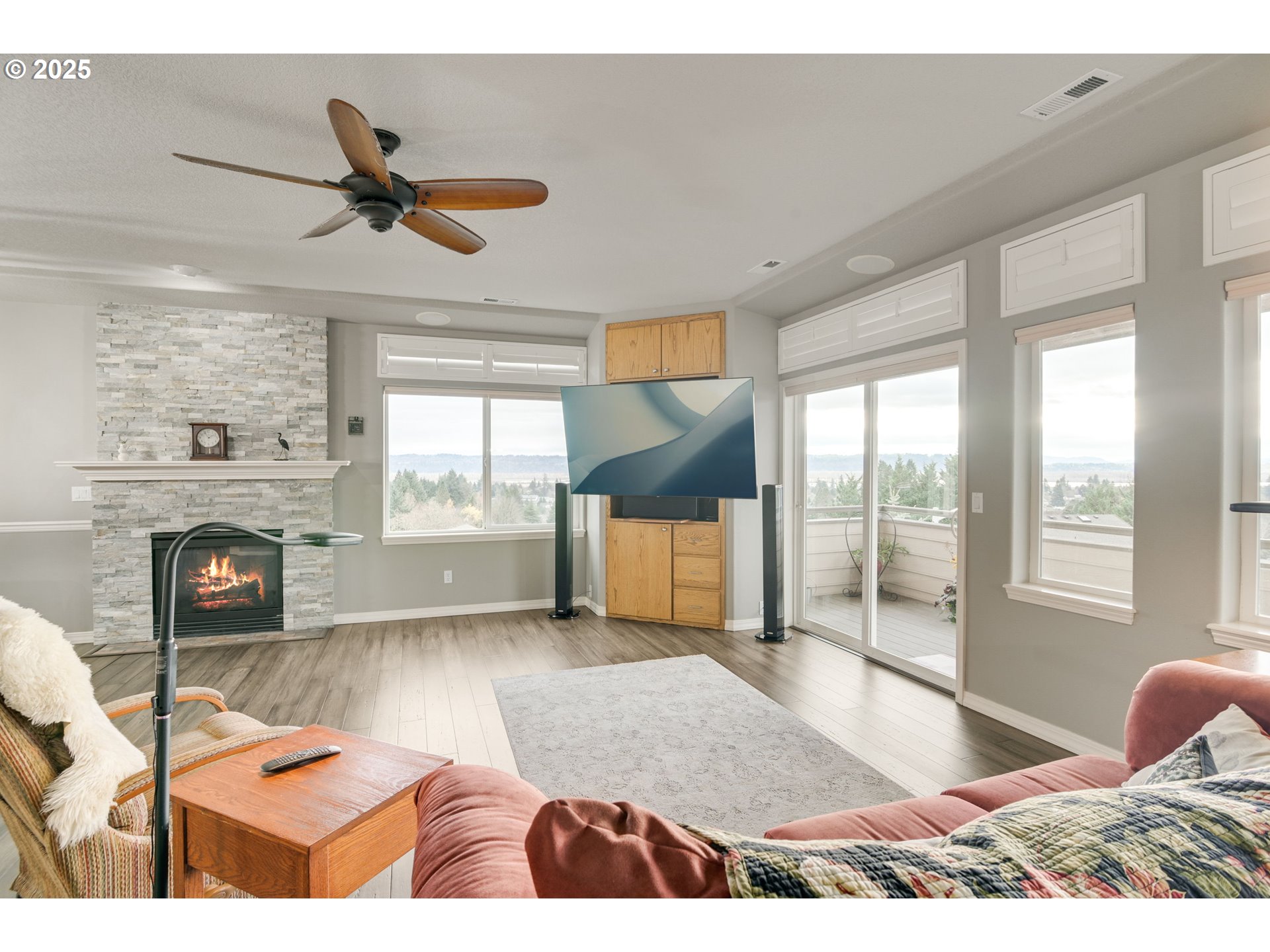 Enjoy breathtaking views of the Columbia River, valley, and Portland from this beautifully designed custom home featuring multiple outdoor spaces, including two view decks on the main level, a welcoming front patio, a back deck, and a private backyard patio with an extended natural rock seating area. Inside, the main level showcases newer mocha bamboo flooring and a stylish kitchen with granite countertops, tile flooring, an eating bar, and included refrigerator. The expansive great-room is complete with a spacious dining area and offers a built-in movie sound system with included TV and stereo system, plantation shutters, and a slider to the view deck. The primary suite is truly a retreat, featuring French doors, access to a private view deck, and an updated spa-like bathroom with dual sinks, a tiled walk-in shower, and a walk-in closet. A second full bedroom and an updated full bathroom round out the main level. The lower level adds fantastic flexibility with two additional bedrooms, a full bathroom with sauna, a laundry room with storage, and a dedicated workshop. The oversized garage provides incredible functionality, offering a front storage area (perfect for a golf cart), ceiling-mounted storage racks, a central vacuum system, a 1-year-old water heater, and a 2-year-old high-efficiency furnace and A/C. Don't miss the large parking pad perfect for a boat, RV or extra cars. Located on a large corner lot in a desirable neighborhood close to shopping and restaurants, this home is a MUST SEE. Schedule your tour today!