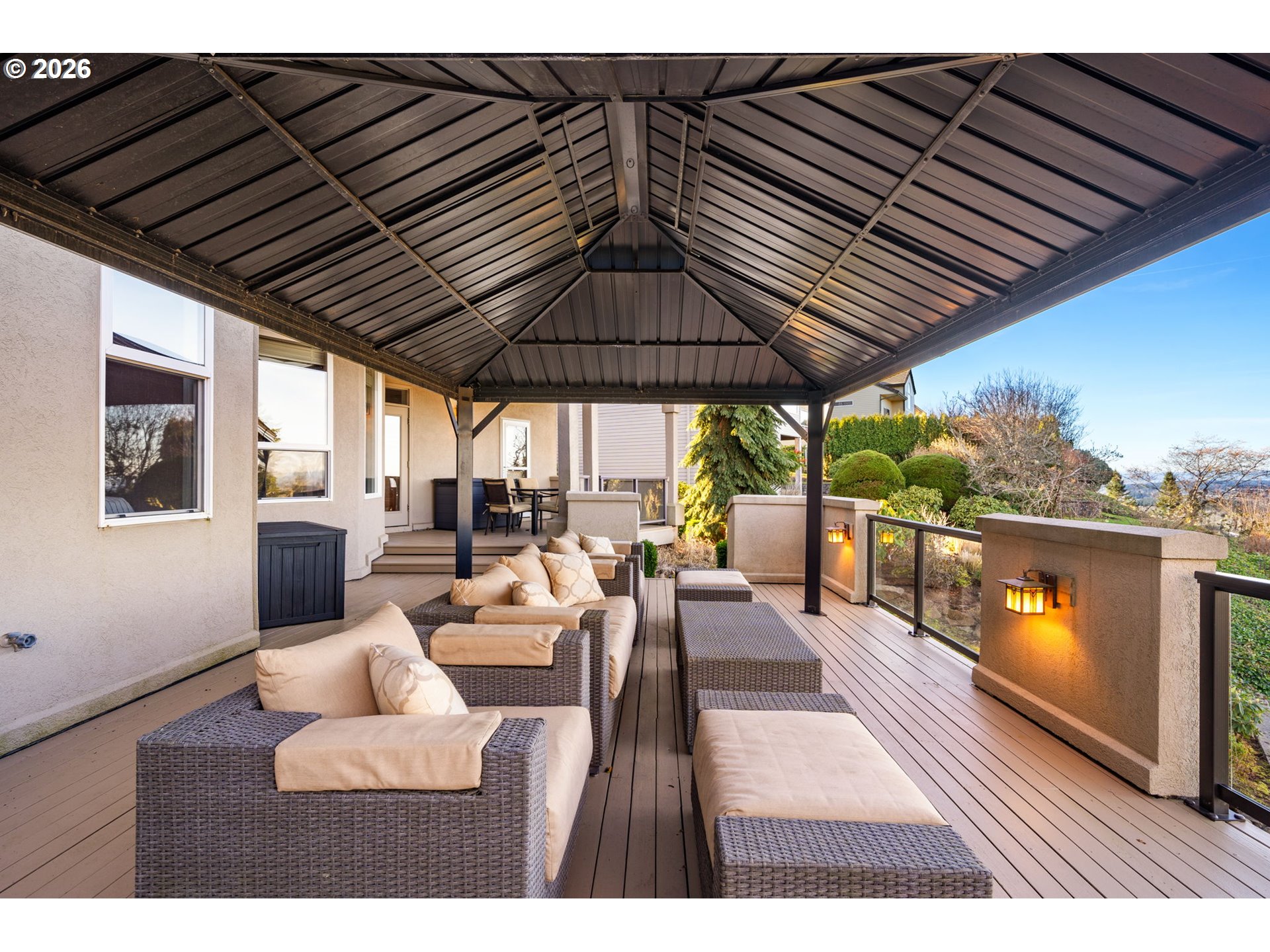 (503) 893-8874This one has it all - views, versatility, and major upgrades. Enjoy a main-floor primary suite with spa-like bath featuring heated tile floors, gas fireplace, jetted tub, and dual sinks, all overlooking vast mountain views. The updated kitchen shines with brand-new gourmet appliances, new vent-hood, and hardwood floors flowing through the kitchen, dining nook, and bar. Soaring 15’ ceilings, surround sound, gas fireplace and dimmable lighting elevate the living room, while a dream main-floor office with built-ins makes working from home effortless. Step outside to a huge covered back deck with gazebo seating, formal dining space, and gas hookups for endless entertaining.The lower level offers ideal multi-generational living potential, with two bedrooms, a Jack-and-Jillbath, additional bathroom, office/workout room with private sauna, and space ready for a secondlaundry. Energy-efficient heat pump on the main floor, separate lower-level furnace, full foundationwaterproofing, elevator-ready design, and a 3-car garage with WiFi control complete thisexceptional Camas home.