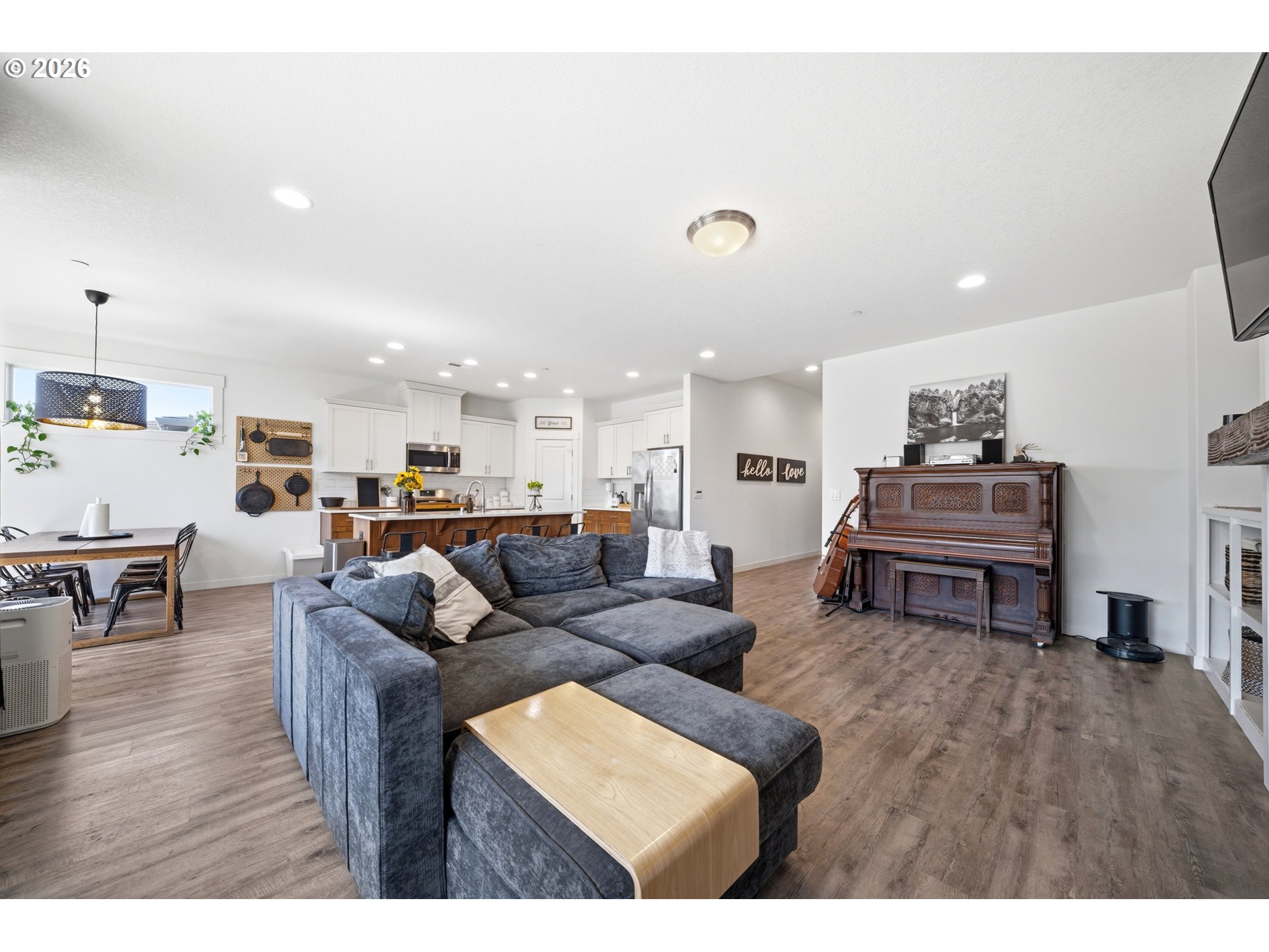 Welcome to the stunning single story modern farmhouse that you've been looking for. Coming in at 1,912 sqft, this 3-bedroom + den sanctuary features soaring 9ft and 10ft ceilings that bathe the open-concept living space in natural light. The chef’s kitchen is a farmhouse focal point, anchored by a massive quartz island, stainless steel gas appliances, and soft-close cabinetry throughout. Retreat to a primary suite that feels like a spa, featuring gorgeous black hex tile, dual sinks, and a deep soaking tub. Smart lighting throughout the home ensures the perfect ambiance at the touch of a button. Outside, you'll find a covered patio and a cozy yard that prepped and ready for your future hot tub, while the finished 2-car tandem garage offers extra space for a workshop or storage. The location can't be beat being located within a mile and a half of dining, shopping, and a park that includes a skate park.