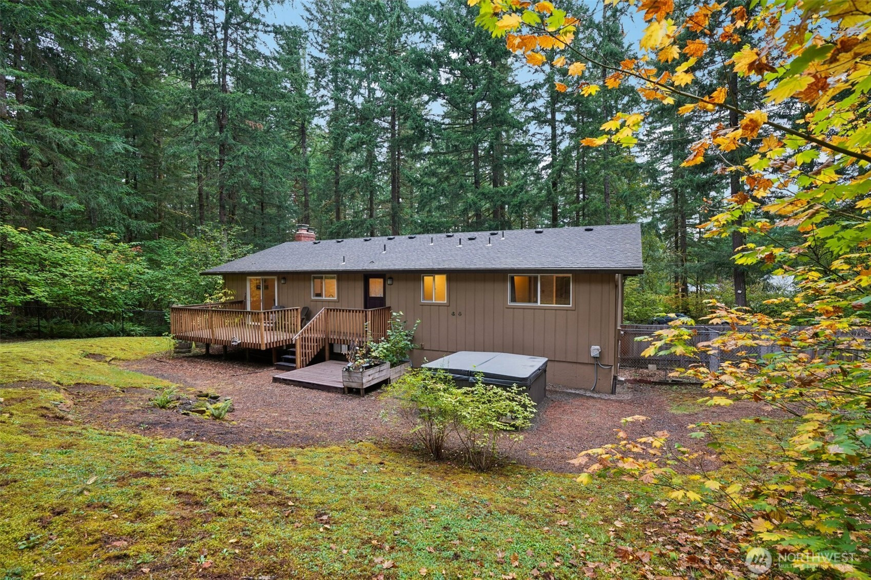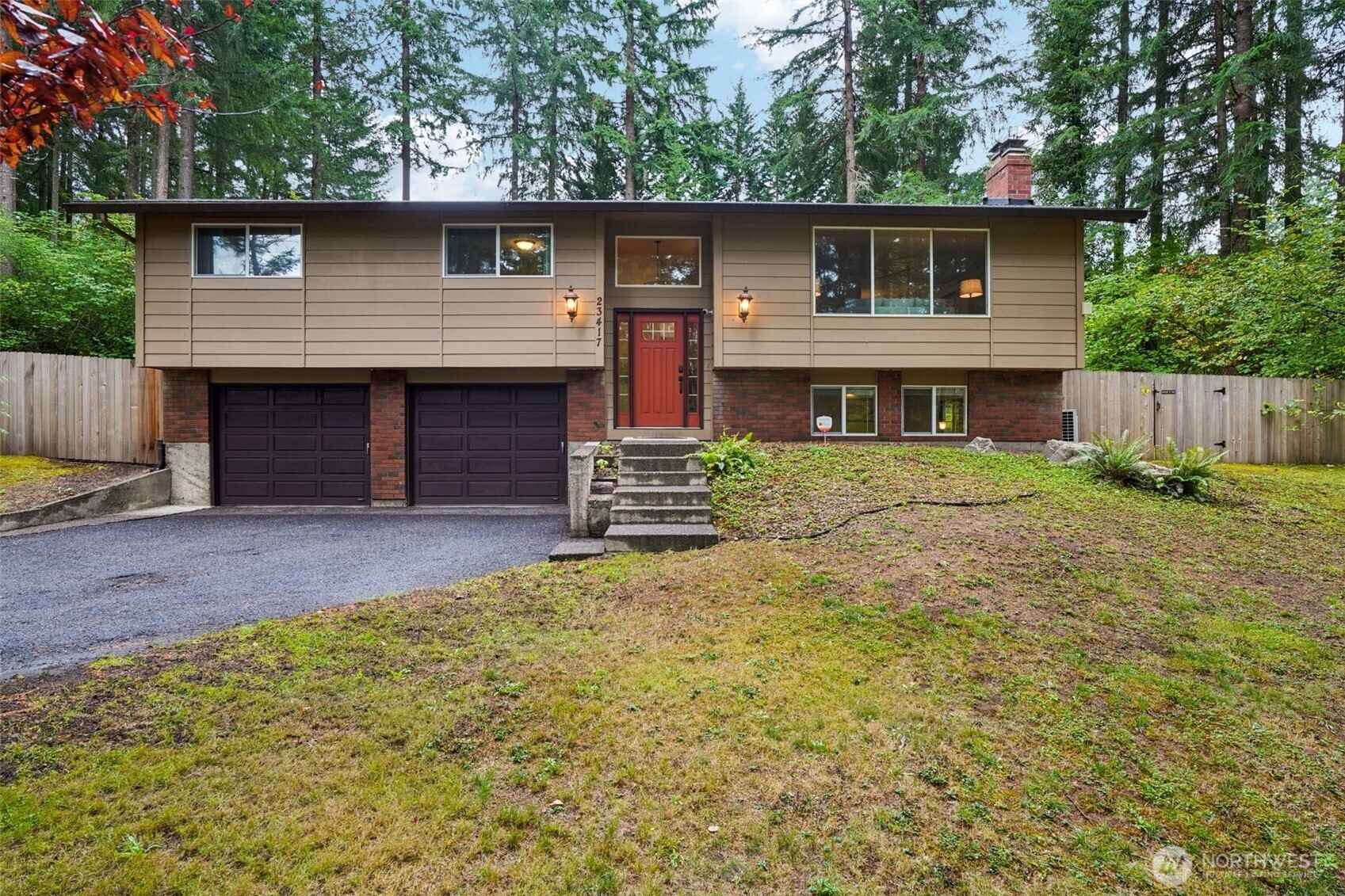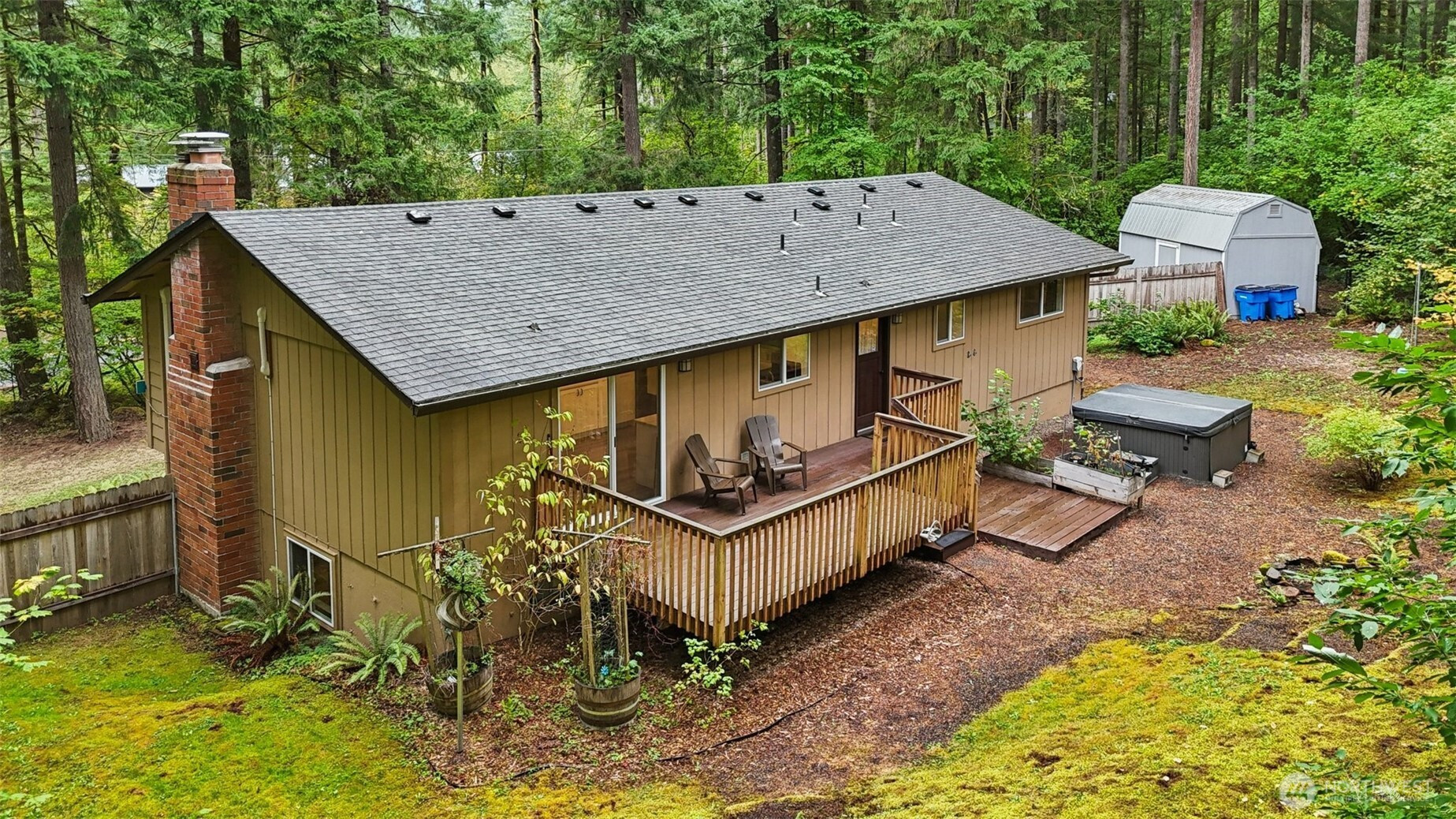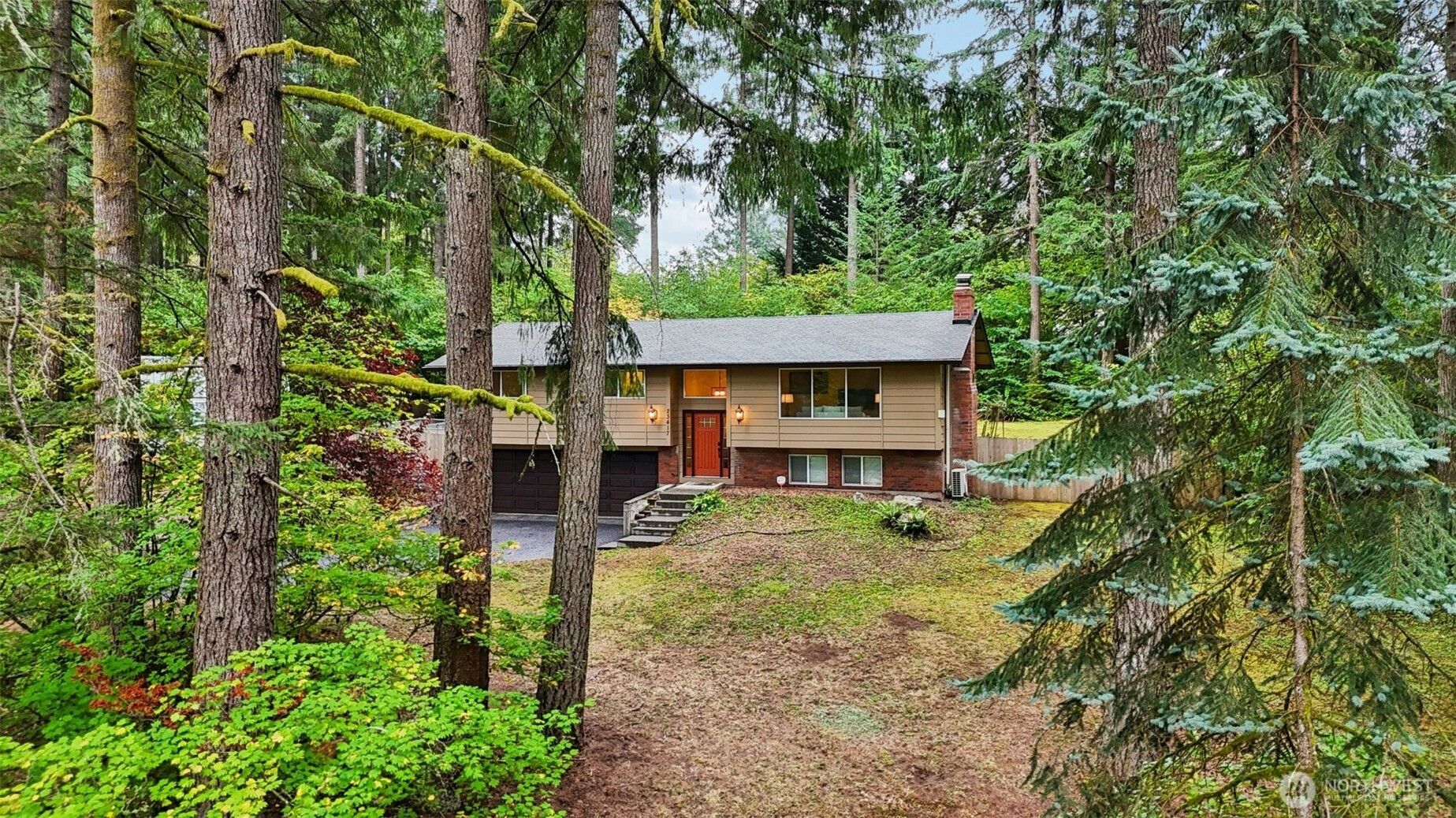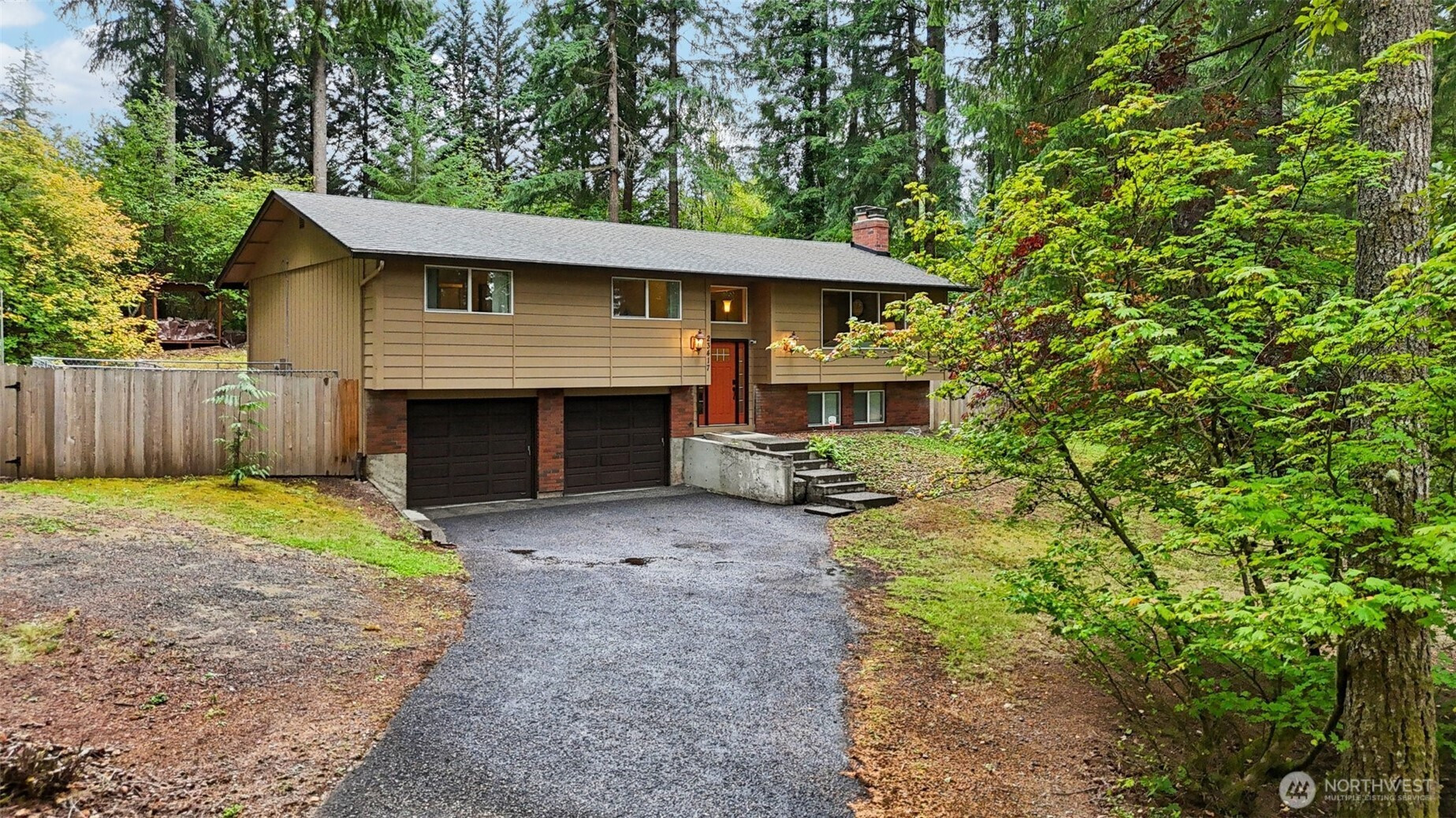 Come home to your private retreat minutes from town! This 3-bdrm, 3-bath split-level home nestled on over an acre of serene wooded beauty. Step inside to a updated kitchen w/ SS appl, Great room living & spacious dining. New windows fill the home w/ natural light & picturesque views. The lower level offers its own bathroom, F/P & Bar area—perfect as guest space, or an entertainment retreat. Outdoors, relax on the deck surrounded by nature, soak in the hot tub under the stars, or take advantage of the generous yard & trails w/ partially fenced yard & room for a shop. Added highlights are a Tuff Shed for extra storage & space for RV parking. Enjoy the perfect balance of tranquility & convenience—peaceful living just minutes from town.