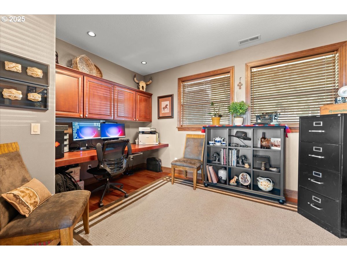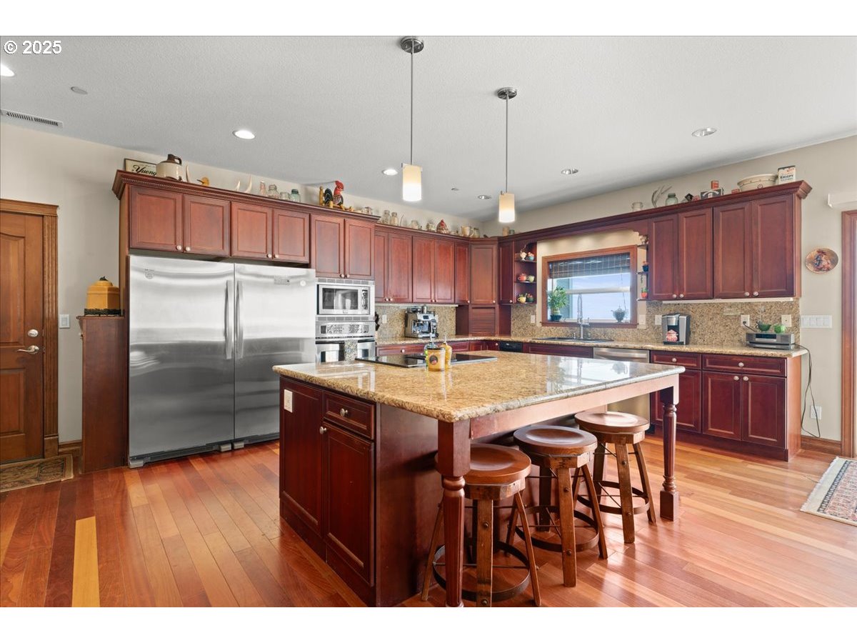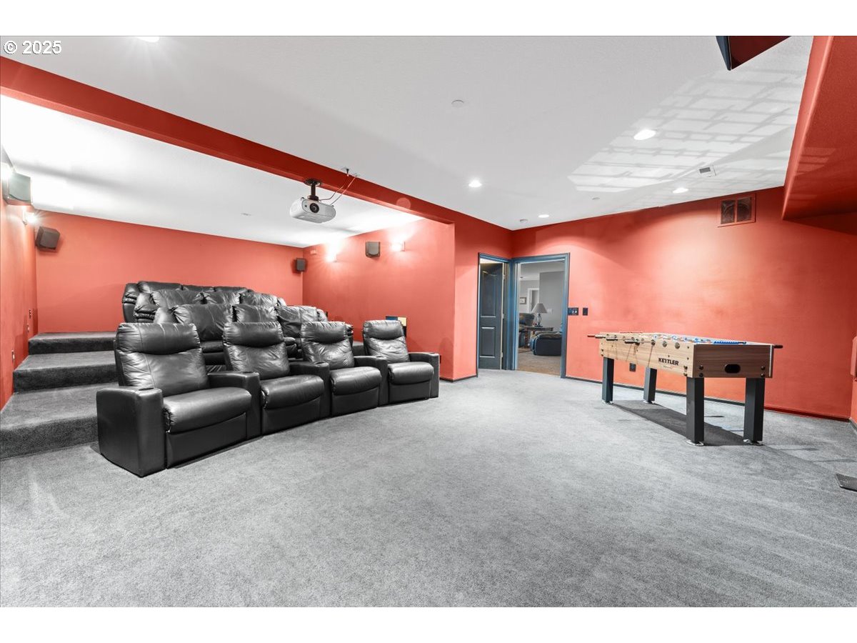 (503) 893-8874Perched on five private acres just 9miles from downtown Battleground, this remarkable hilltop estate is fondly known by the sellers as their “house in the clouds.” On foggy mornings, the home feels as though it is floating above the mist, while on clear days, the panoramic valley views stretch for miles. The foyer opens into a spacious great room that incorporates the formal living area, anchored by a propane fireplace and surrounded by large windows that flood the home with natural light. Just off the dining room, French doors lead to a large office offering a flexible space for work or study. The chef’s kitchen features an oversized cooktop island, stainless steel appliances, an oversized refrigerator/freezer, and abundant counter space, making it ideal for both everyday living and entertaining. The primary suite is a private retreat with its own propane fireplace, a large walk-in closet, and a spa-inspired en-suite bathroom complete with heated floors and a custom shower. Three additional bedrooms and two additional full baths provide comfort for family and guests. The lower level includes a kitchenette and laundry, offering potential for multi-generational living or an ADU. It also features a dedicated craft/sewing room and a private home theater with a big screen, seating for 13, a projector, and a sound system—all included in the sale. Finishing touches include extensive hardwood floors, new carpeting, and fresh exterior paint. The garage offers approximately 1,800 square feet of space, accommodating six cars or four plus an RV, with ample room for storage and hobbies. This one-of-a-kind property combines expansive views, versatile living spaces, and refined details to create a unique opportunity for Northwest living.