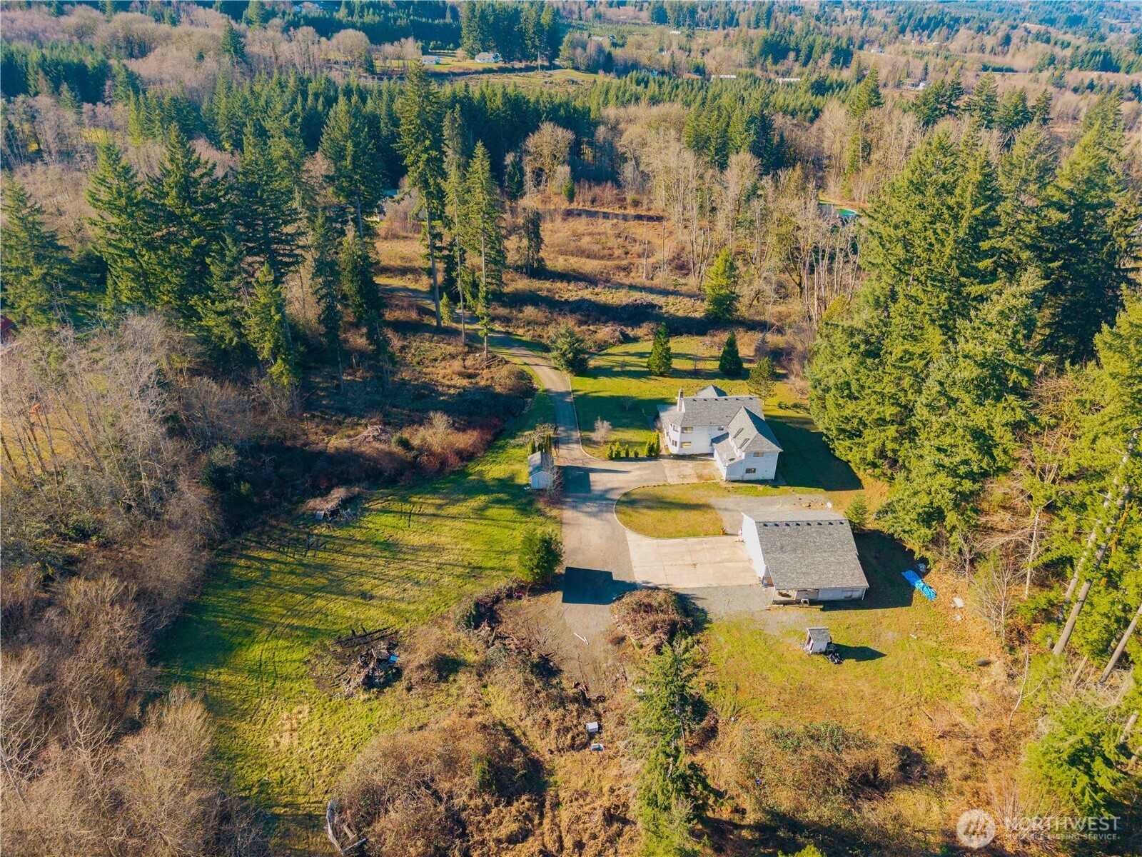Beautifully situated on 5.28 private acres, this 4-bedroom, 3-bath home offers the perfect blend of space and serenity. The flat, usable land is dotted with mature trees and provides a peaceful, private setting. Enjoy outdoor living from the covered wrap-around porch, ideal for relaxing and taking in the surroundings. Inside, the living room features a cozy wood-burning stove, while built-ins add both charm and functionality. A bonus/flex space upstairs is perfect for a craft room, home office, or additional living area. The property also includes a 2-bay shop and the convenience of two hot water heaters. A rare opportunity for acreage, privacy, and versatility.