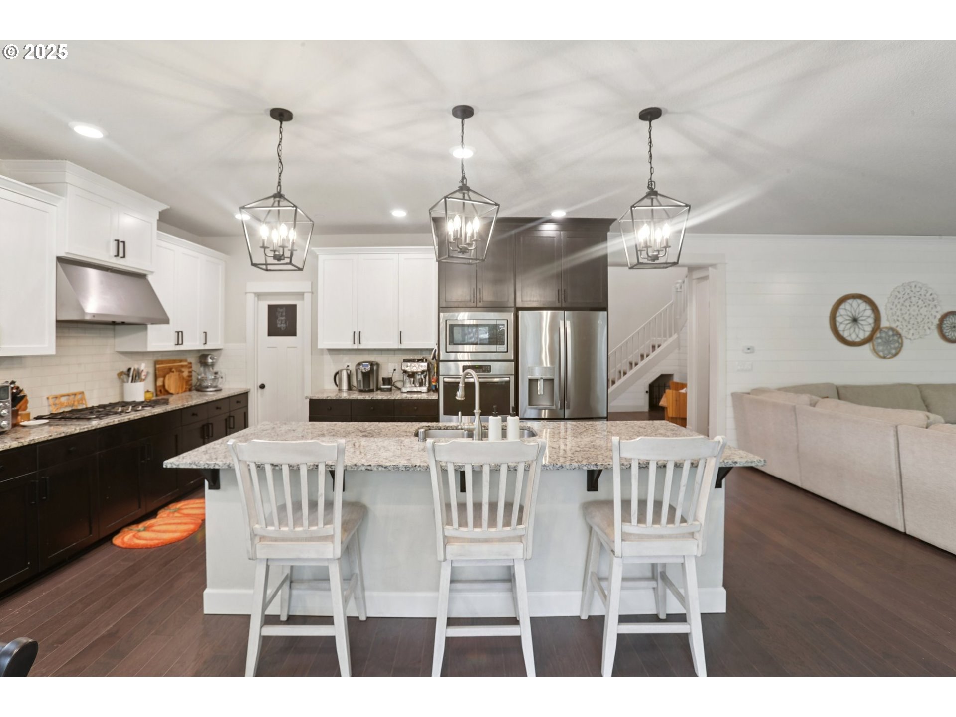 Experience refined living in this expansive 3,000+ sq ft custom Camas retreat, where every detail is crafted for comfort, beauty, and connection. Sun-filled rooms and abundant windows create a bright, uplifting atmosphere. Living spaces flow effortlessly, anchored by elegant built-ins and a cozy gas fireplace.The chef’s kitchen, with custom millwork, a generous island, and walk-in pantry, invites gatherings. Upstairs, a large bonus loft and office area offer flexible space for work, play, or retreat. The serene primary suite features a spa-like bath and a spacious walk-in closet.The fully self-sufficient next-gen suite provides true independence with its own entrance, kitchenette, laundry, full bath, and private side yard—yet can seamlessly rejoin the main home, if desired.Out back, evenings stretch under bistro lights across multiple paver patios designed for dining, relaxing, and entertaining. Located in coveted Camas schools and minutes to shopping, food, and PDX.