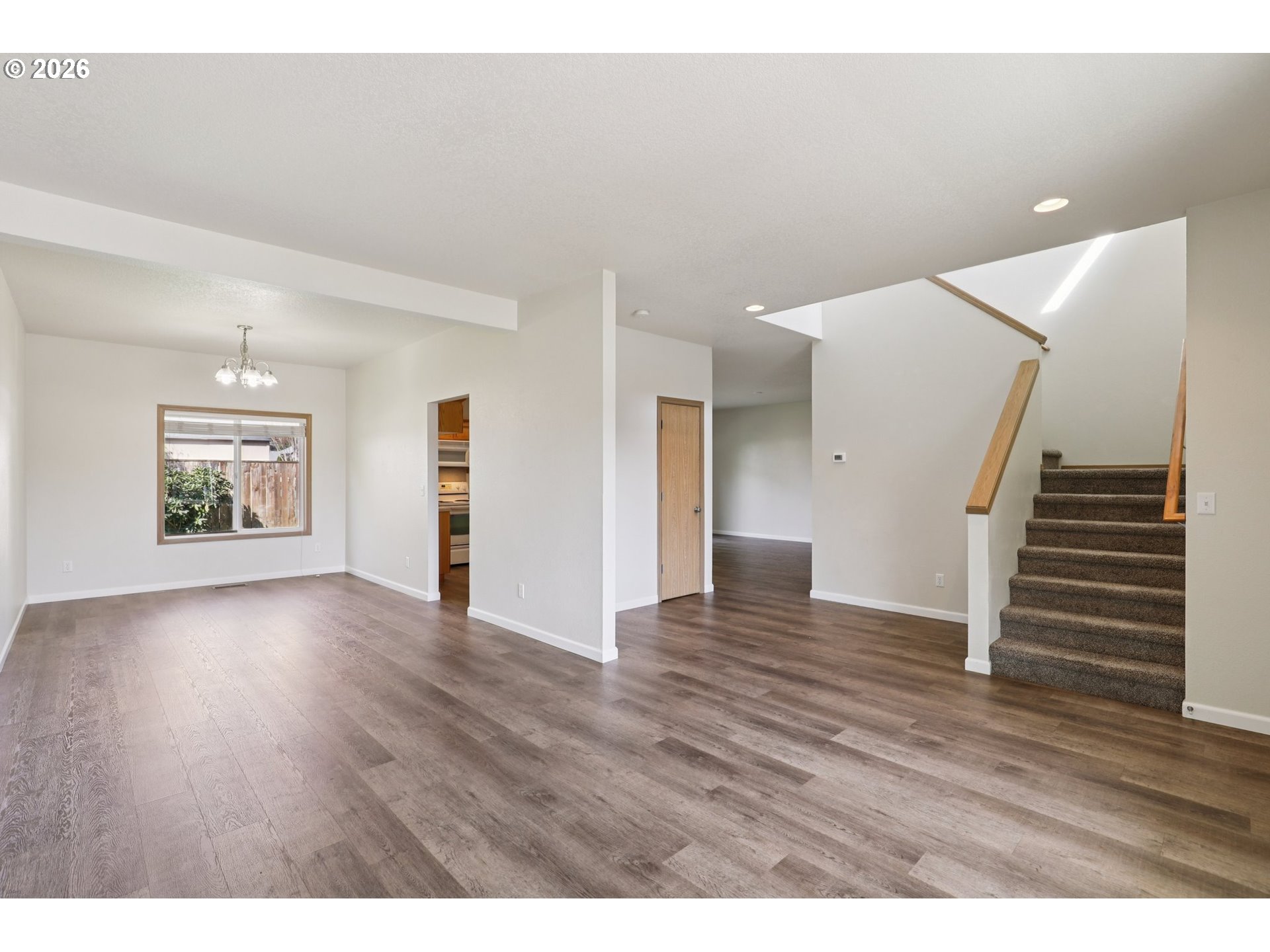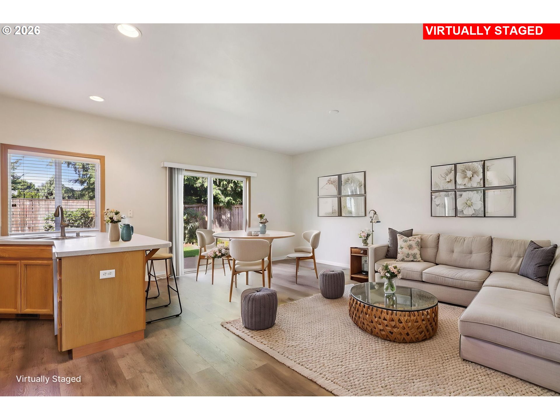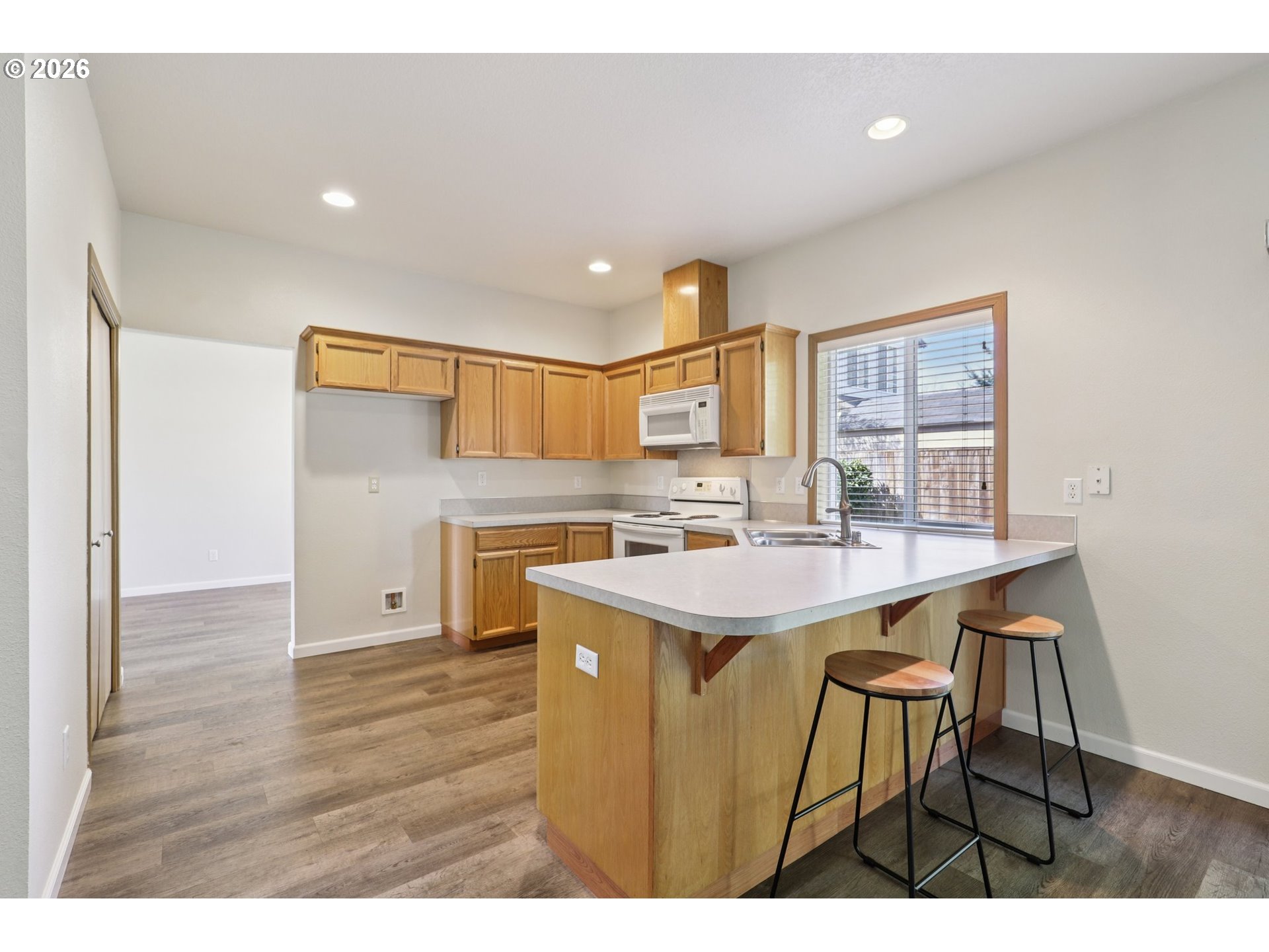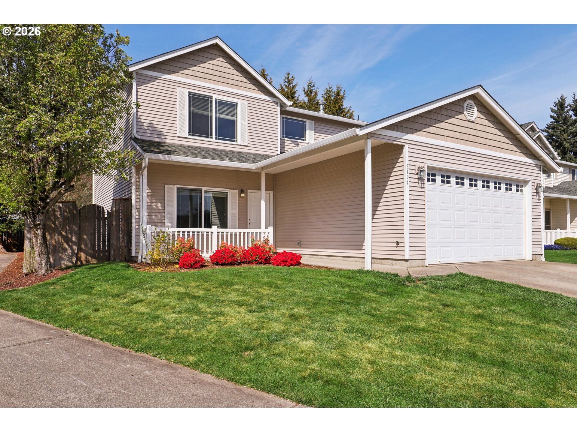 Welcoming covered front porch offers a comfortable space to relax outdoors. Inside, the formal living room seamlessly flows into the formal dining room, which also provides convenient access to the kitchen. The family room offers a spacious gathering area and sliding door access to the patio and backyard. The kitchen is well-appointed with stainless built-in dishwasher, built-in microwave, and electric range, complemented by abundant oak cabinetry including a lazy susan, pantry, breakfast bar, and recessed lighting. Upstairs, the primary en-suite includes a walk-in closet, dual sink vanity, soaking tub, and separate shower. Three additional bedrooms are also located on the upper level, one with a walk-in closet. Full bathroom upstairs features a single sink vanity and tub/shower combination. Main level includes a laundry room with utility sink, hanging rod, as well as a powder room with a pedestal sink. Interior highlights include a formal living and dining area, spacious family room, breakfast bar kitchen, new LVP flooring and carpet, and high ceilings throughout the main level. Outside, enjoy the back patio, fully landscaped grounds with front and back sprinklers, and a two-car garage. Mortgage savings may be available for buyers of this listing.