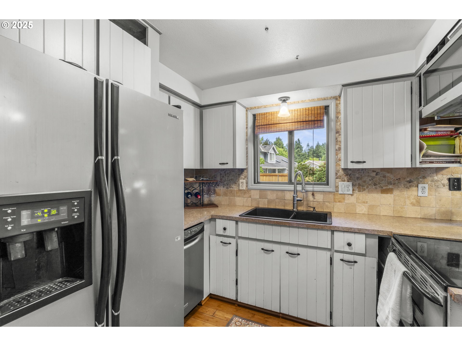 Dishwasher, Disposal, FreeStandingRange, FreeStandingRefrigerator, Microwave, StainlessSteelAppliance, Til