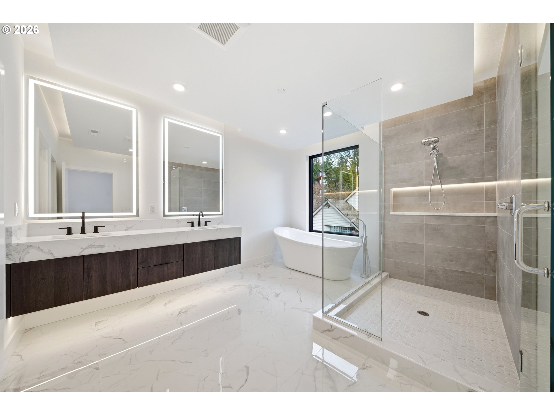Discover modern living at Green View Estates. This newly built 3 bedroom, 2.5 bath home features oversized windows and natural light. The main level offers 10 foot ceilings, solid core doors, and automated blackout curtains. The kitchen includes a 72 inch Frigidaire fridge and freezer, gas cooktop, and matching appliances. The primary suite features smart lighting and a smart toilet. Partial view of Washougal River from primary bedroom and bathroom. Massive garage that can be converted into gym/office. Charming backyard with covered patio. Two year builder warranty included. Conveniently located minutes away from the future Washougal waterfront, local coffee shops, and walking trails. Self guided tours available.