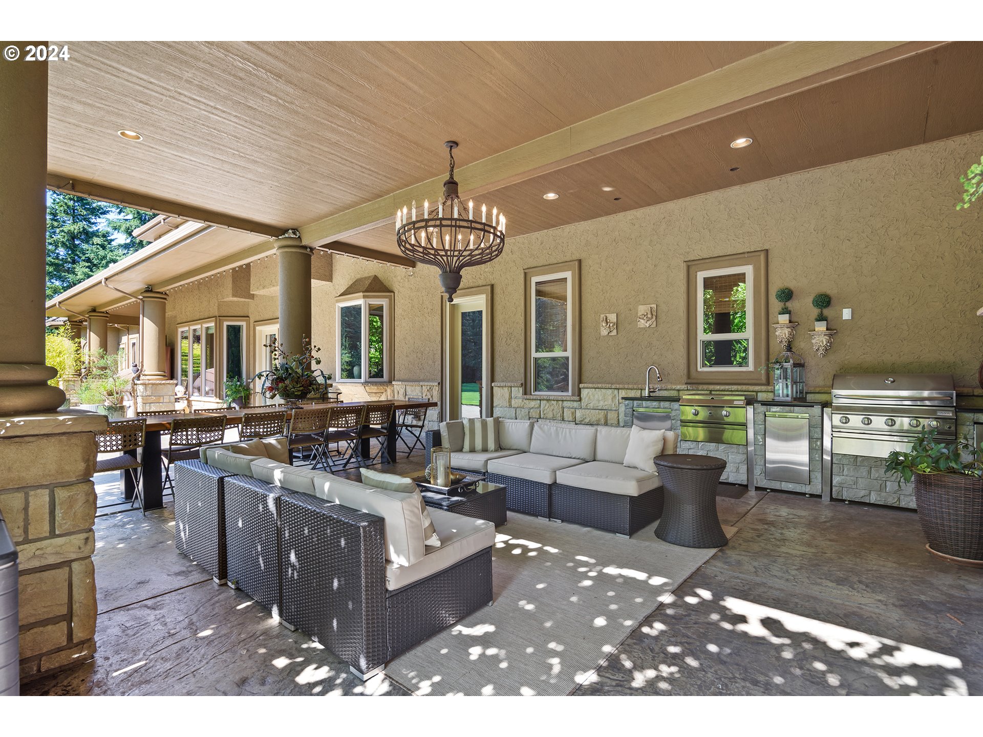 (503) 893-8874Luxury estate epitomizes sophisticated living with its superior craftsmanship, exceptional amenities, and serene natural setting, offering a perfect blend of comfort, elegance, and functionality for discerning homeowners. Situated within the confines of a highly desirable gated community, this estate spans 5 acres of meticulously landscaped grounds, offering unparalleled privacy and tranquility.The interior boasts exquisite Venetian plaster walls and heated travertine floors throughout, adding a touch of elegance and comfort.Wine enthusiasts will appreciate the dedicated wine cellar, perfect for storing and showcasing an extensive collection.Separate living quarters are available, ideal for accommodating guests or extended family members with privacy.The grounds are meticulously landscaped with sprinkler systems and ambient lighting, enhancing the natural beauty of the surroundings while ensuring convenience and visual appeal.