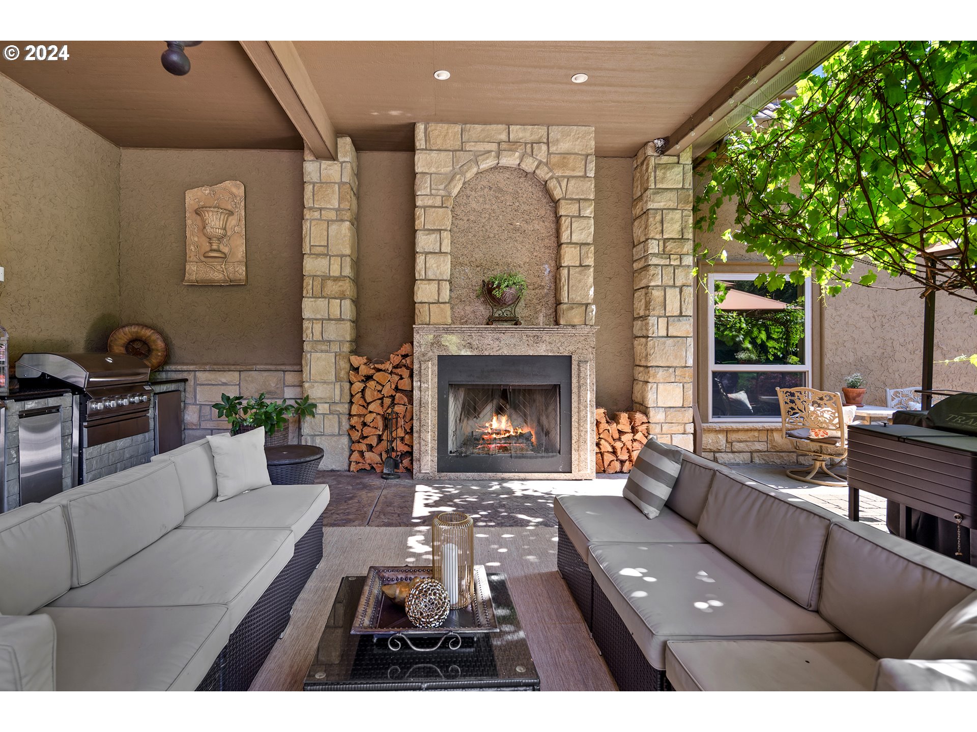 BuiltinBarbecue, CoveredPatio, OutdoorFireplace, PrivateRoad, RVParking, Sprinkler