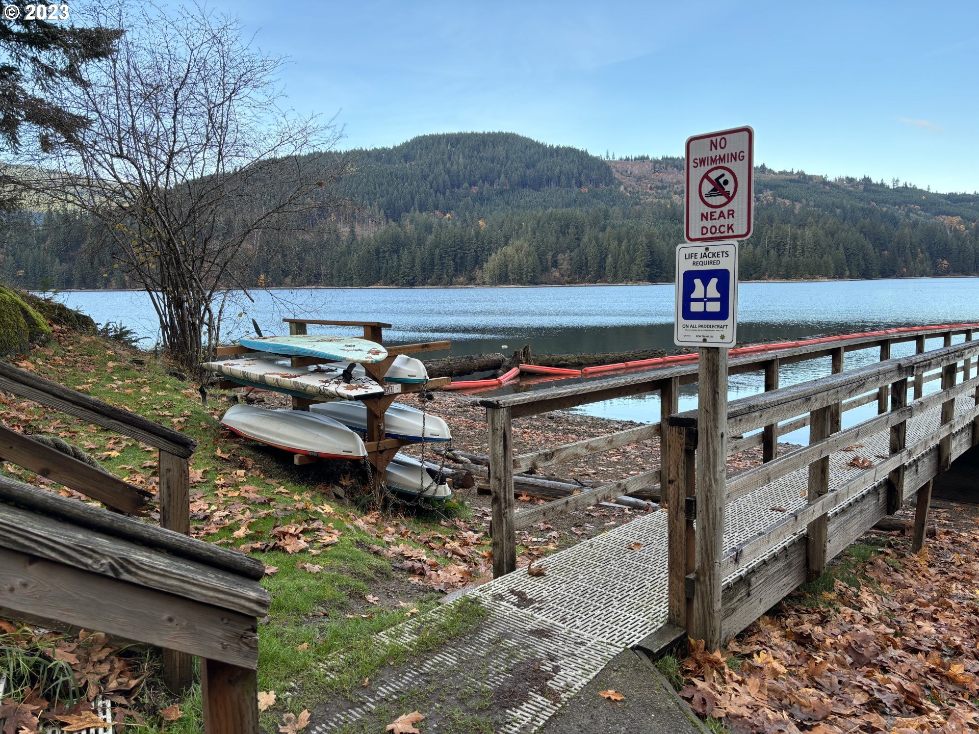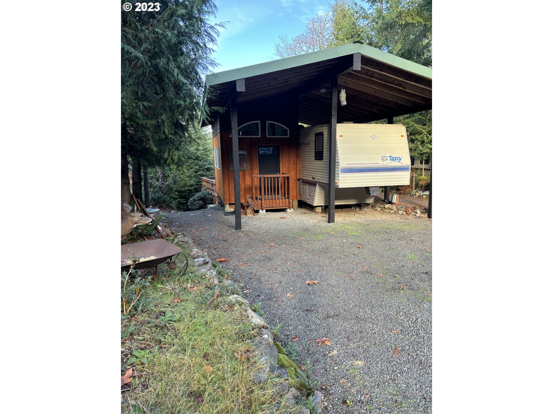 Sparkling clean 30' Terry trailer w/slideout & 15x9 sunroom. Large lot allows for plenty of parking for all your toys & cars. Expansive deck overlooking forested area. Walking distance to summer concerts. Amenities include private access to the marina at Lake Merwin and swim areas. Indoor pool w/hot tub & sauna. Gym, Papa Bear Theatre, Putt Putt Golf, Meditation Point, pickleball/basketball and tennis court. Playground. Multiple bathhouses and laundry on every block. Hiking and fishing. Gated and secure access with security guards on site. Amazing views! This is a lifetime lease property. Cannot be rented or VRBO or permanent residence. Background check required by LMCH.