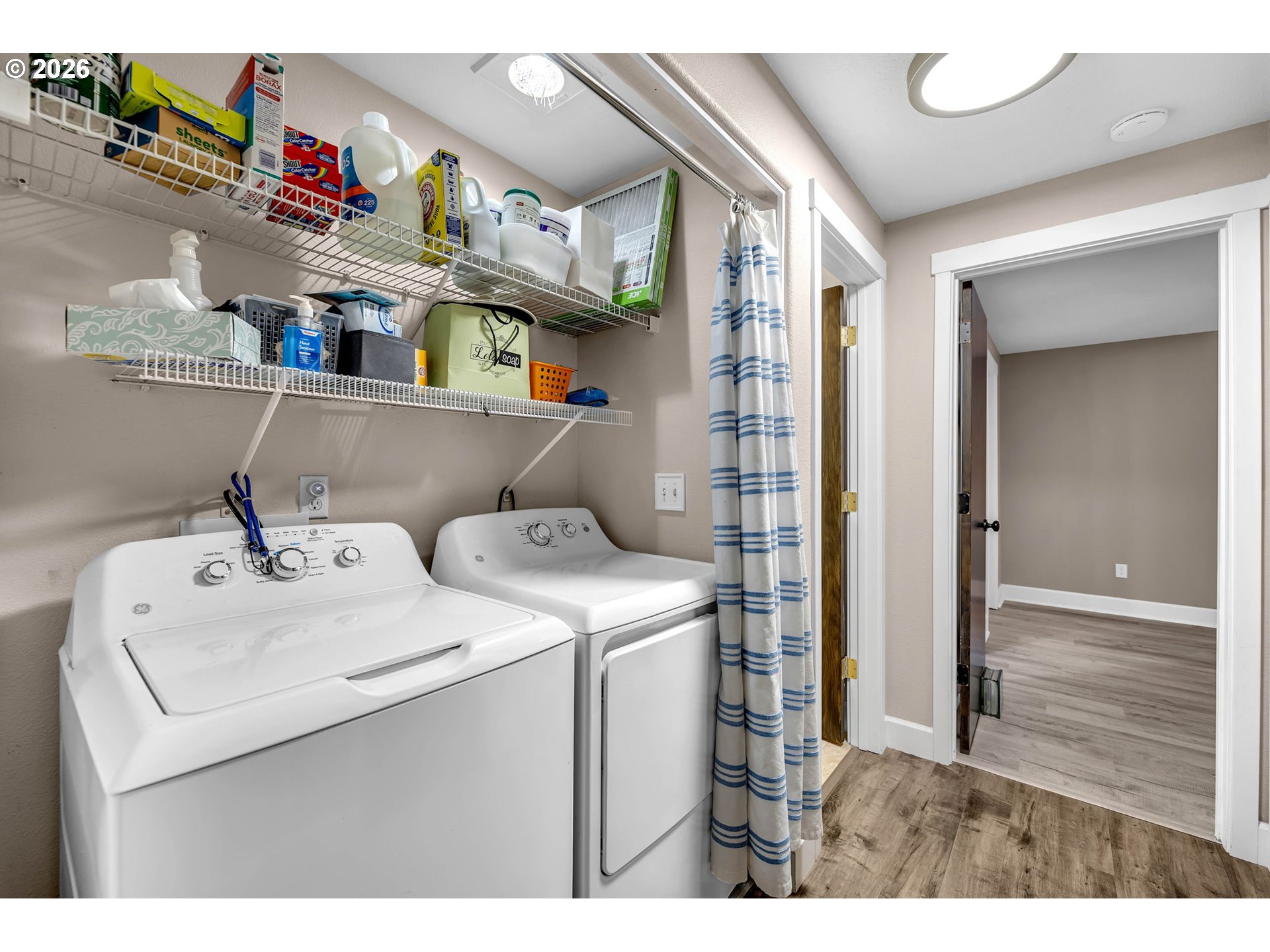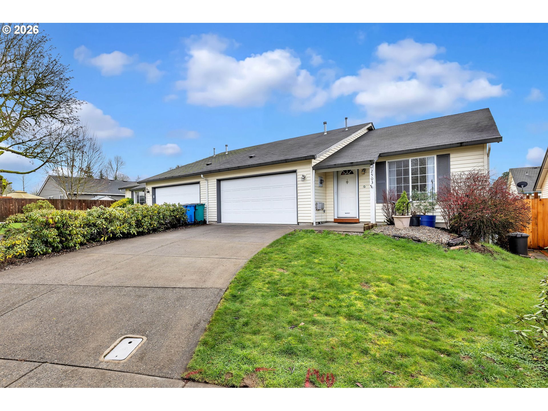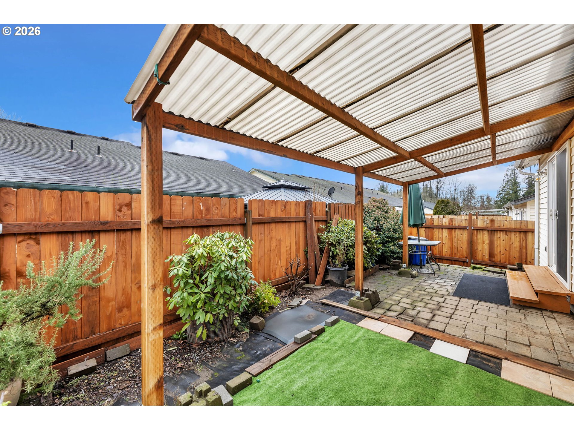 This one-level attached home is tucked into a quiet neighborhood on a private road, offering both privacy and convenient access to town and nearby amenities. Clean, comfortable, and low-maintenance, the home features vaulted ceilings, durable vinyl siding, gas heat, a gas water heater, and no association dues.The well-designed 1,124 sq ft floor plan includes a good-sized family room, a dining area with direct access to the backyard, a spacious kitchen, two bedrooms, two bathrooms, an attached garage, and a covered back patio. The fully fenced yard with gate access to the front yard adds privacy and flexibility for outdoor enjoyment. Peaceful evenings, stars, and moonlit skies can be enjoyed from both the dining room and the primary bedroom, creating a calm and inviting atmosphere.The primary suite offers a walk-in closet, an attached safe, and an updated en suite bathroom featuring a walk-in shower and tile backsplash. The guest bathroom includes a shower/tub combination with tile backsplash.Washer and dryer are included, along with two ladders, a butcher block rolling cart, all garage shelving, patio table and umbrella, landscaping tools, a folding table, potted plants in the front yard, and two shelves in the primary closet, all at no additional value.Located near the Lewis River, Battle Ground Lake, local wine vineyards, and more, this truly move-in-ready home offers comfort, convenience, and privacy in a desirable setting.