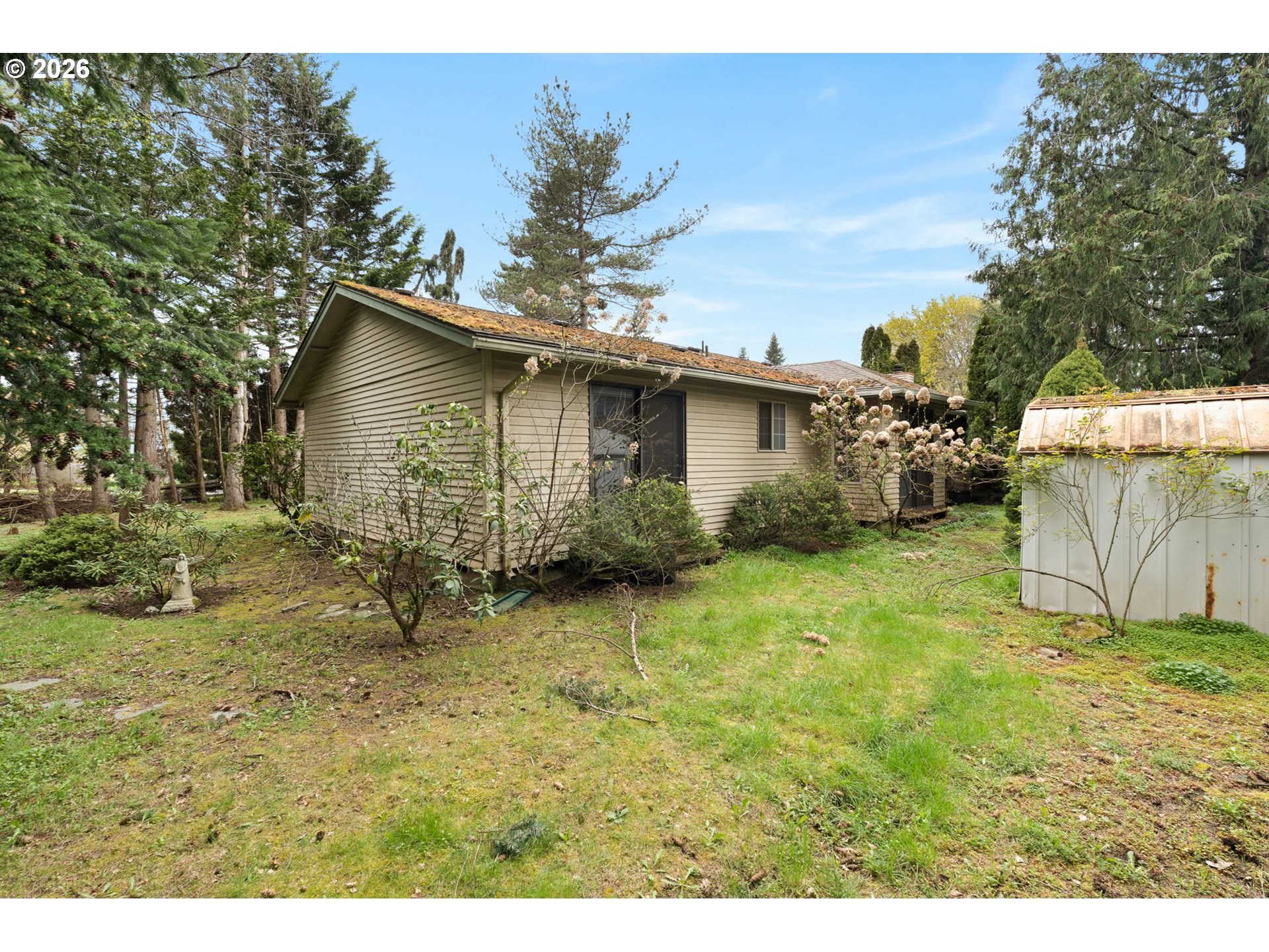3 bedroom, 2 bathroom, one-level fixer on a spacious 0.26 acre corner lot. 1389 sq. ft. with 2-car attached garage. Home has two living areas plus a dining area off of the kitchen, wood burning fireplace, screened-in patio off of the family room, and backyard access in the primary bedroom. Wonderful location 1 mile away from Evergreen High School, Cascade Middle School, Burton Elementary School, and shopping and restaurants on NE 162nd and NE 18th. 0.2 miles away from C-TRAN route 30 bus stop. Cash or renovation loan only. Open house Saturday April 11th from 10:00 am to 12:00 pm.