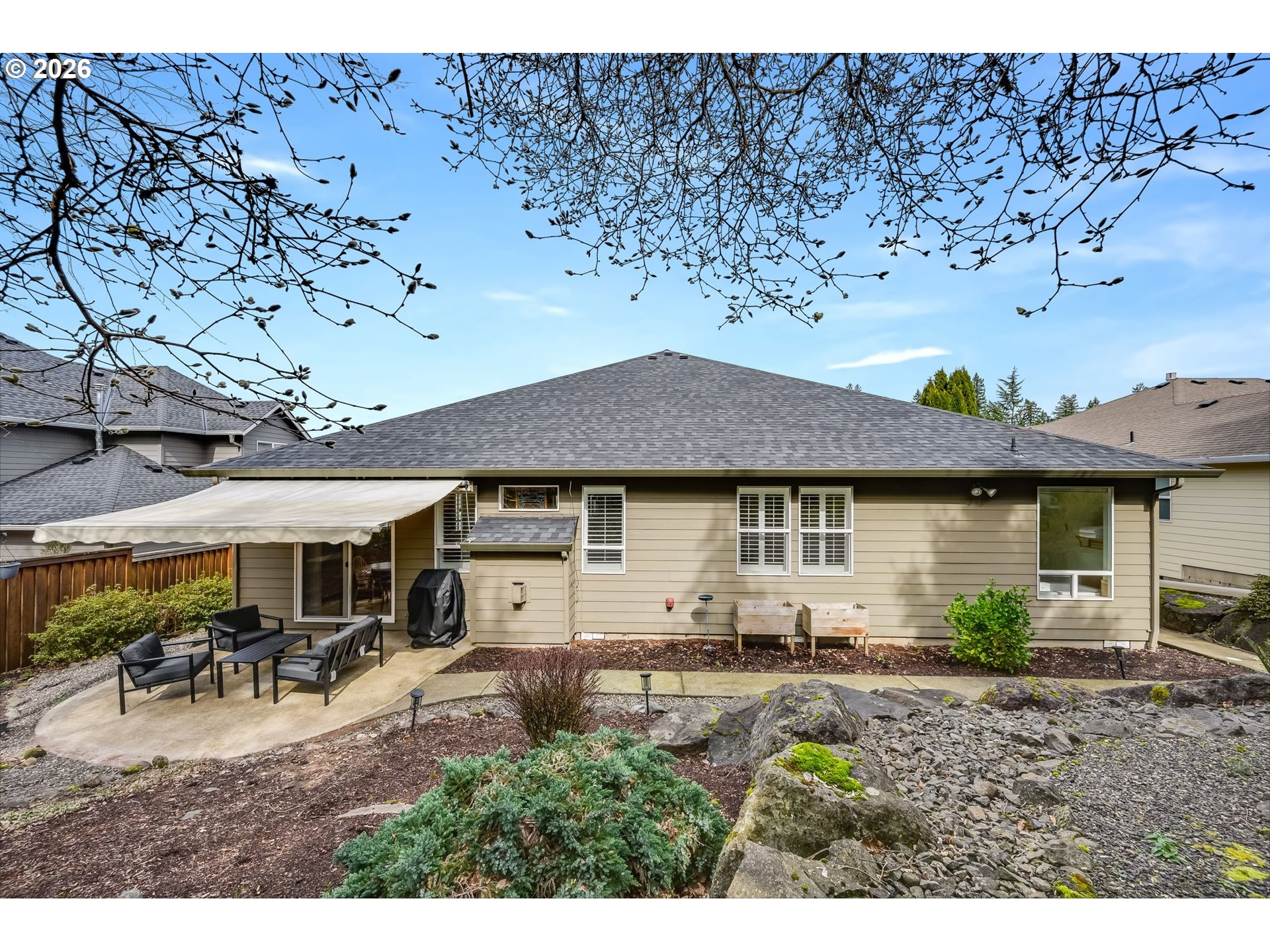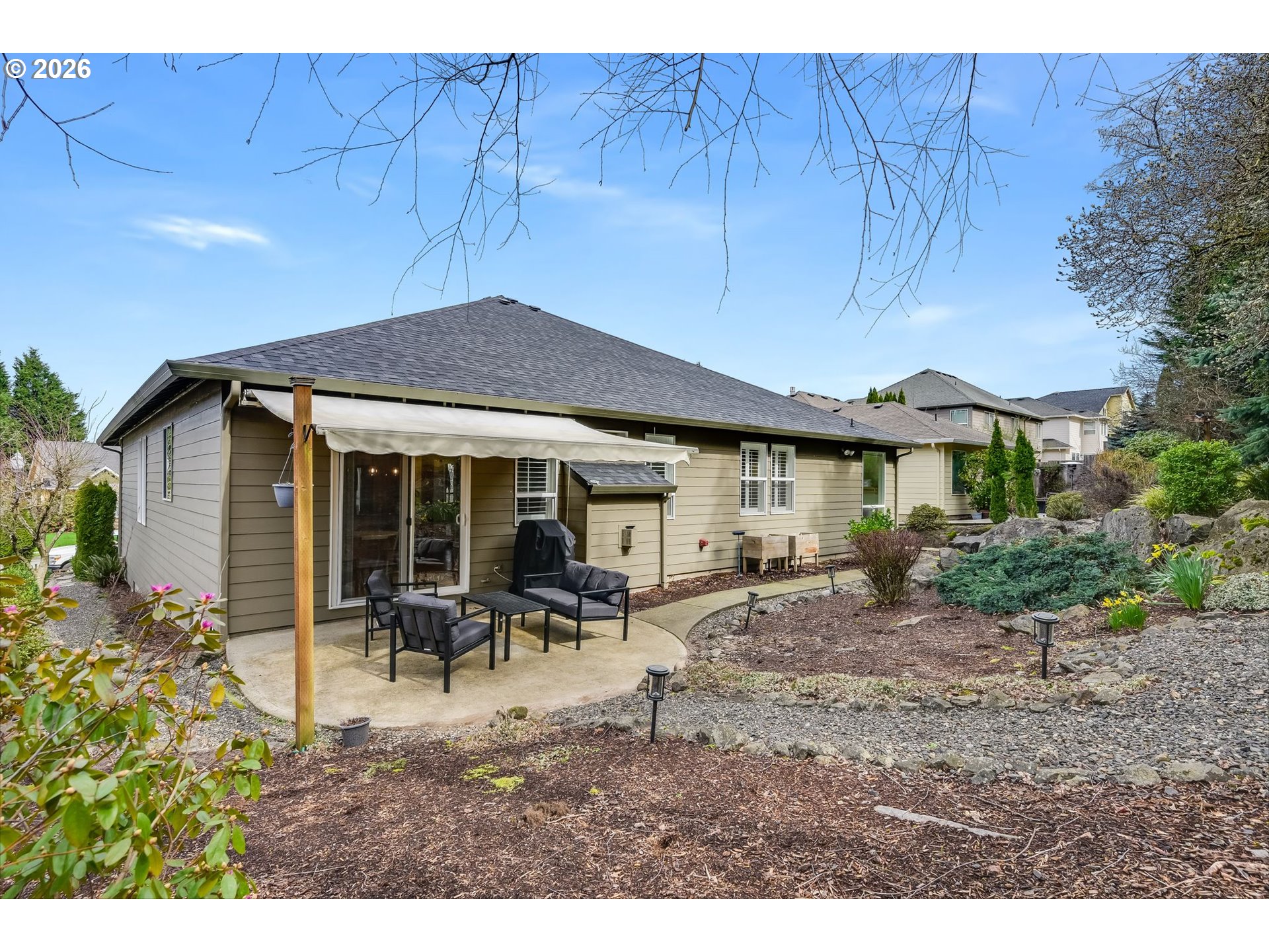 (503) 893-8874Camas one-level in highly desirable Holly Hills – priced to sell and dialed in for easy, move in ready living! This impeccably maintained 4-bedroom, 2.1-bath home offers 2,180 sq ft of thoughtfully designed space with tasteful updates. Gorgeous, newly refinished hardwood floors, plantation shutters, and updated light fixtures throughout create a warm, elevated feel, while a new roof (2025) and fresh exterior paint make this home shine as much outside as it does inside. The kitchen is both beautiful and functional with slab granite counters, stainless steel appliances (refrigerator included), an eating bar, sizable pantry, and ample cabinetry, with an adjoining nook/dining area and slider access to a covered patio for effortless indoor/outdoor living. Formal living and dining spaces add flexibility, while the family room with cozy gas fireplace creates a natural gathering spot. The vaulted owner’s suite features French doors, hardwood flooring, a large walk-in closet with organizer, and an ensuite with double sinks, jetted soaking tub, and walk-in shower. Two bedrooms share a Jack & Jill bath, and a fourth bedroom off the entry (with French doors) makes an ideal home office, playroom, or flex space. Transom windows also let in extra light. A large laundry room with sink, built-in storage, and folding counter keeps life organized – washer and dryer included! An oversized driveway and 3-car garage with built-in storage and shelving that stays offers plenty of room for parking, storage, and gear. Outside, enjoy a beautifully landscaped yard with mature trees, a sprinkler system, and a retractable awning designed for year-round enjoyment. All of this in a prime location with access to highly rated Camas schools, nearby Prune Hill walking trails, and just minutes to downtown Camas and 192nd/SR-14. Open House Saturday, March 21, 11–1pm.